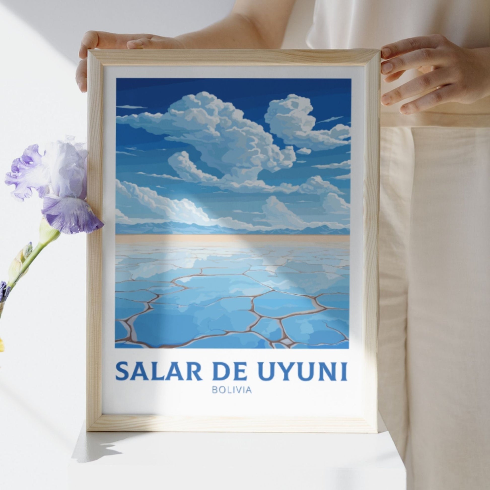 Cette œuvre mêle des blancs éclatants et des bleus chatoyants à l'essence éthérée du Salar d'Uyuni, évoquant le charme d'un voyage vintage avec une touche de modernité. Imprimée sur un papier de qualité supérieure, elle offre un éclat durable et une finition lisse, ce qui en fait un cadeau idéal pour les aventuriers ou les collectionneurs d'art. Cette affiche d'Uyuni apporte une touche de mystère bolivien à tous vos murs.