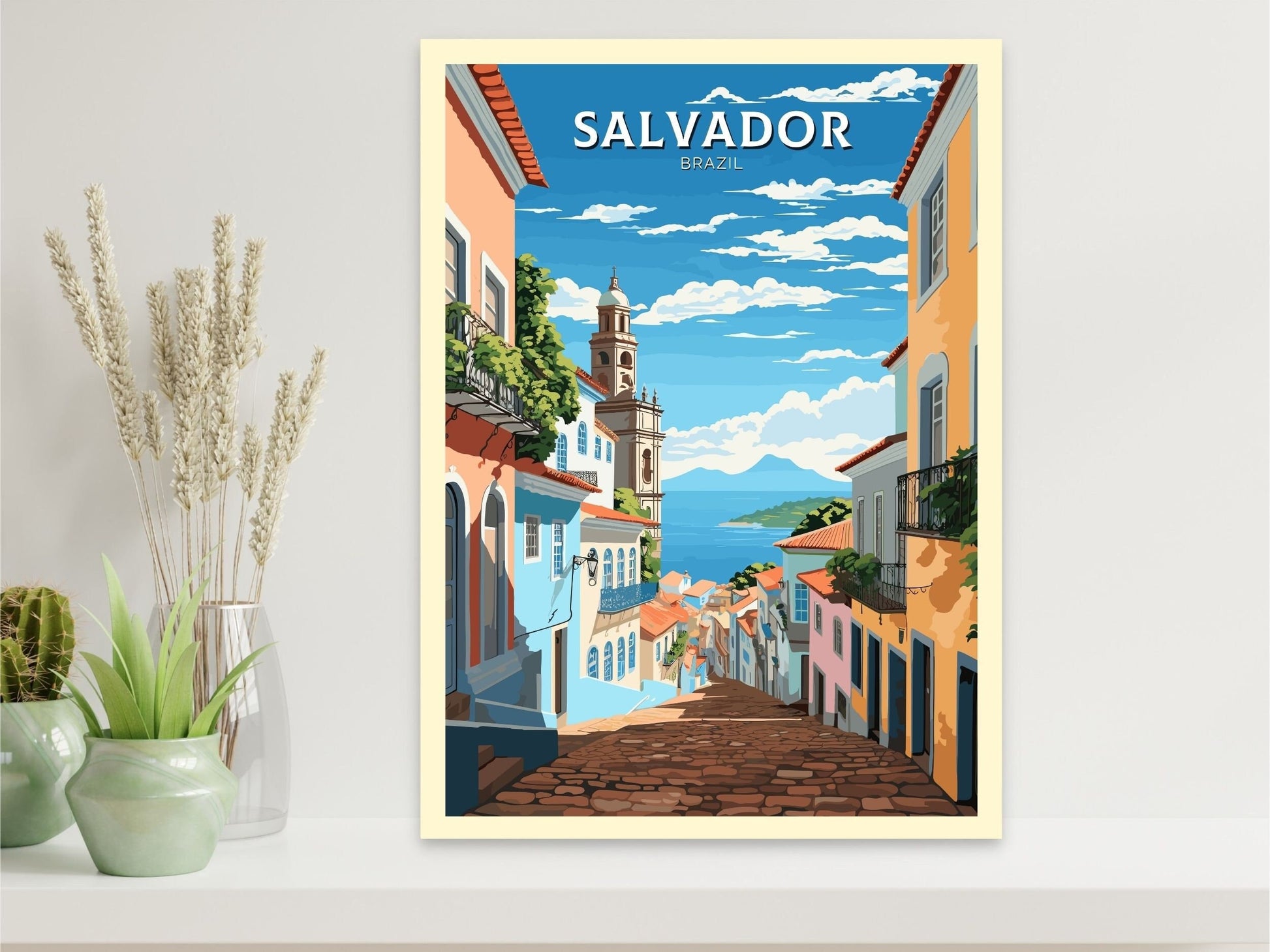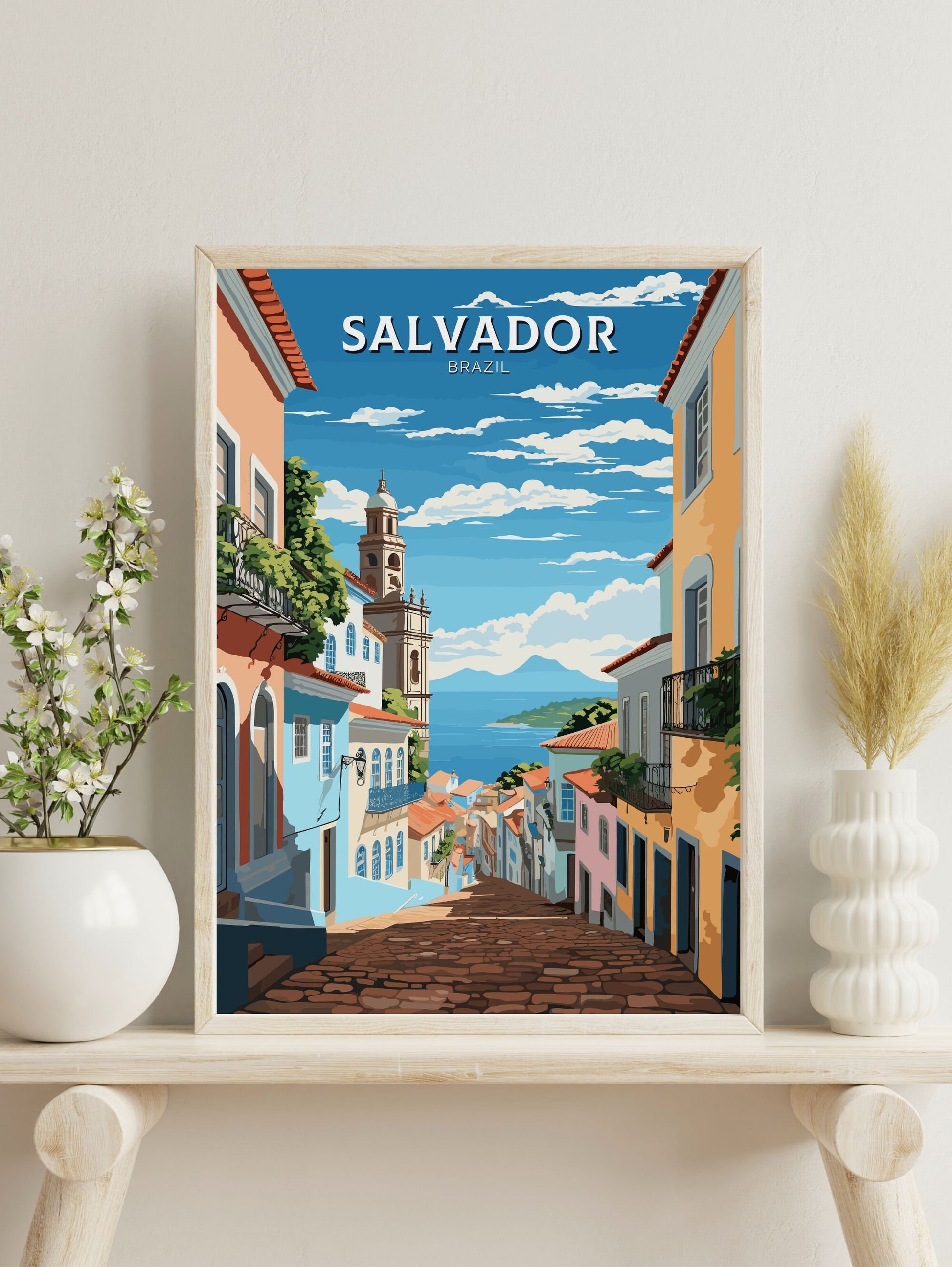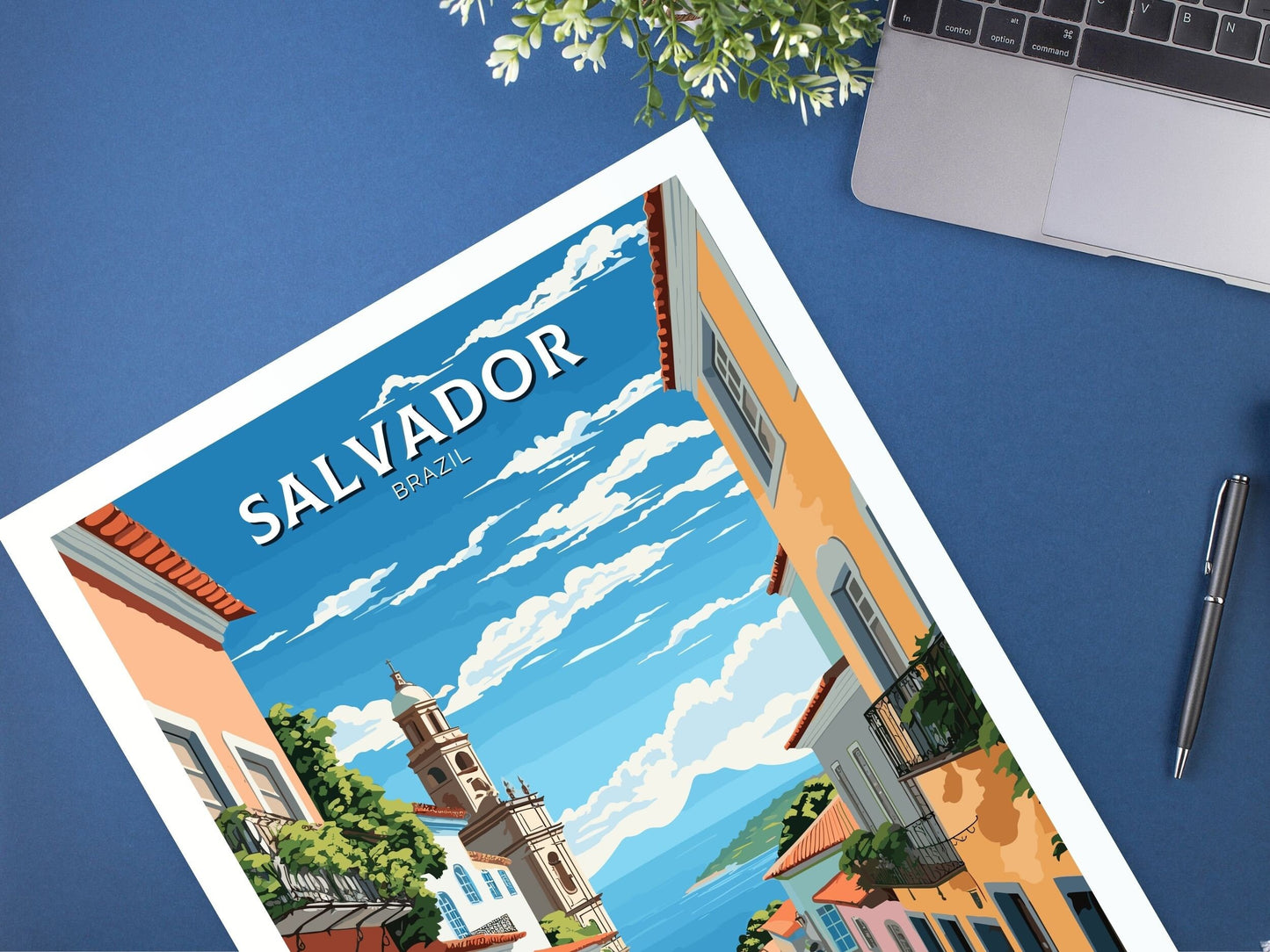 Notre affiche de voyage Salvador – Art rétro brésilien plonge votre intérieur dans le charme vibrant de Salvador, au Brésil, grâce à son design nostalgique. Parfaite pour les passionnés de voyages et d'art rétro, elle capture les rues colorées du Pelourinho et l'ambiance côtière avec un style intemporel. Que vous ayez dansé sur ses rythmes ou rêvé de son énergie, cette affiche rétro Salvador sera un ajout magnifique à votre décoration.