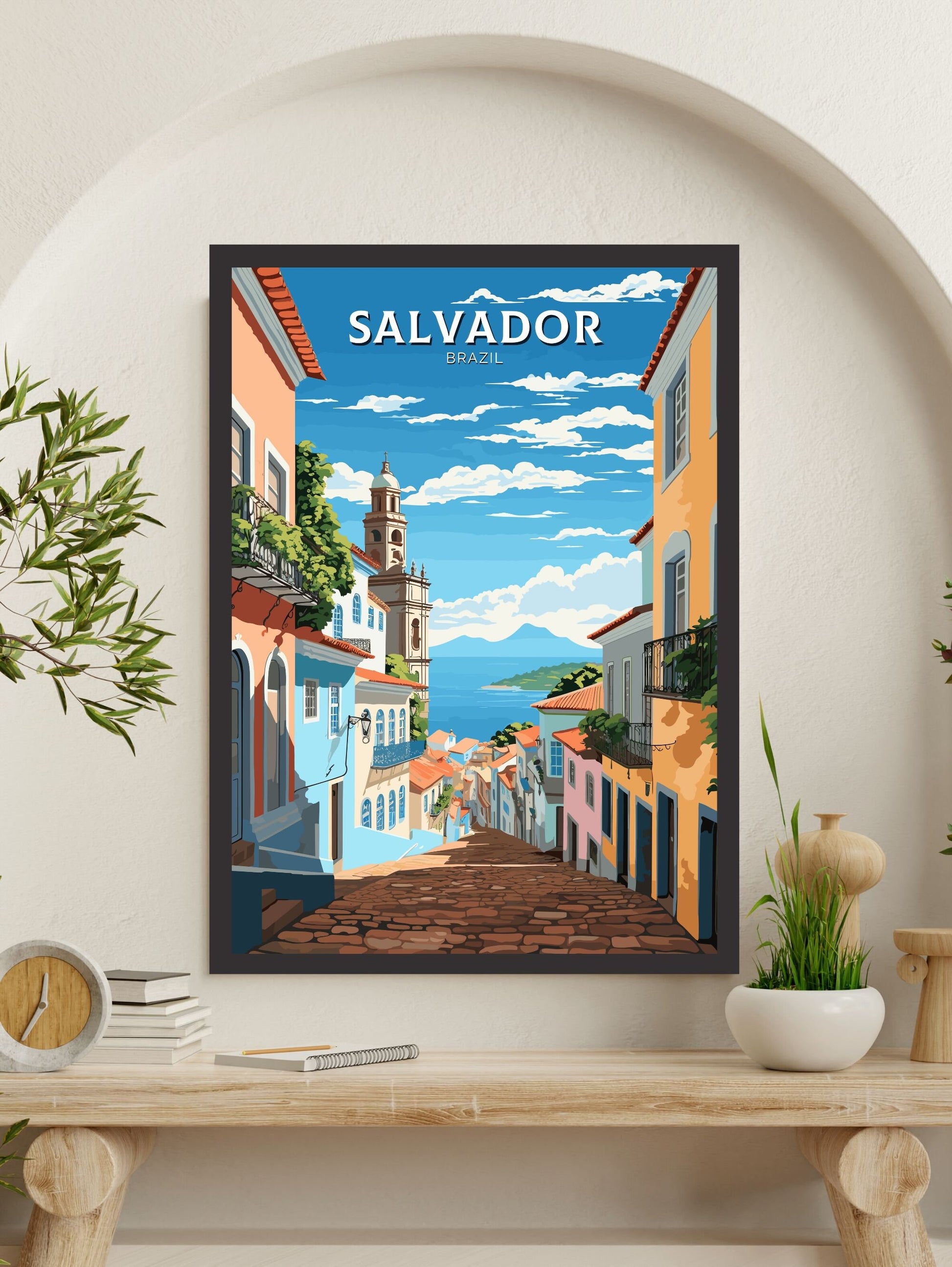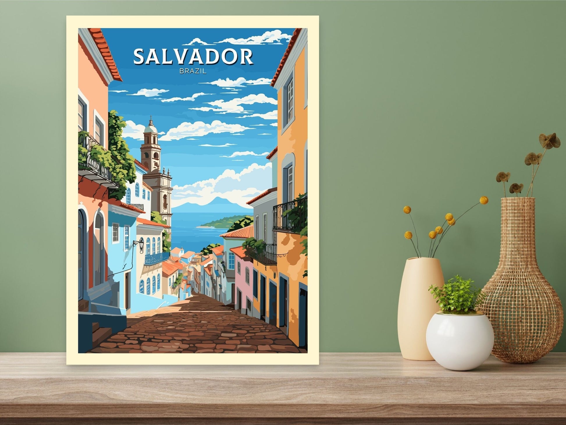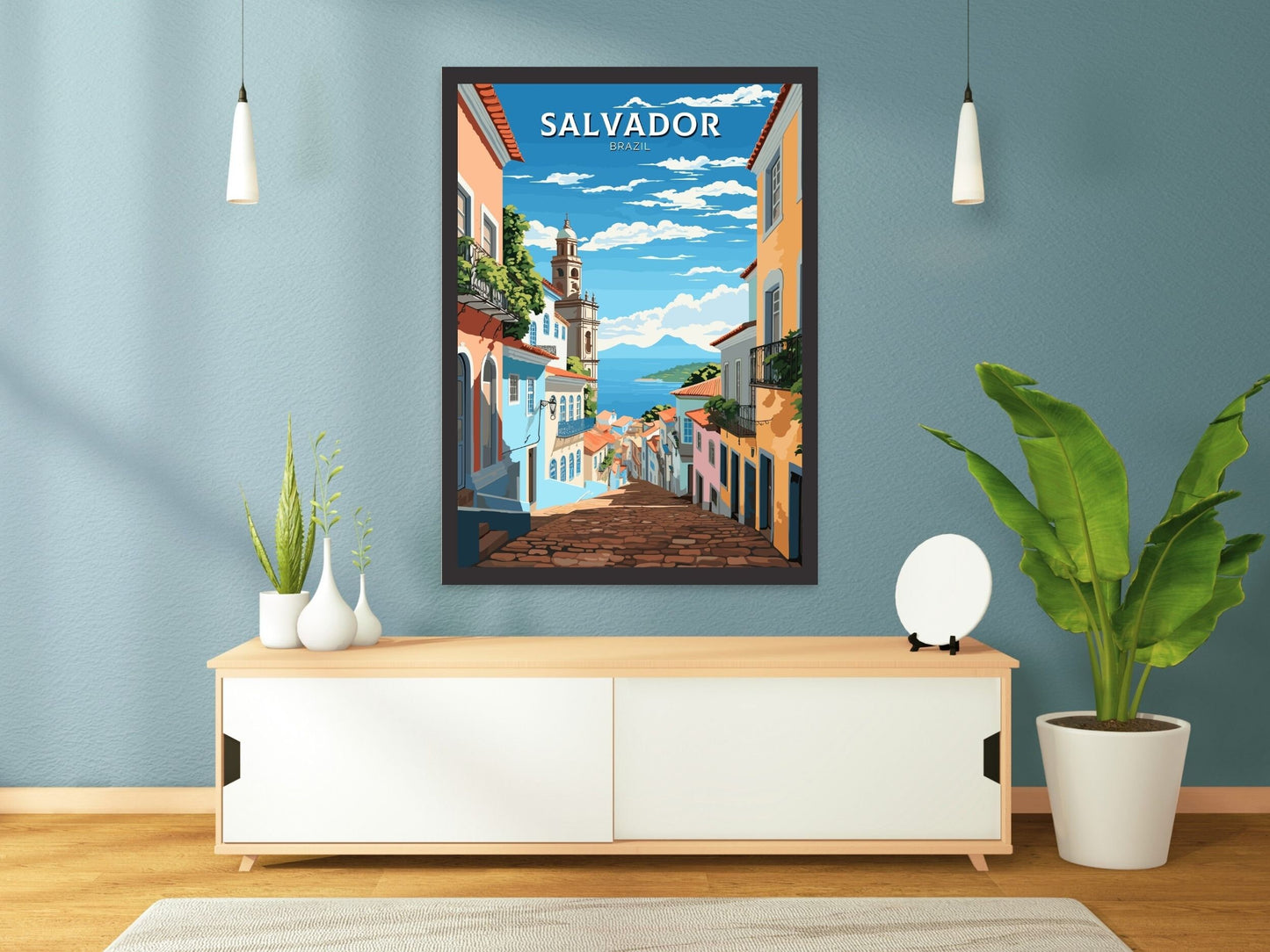 Notre affiche de voyage Salvador – Art rétro brésilien plonge votre intérieur dans le charme vibrant de Salvador, au Brésil, grâce à son design nostalgique. Parfaite pour les passionnés de voyages et d'art rétro, elle capture les rues colorées du Pelourinho et l'ambiance côtière avec un style intemporel. Que vous ayez dansé sur ses rythmes ou rêvé de son énergie, cette affiche rétro Salvador sera un ajout magnifique à votre décoration.