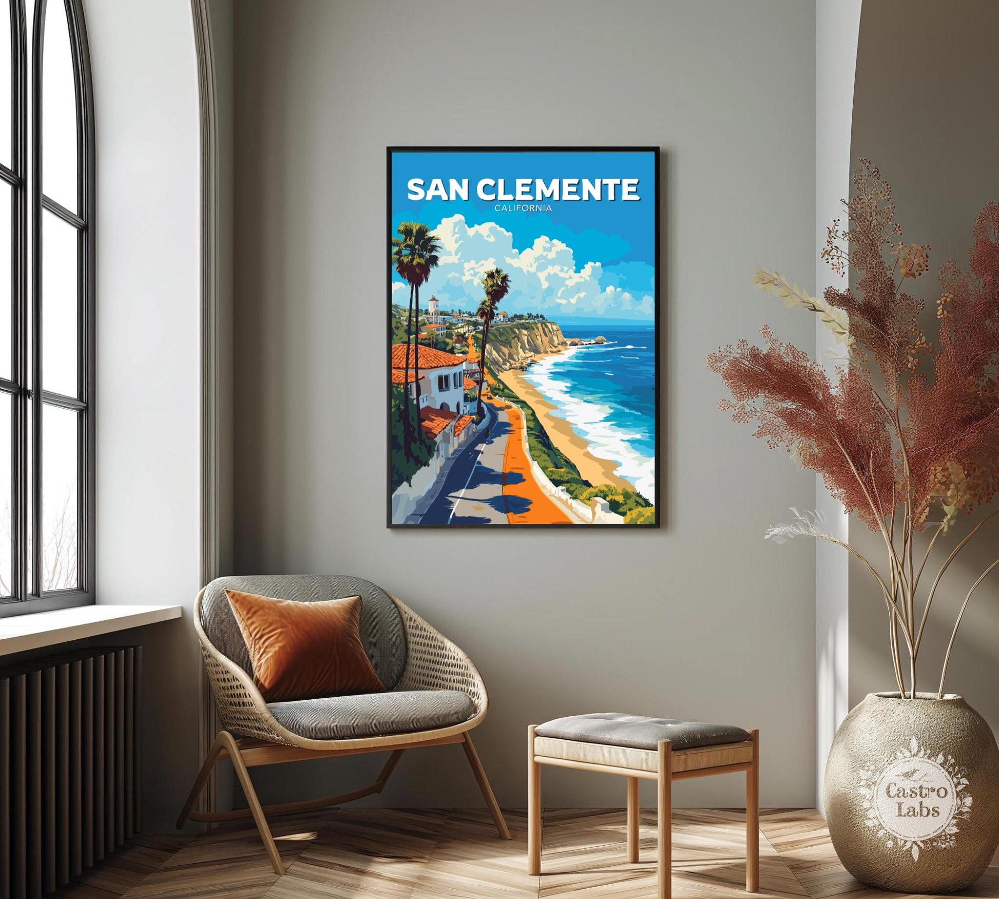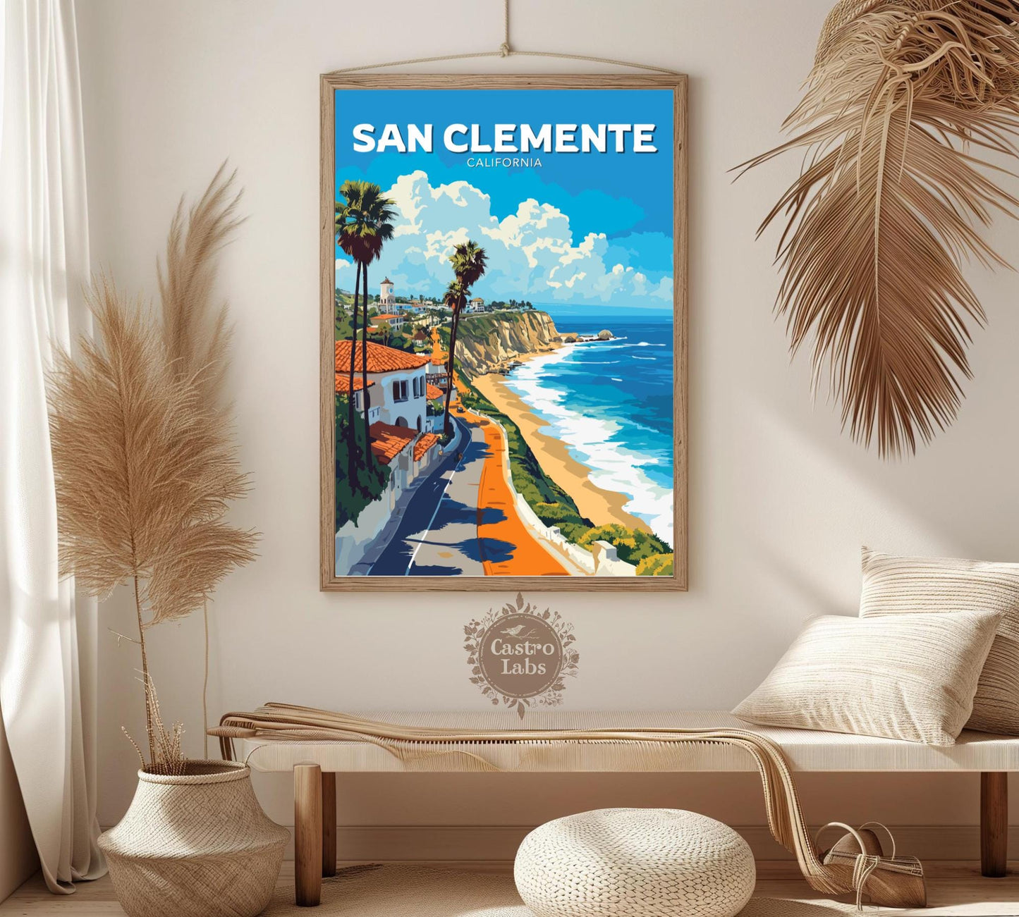 Cette œuvre allie des tons chauds au charme intemporel de San Clemente, capturant ainsi son essence de joyau du sud de la Californie. Imprimée sur un papier de qualité supérieure, elle garantit un éclat durable et une finition élégante, ce qui en fait un cadeau idéal pour les surfeurs ou les passionnés de la côte Ouest. Cette affiche de San Clemente apporte une touche de soleil à n'importe quelle pièce.