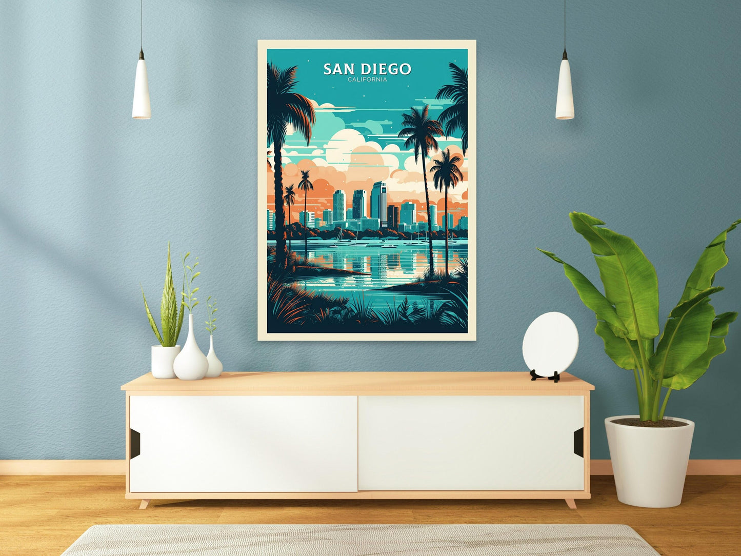 Célébrez le charme ensoleillé de la Californie avec notre affiche de voyage de San Diego . Cette œuvre d'art californienne capture les plages emblématiques, la skyline et l'atmosphère côtière de San Diego, idéale pour les passionnés de voyages, les collectionneurs d'art et les amoureux de paysages urbains vibrants.