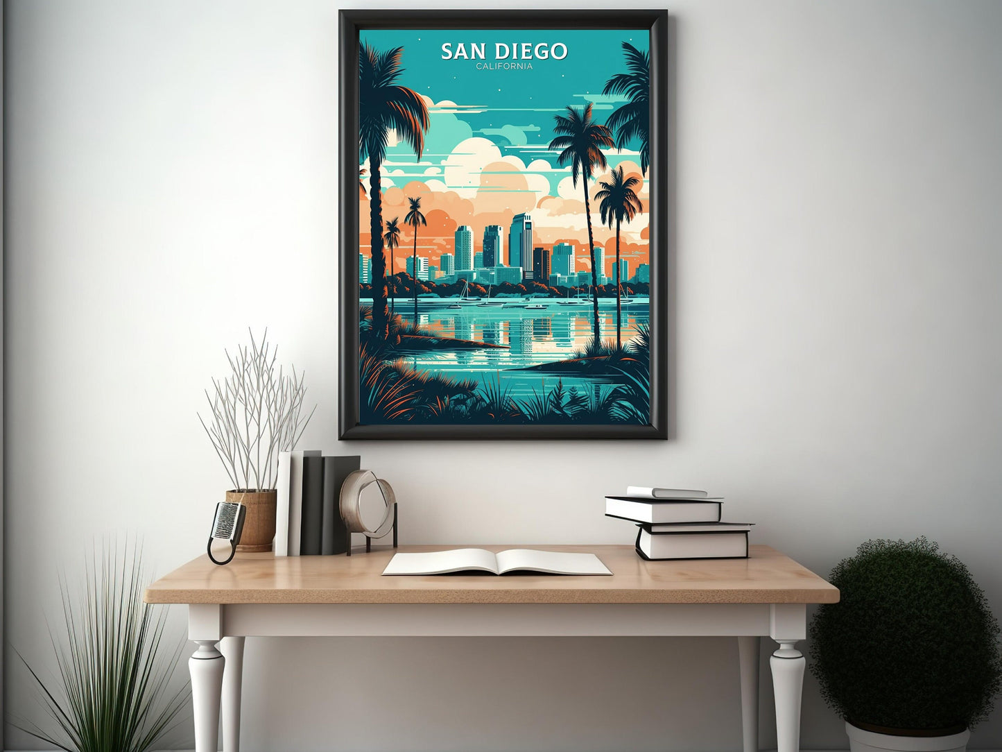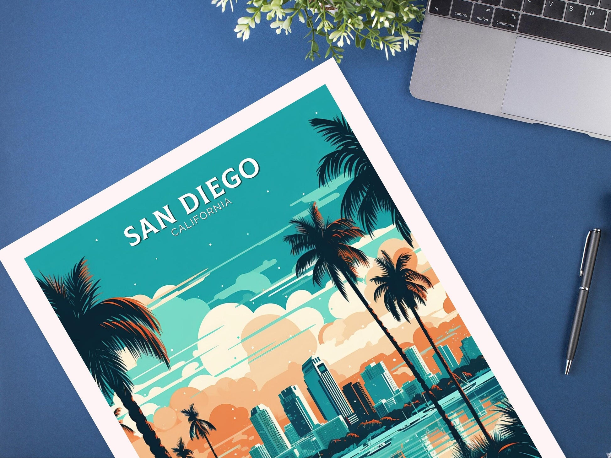 Disponible en téléchargement numérique et en tirage physique premium , cette affiche de voyage de San Diego est disponible en plusieurs formats, des formats de série A aux grands formats 76 x 102 cm. Ses couleurs vives et son design détaillé en font un ajout remarquable à votre maison, bureau ou mur de galerie, et un cadeau attentionné pour les amoureux de la Californie et des aventures côtières.