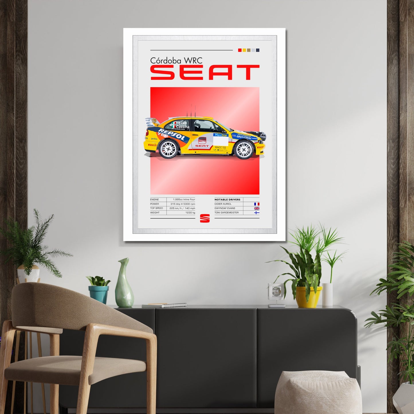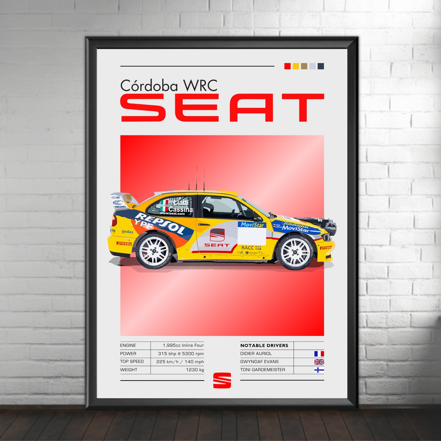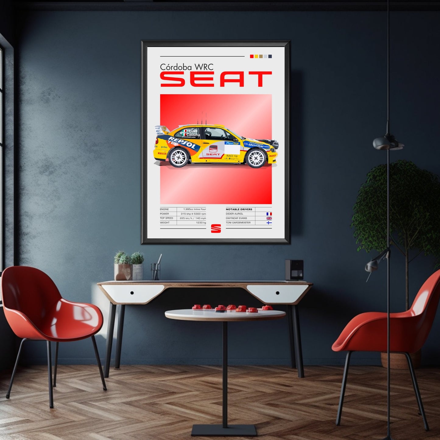 Affiche SEAT Córdoba WRC – Art automobile du Championnat du monde des rallyes de la fin des années 90