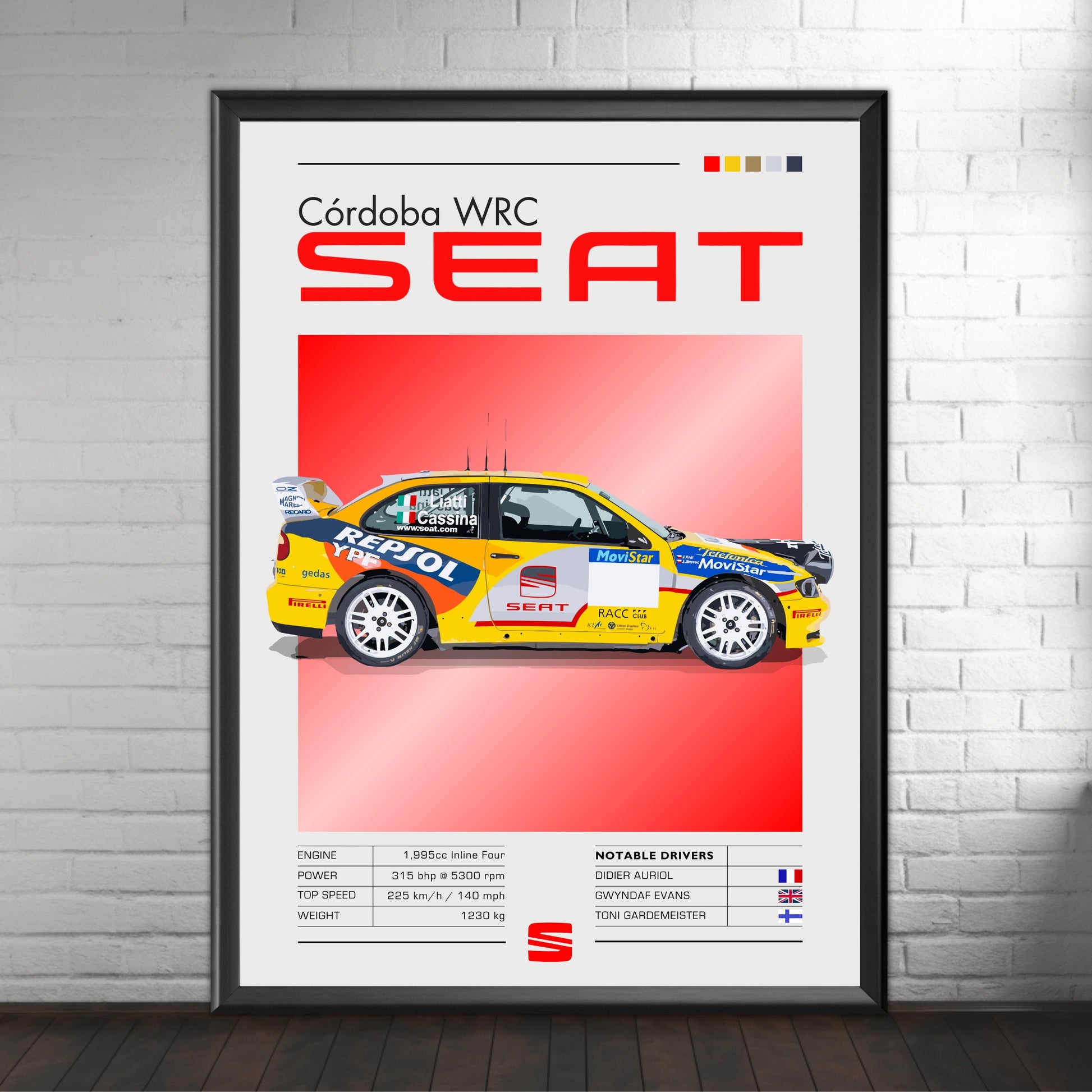 Célébrez l'âge d'or des rallyes de la fin des années 1990 avec cette affiche SEAT Córdoba WRC , mettant en vedette l'une des voitures les plus emblématiques du Championnat du monde des rallyes de son époque. Idéale pour les passionnés de sport automobile, les collectionneurs et les fans de rallye, cette décoration murale met en lumière la légendaire SEAT Córdoba WRC , réputée pour ses performances turbocompressées, sa tenue de route à quatre roues motrices et son palmarès compétitif en rallye. Retrouvez l'excitation et la précision des courses WRC des années 90 chez vous, dans votre garage, votre bureau ou votre caverne d'Ali Baba grâce à cette affiche automobile dynamique.