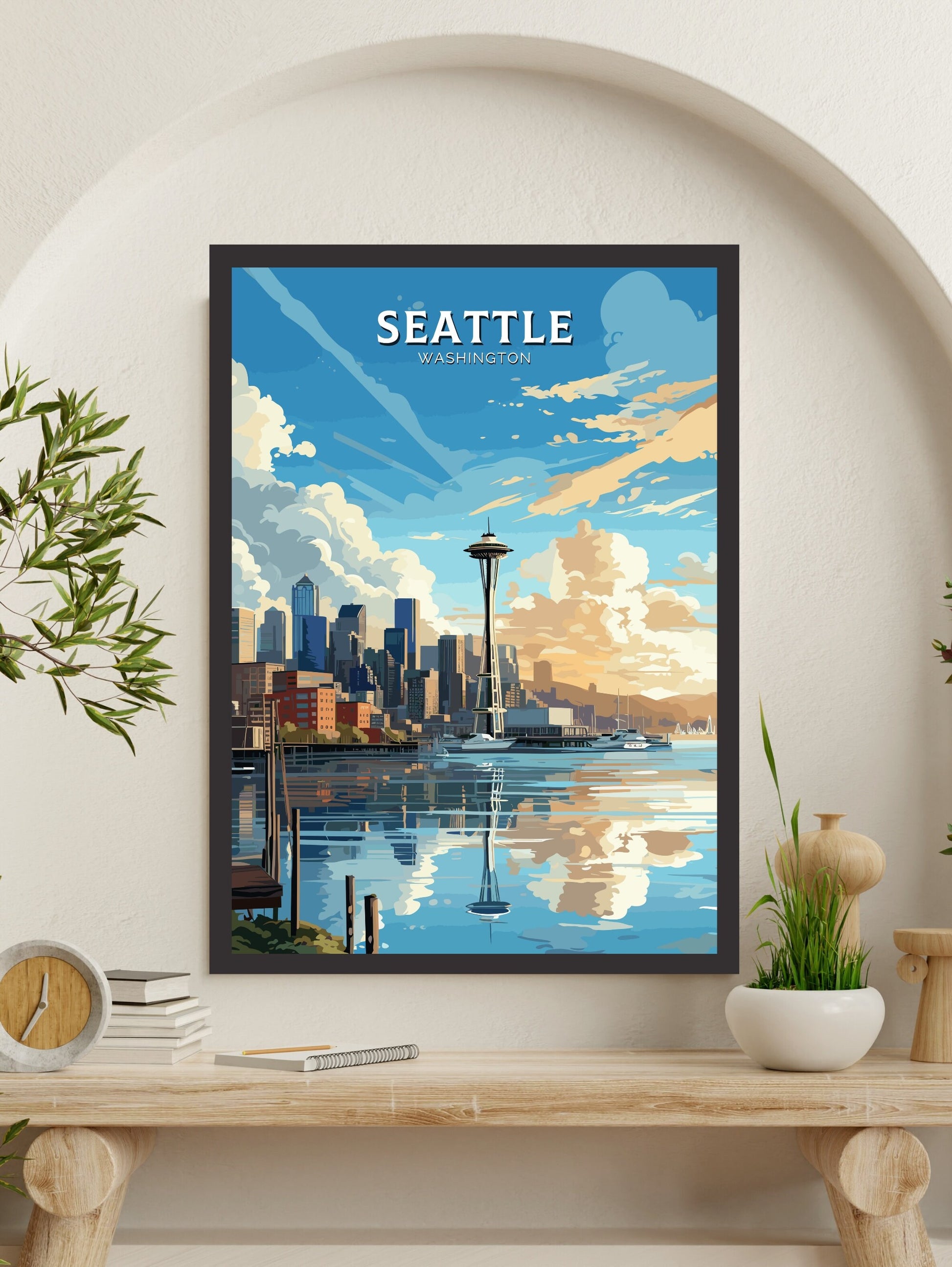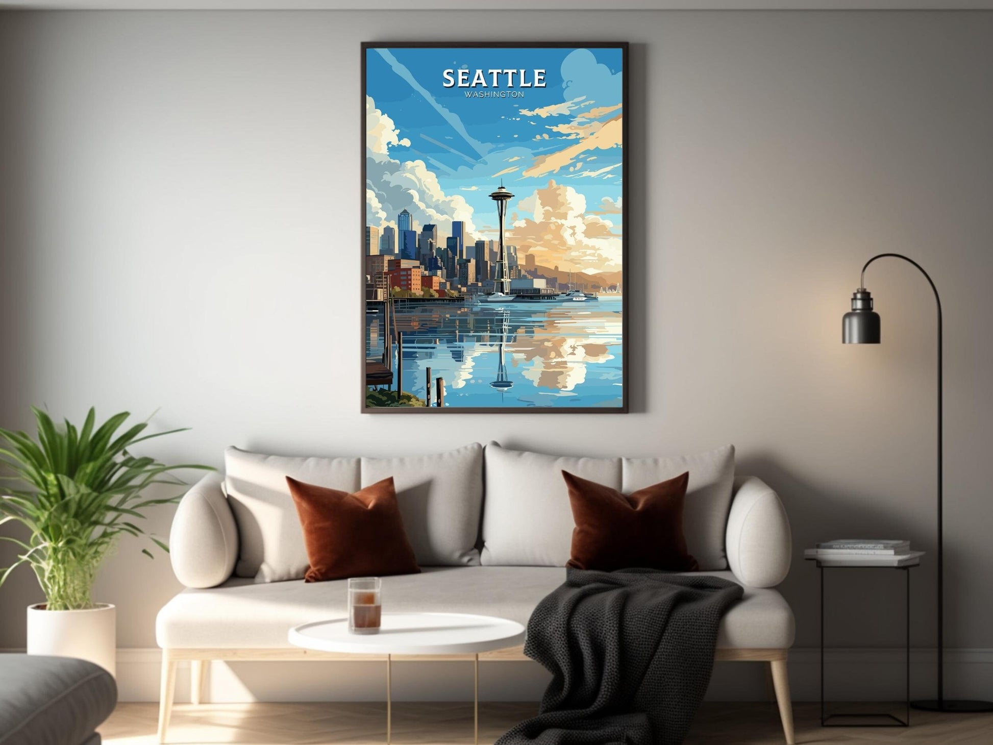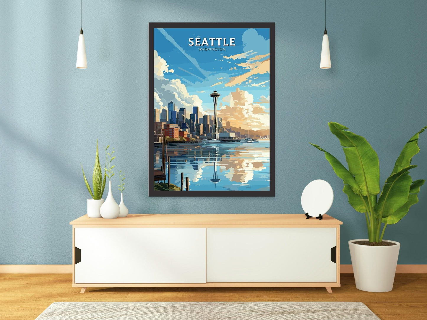 Disponible en téléchargement numérique ou en impression physique de haute qualité , cette affiche de voyage Seattle Skyline est disponible dans une variété de tailles, des formats standard de la série A à 30x40 pouces, parfaite pour n'importe quel mur ou espace de bureau.