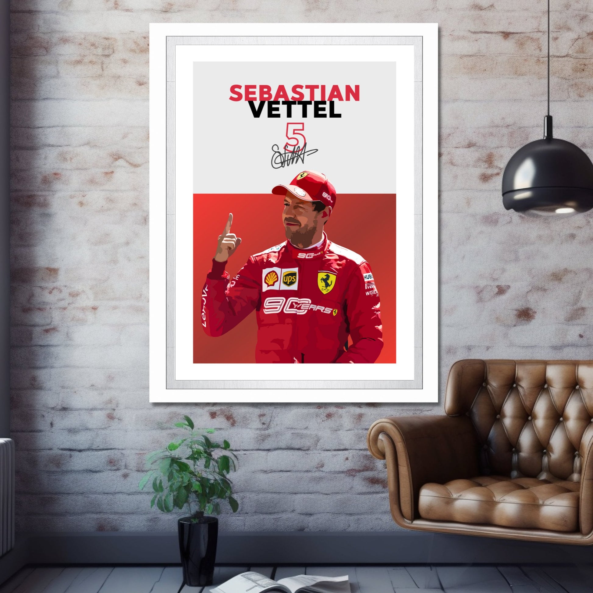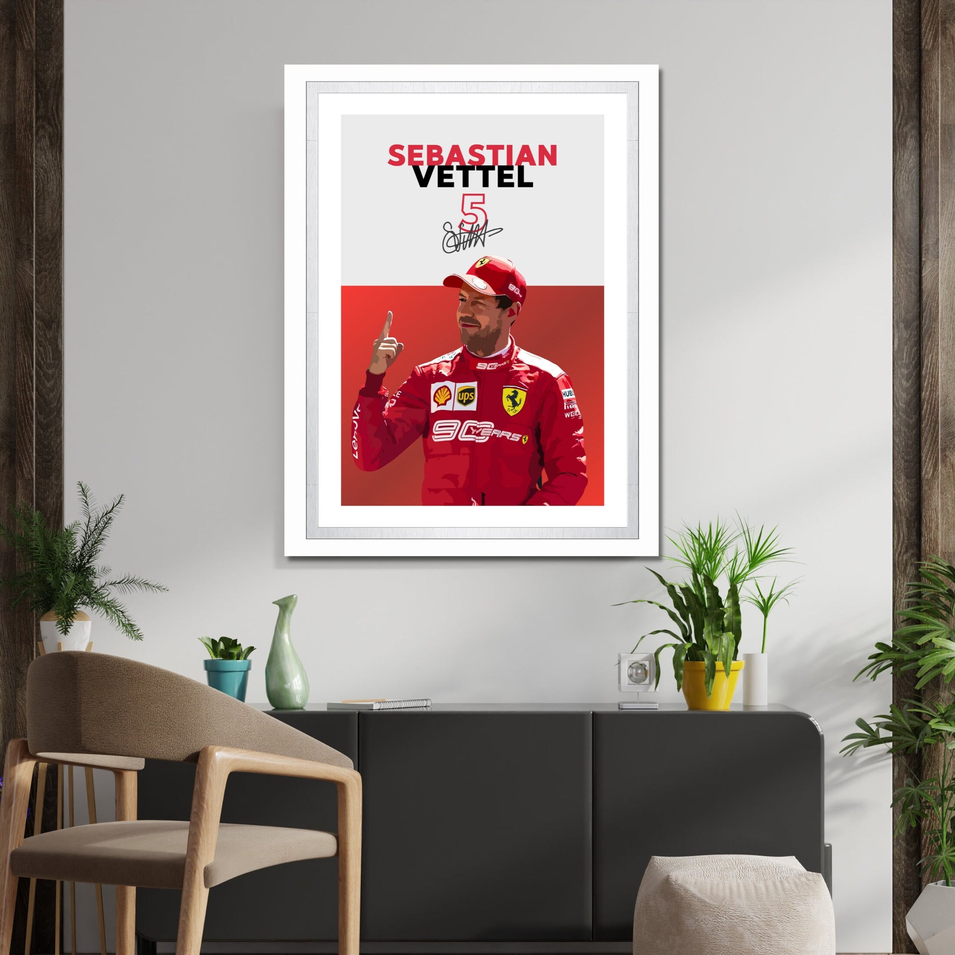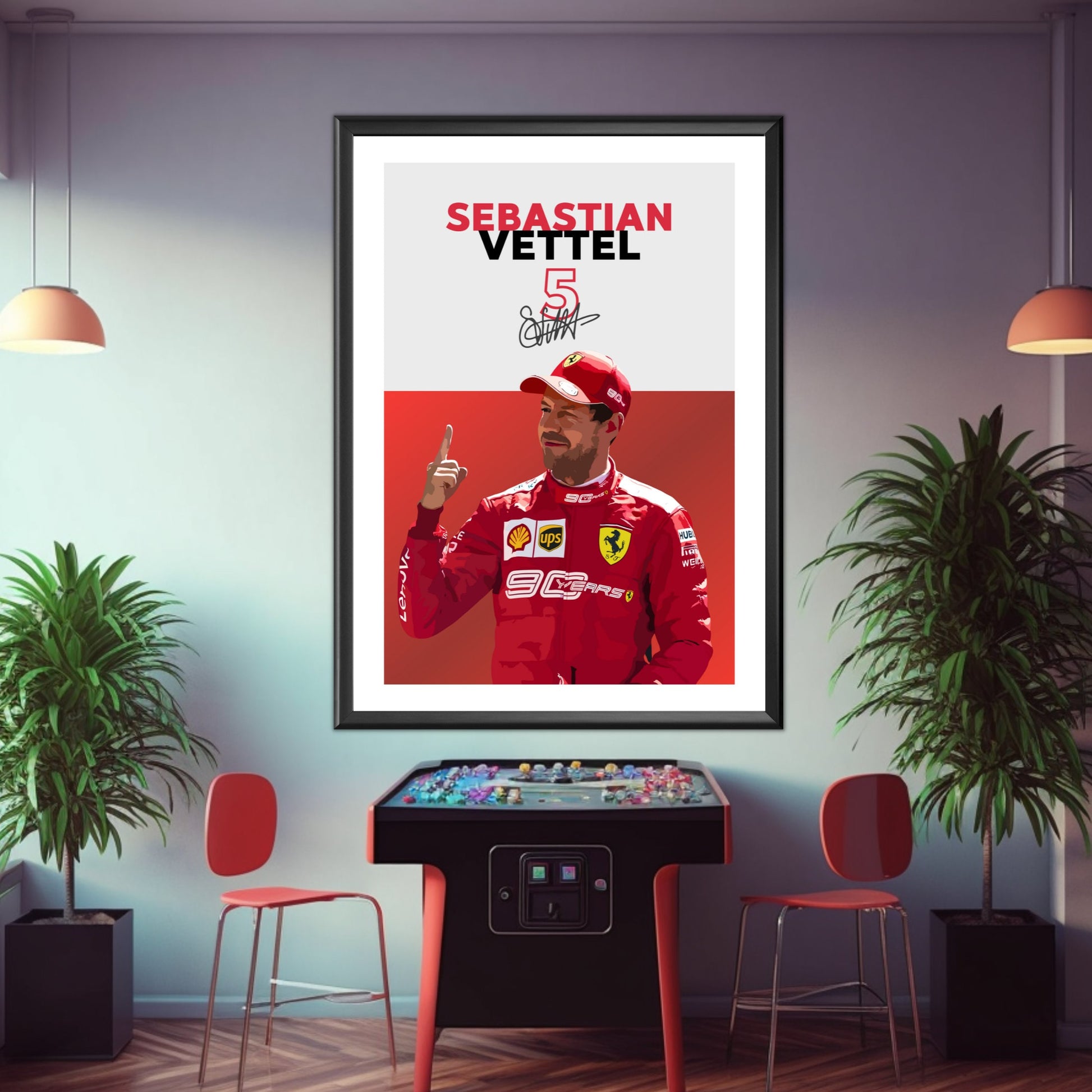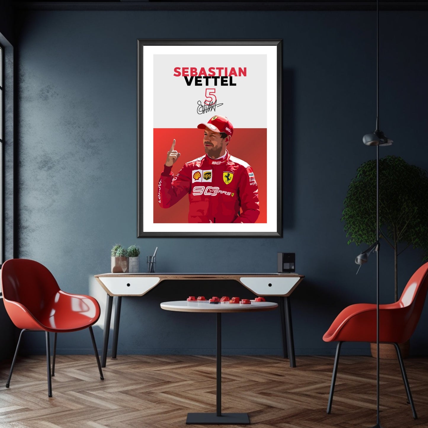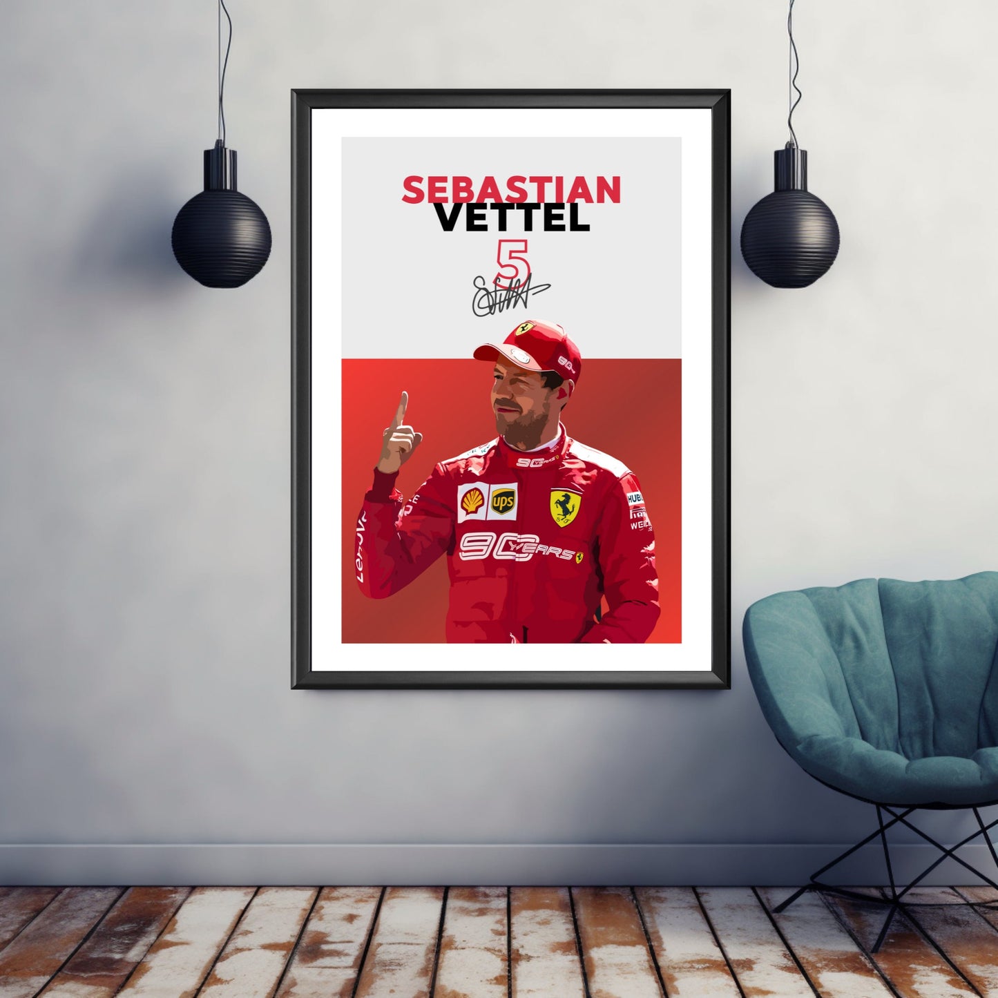 Affiche Ferrari F1 de Sebastian Vettel – Art mural légendaire de la Scuderia