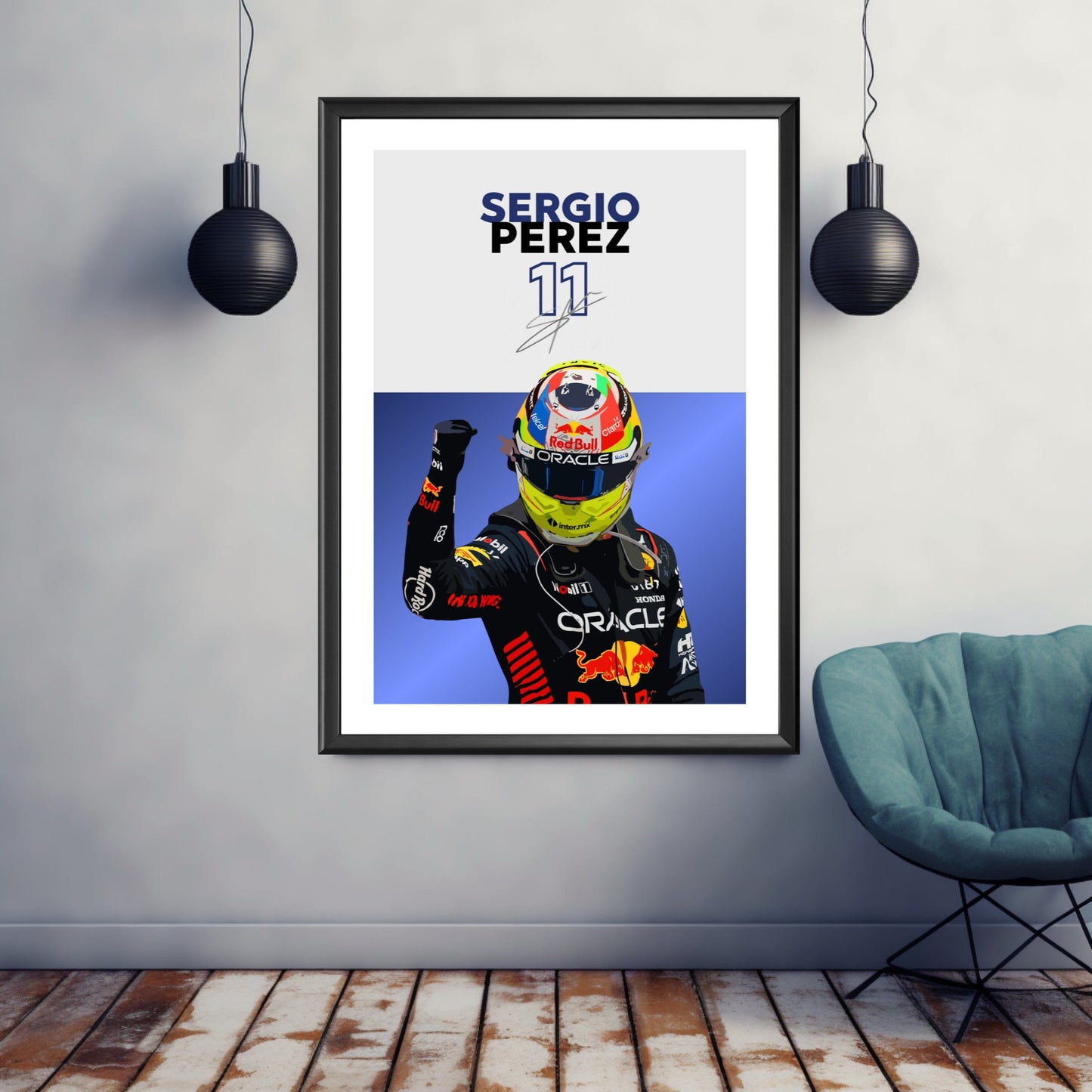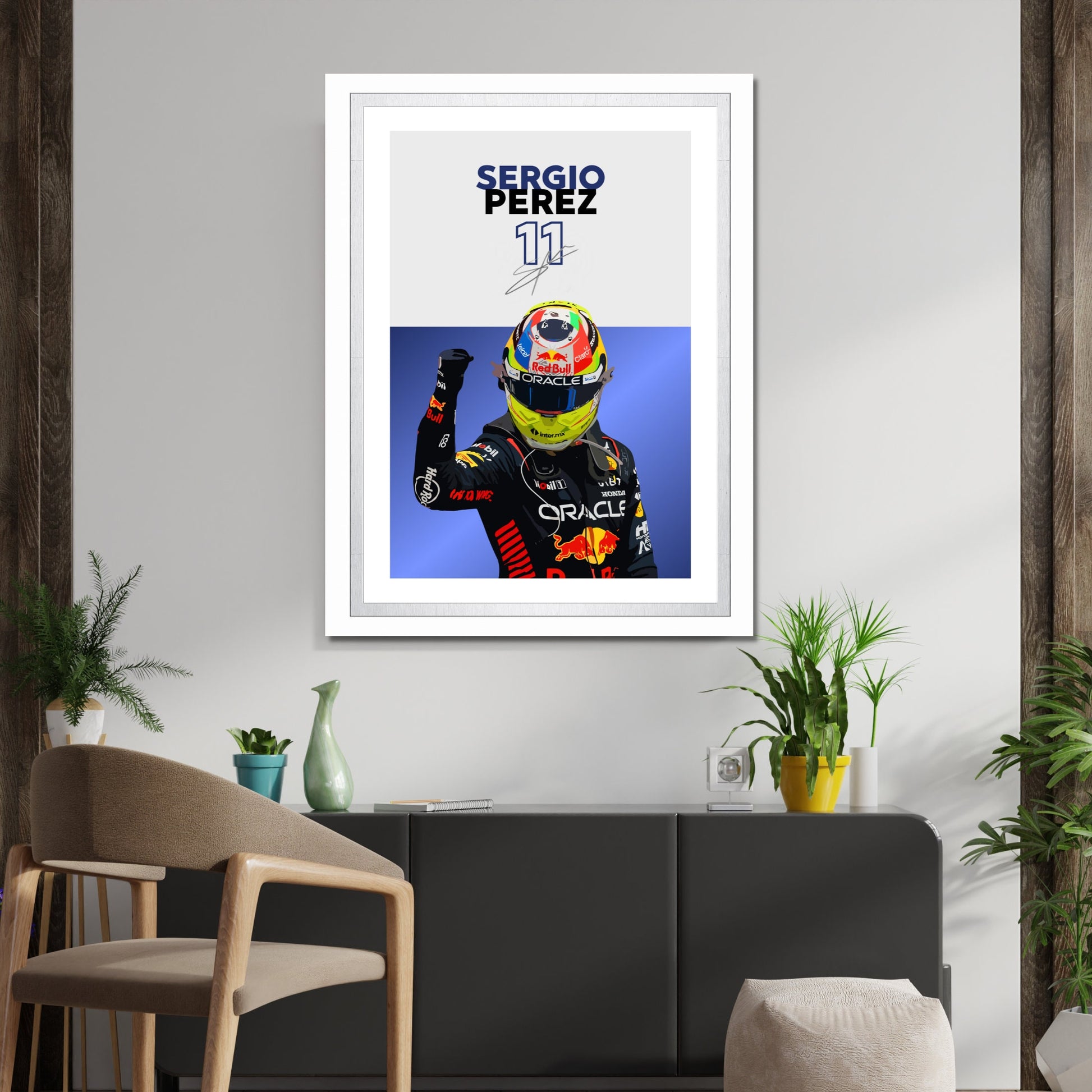 Affiche Red Bull F1 de Sergio Pérez – Décoration murale moderne de sport automobile