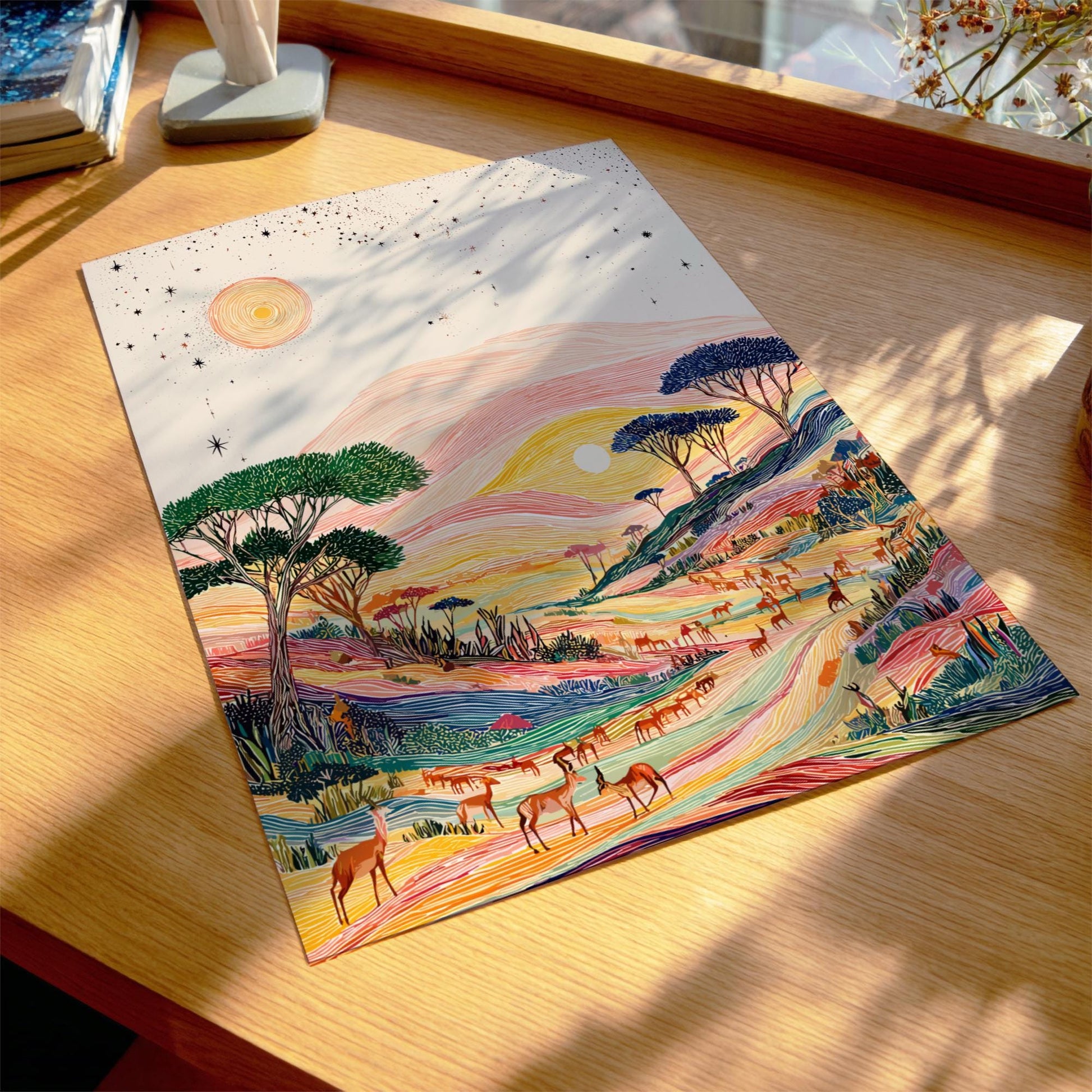 Imprimée avec des matériaux haut de gamme et des couleurs pastel éclatantes, l' affiche murale « Plaines ombragées » est conçue pour durer et s'harmonise avec les intérieurs modernes, rustiques, minimalistes ou cosy. Parfaite pour les impressions d'art pastel des prairies , les décorations murales fantaisistes et les décorations d'intérieur paisibles , cette affiche transforme n'importe quel mur en un havre de paix et constitue un cadeau attentionné pour les passionnés d'art et de nature.