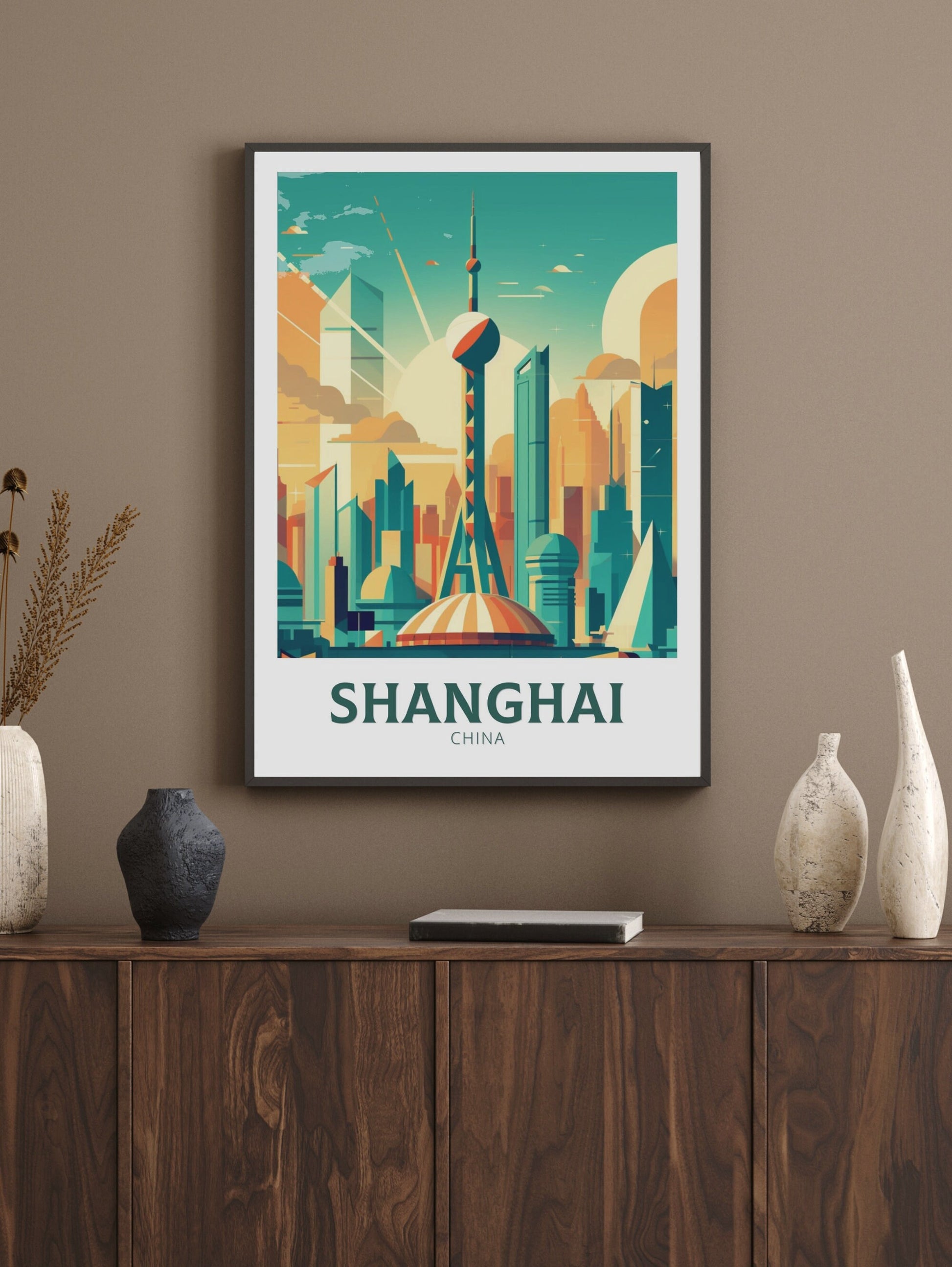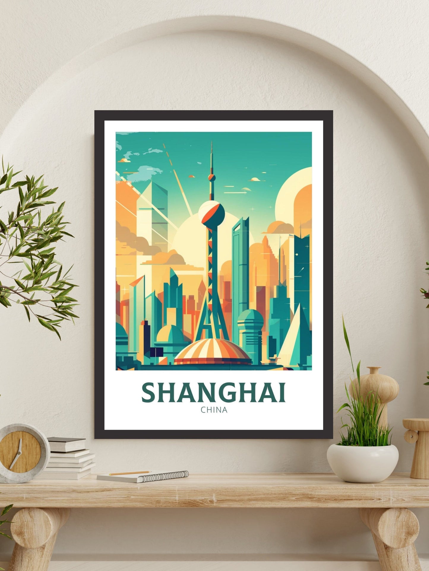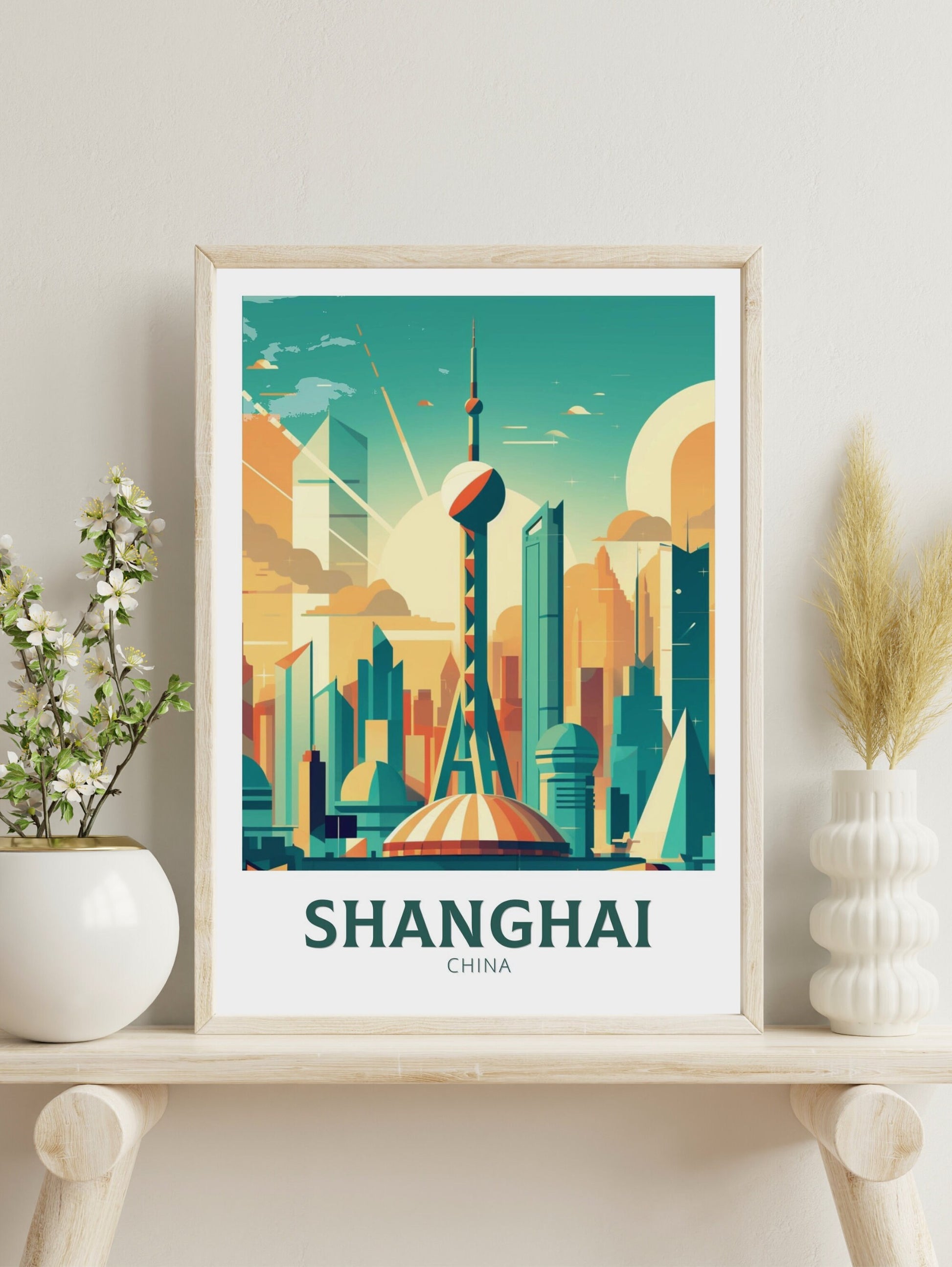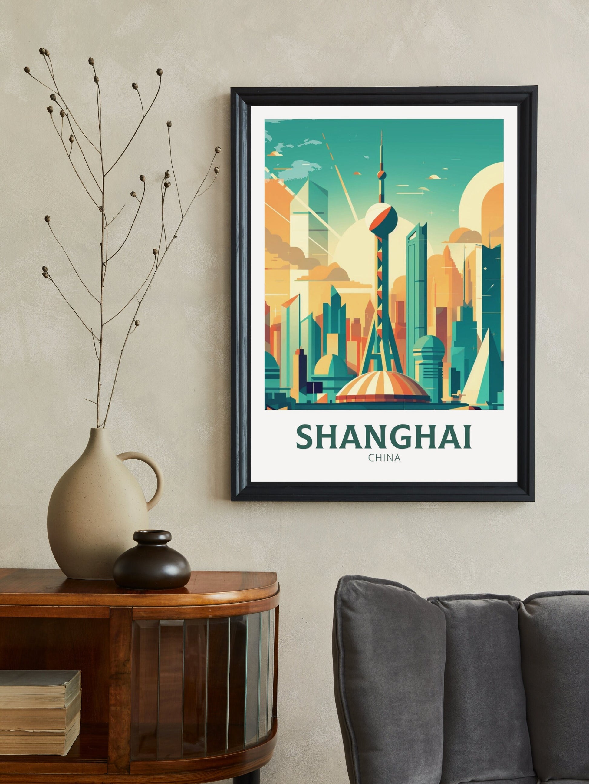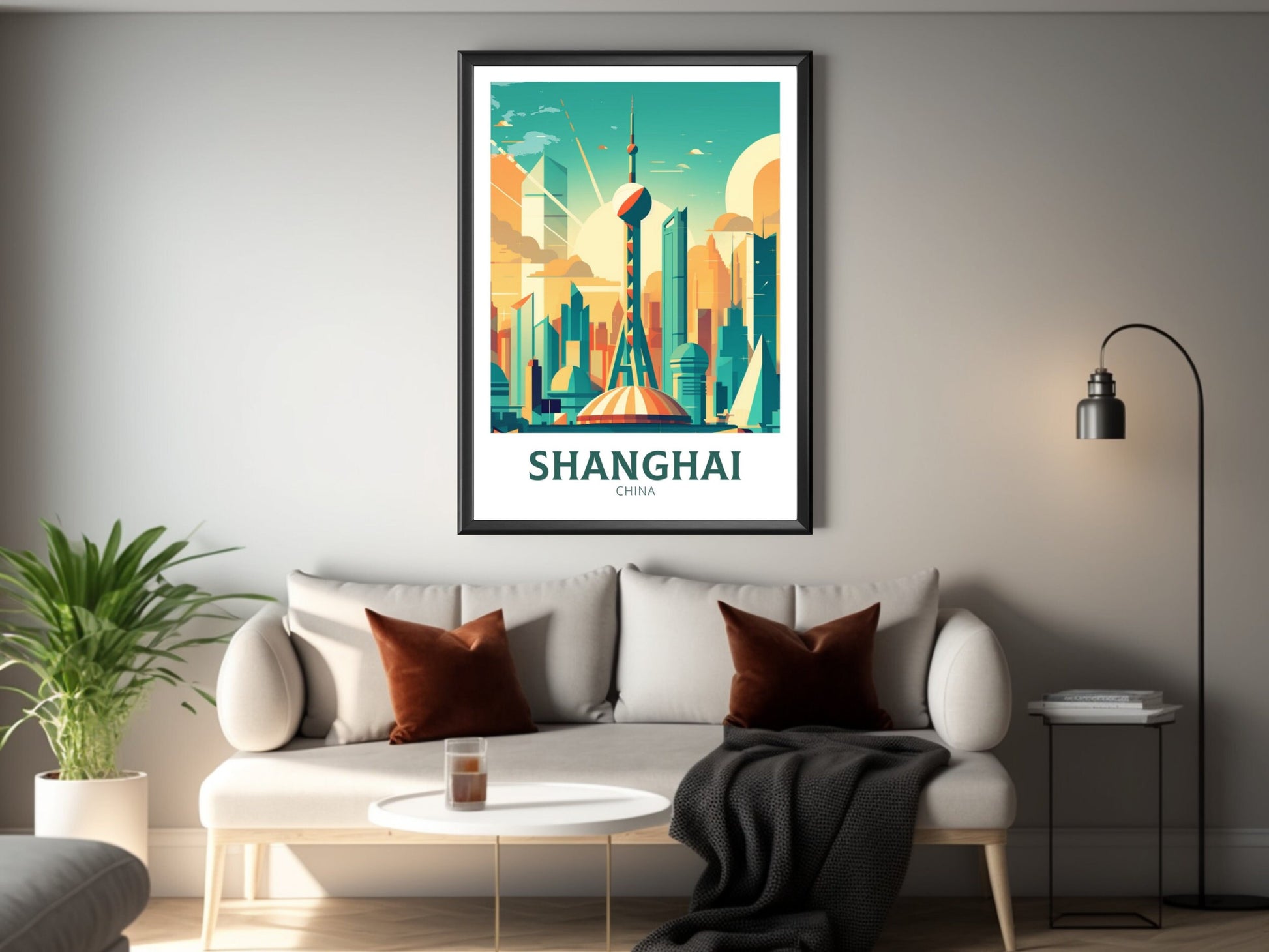 Notre affiche de voyage Shanghai – Œuvre rétro, plonge votre intérieur dans le charme nostalgique de la métropole chinoise grâce à son design vintage. Idéale pour les passionnés de voyages et d'art rétro, elle capture l'emblématique skyline de Shanghai et l'animation du Bund avec un style intemporel. Que vous ayez arpenté ses rues ou rêvé de son passé, cette affiche rétro Shanghai sera un atout déco exceptionnel.