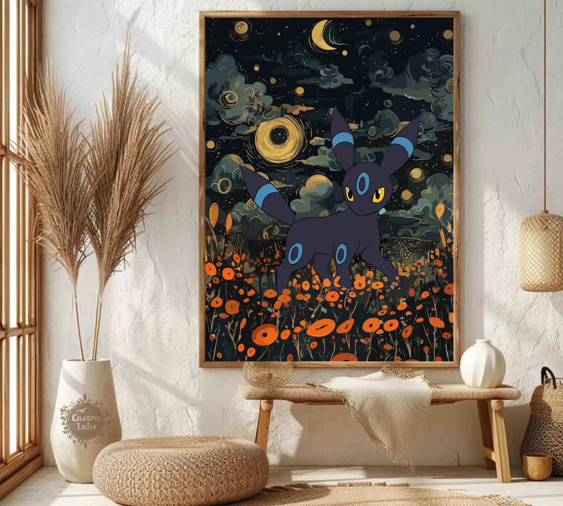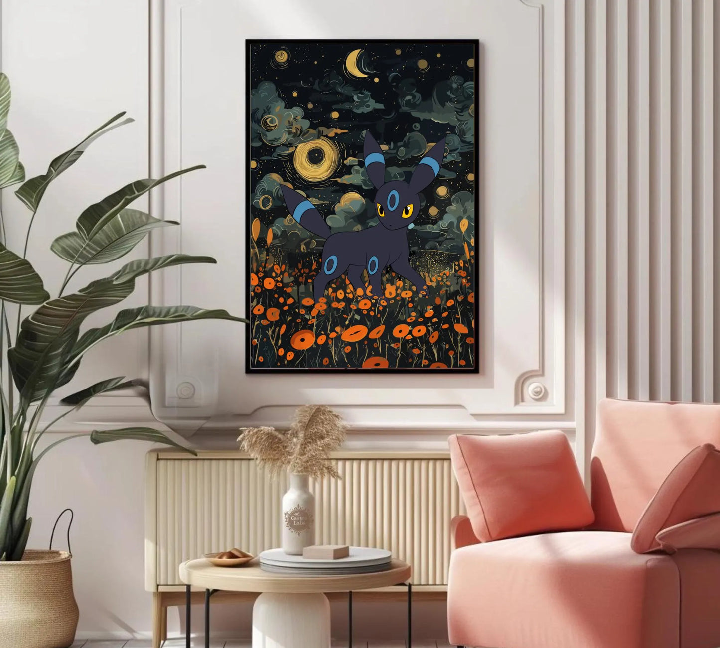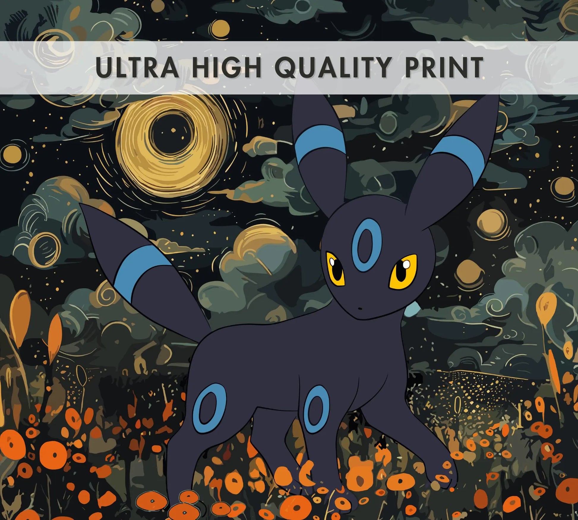 Affiche japonaise Umbreon Shiny - Illustration d'anime Pokémon pour une décoration murale moderne