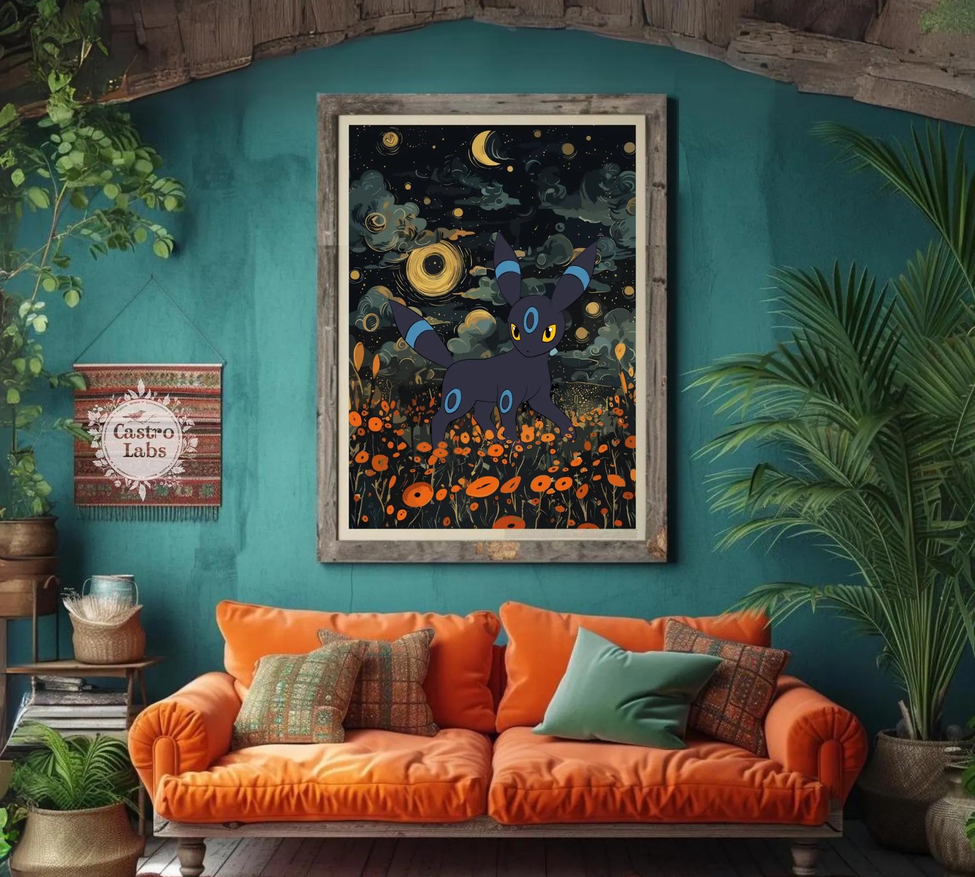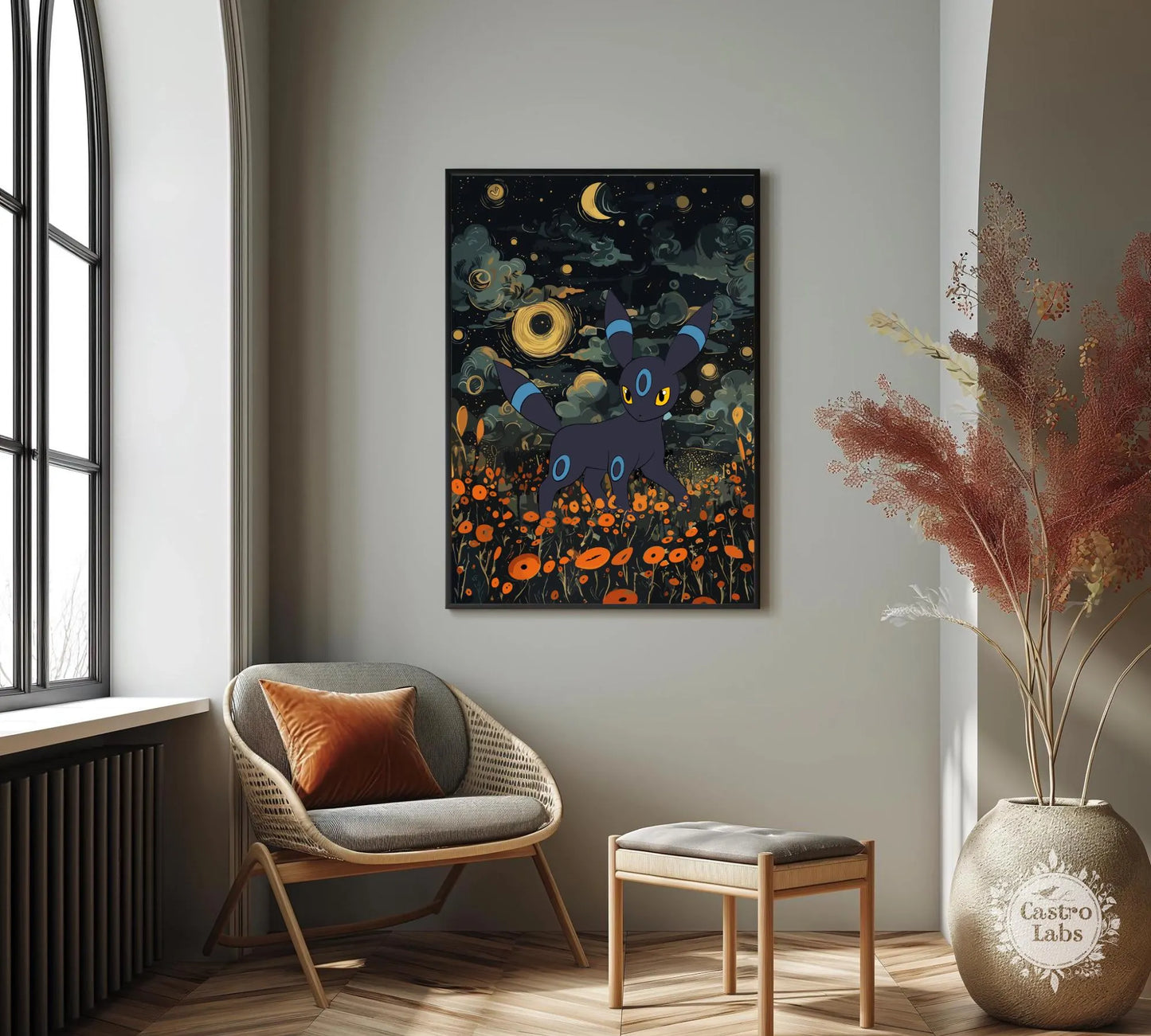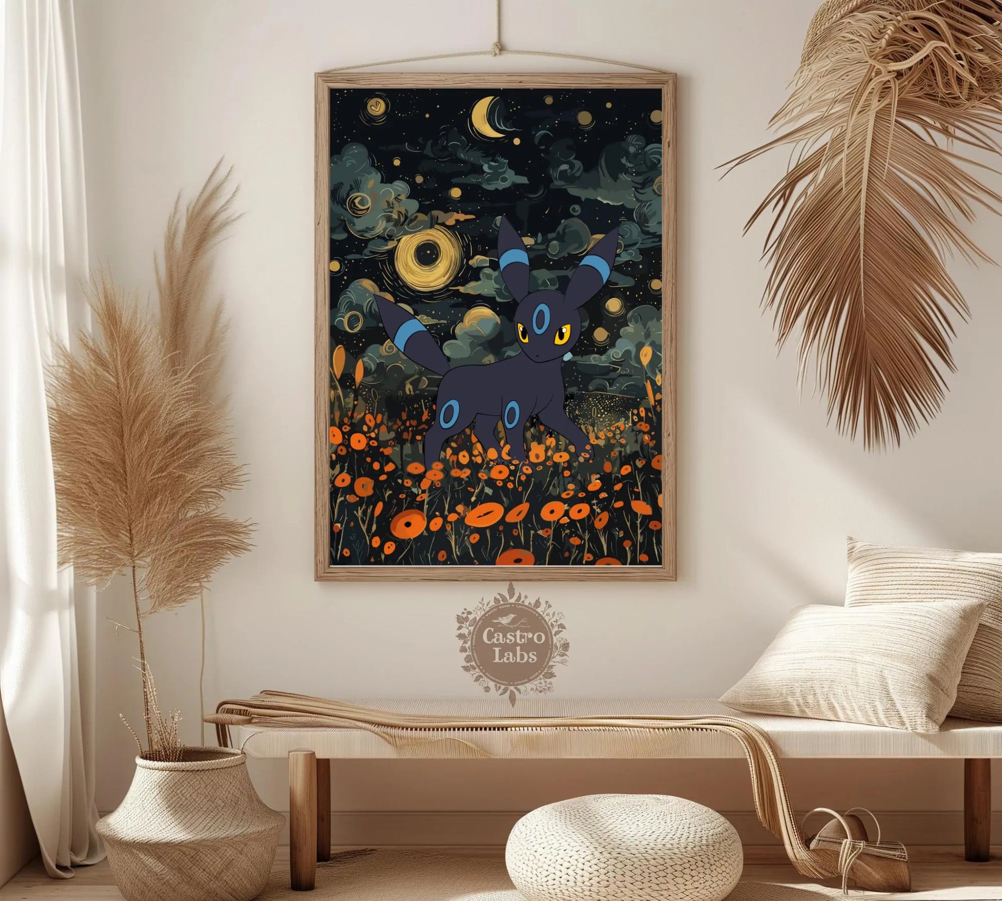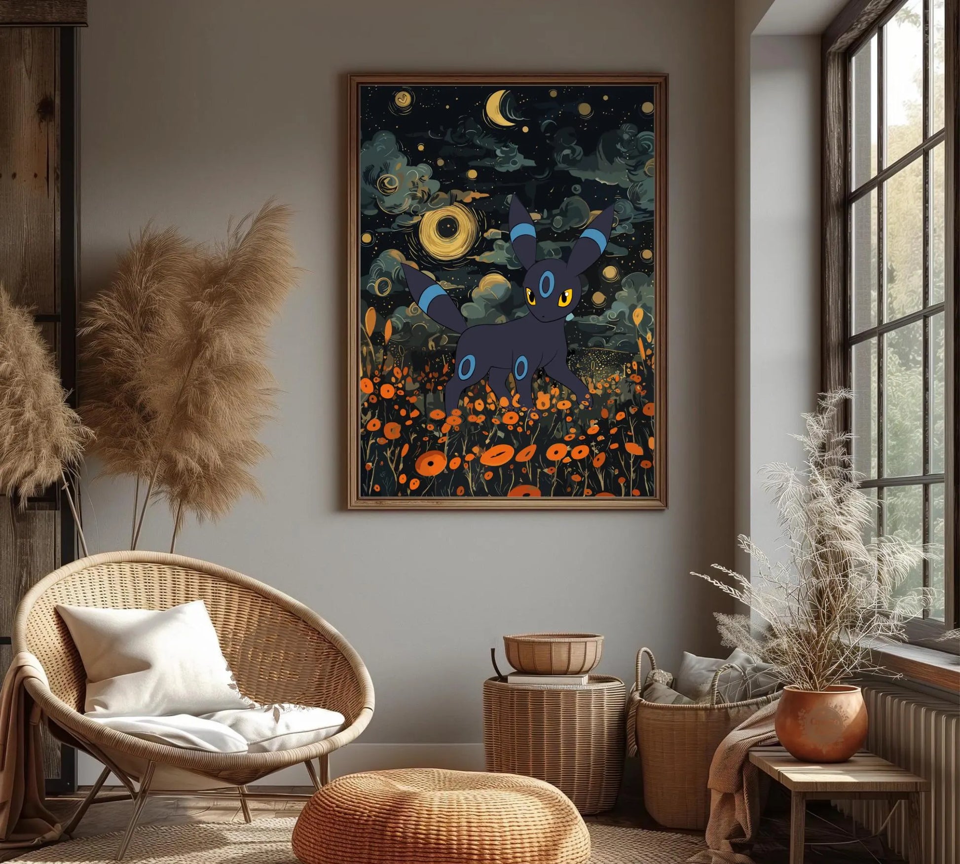 Affiche japonaise Umbreon Shiny - Illustration d'anime Pokémon pour une décoration murale moderne