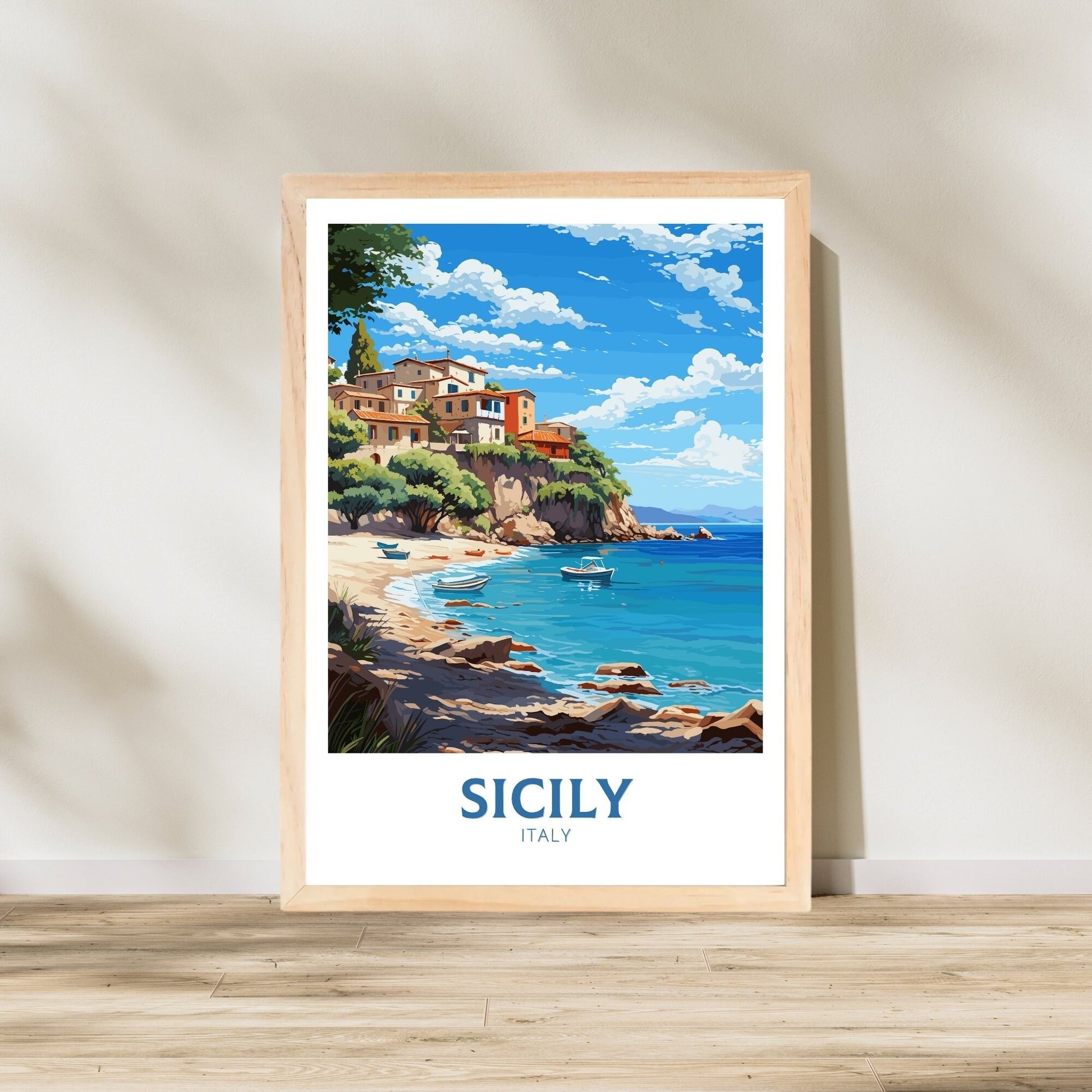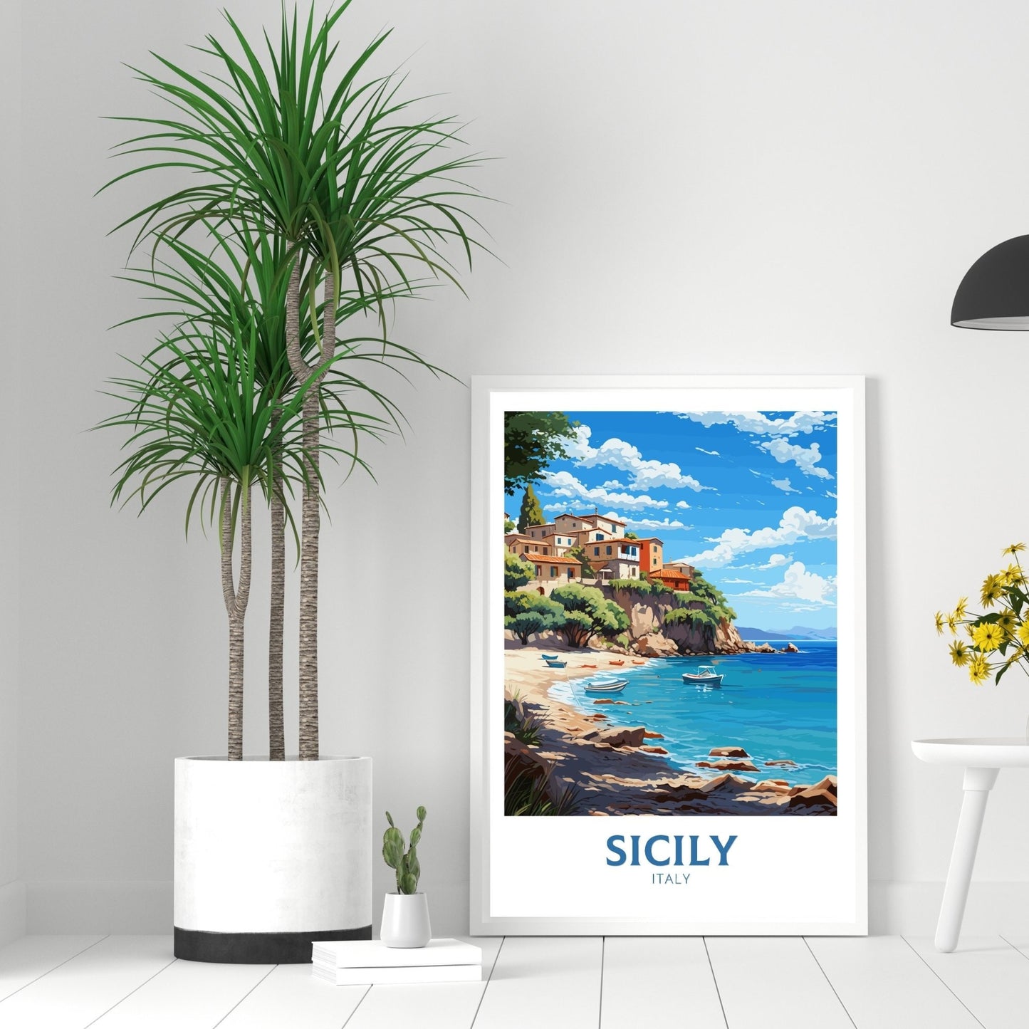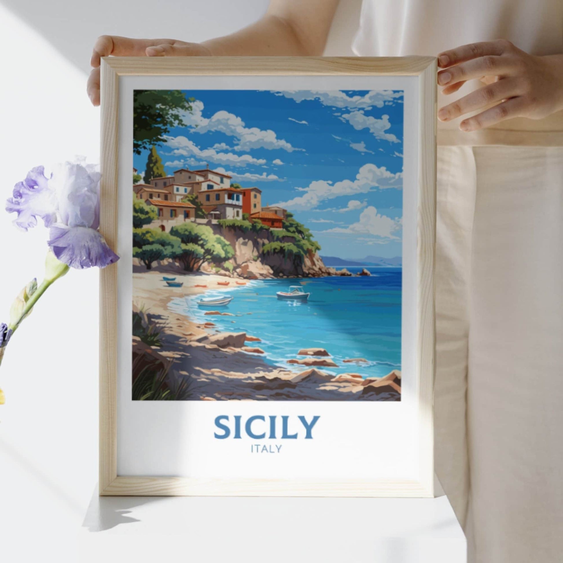 Imprimée sur des matériaux de qualité supérieure, avec des couleurs vives et des détails précis, la décoration murale « Voyage en Sicile » offre une expérience visuelle époustouflante qui célèbre le riche patrimoine et les paysages pittoresques de la Sicile. Que vous commémoriez un voyage ou que vous soyez simplement amateur d'art méditerranéen, cette affiche Italie est un magnifique hommage à l'une des régions les plus enchanteresses d'Italie.