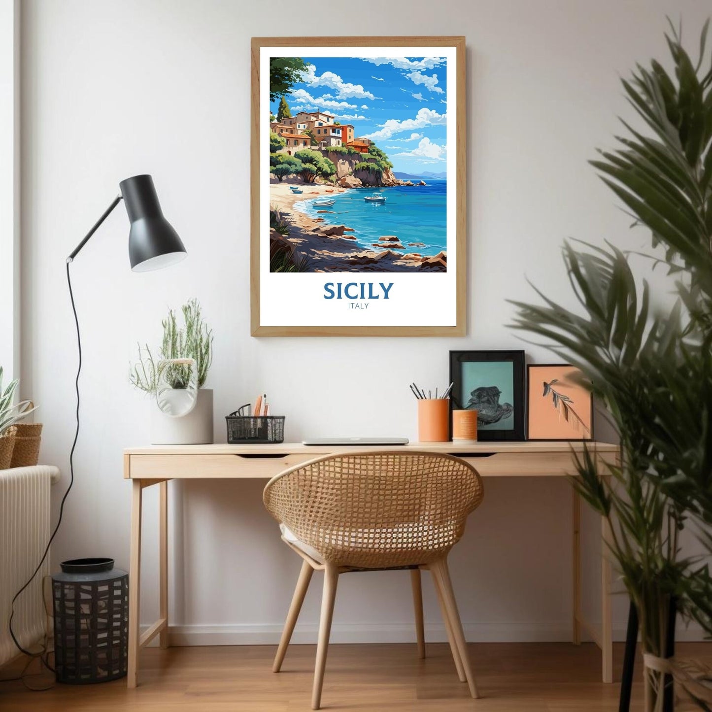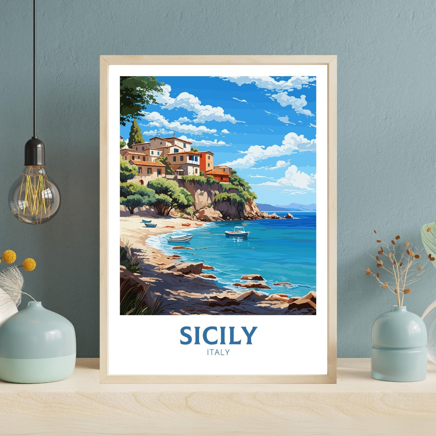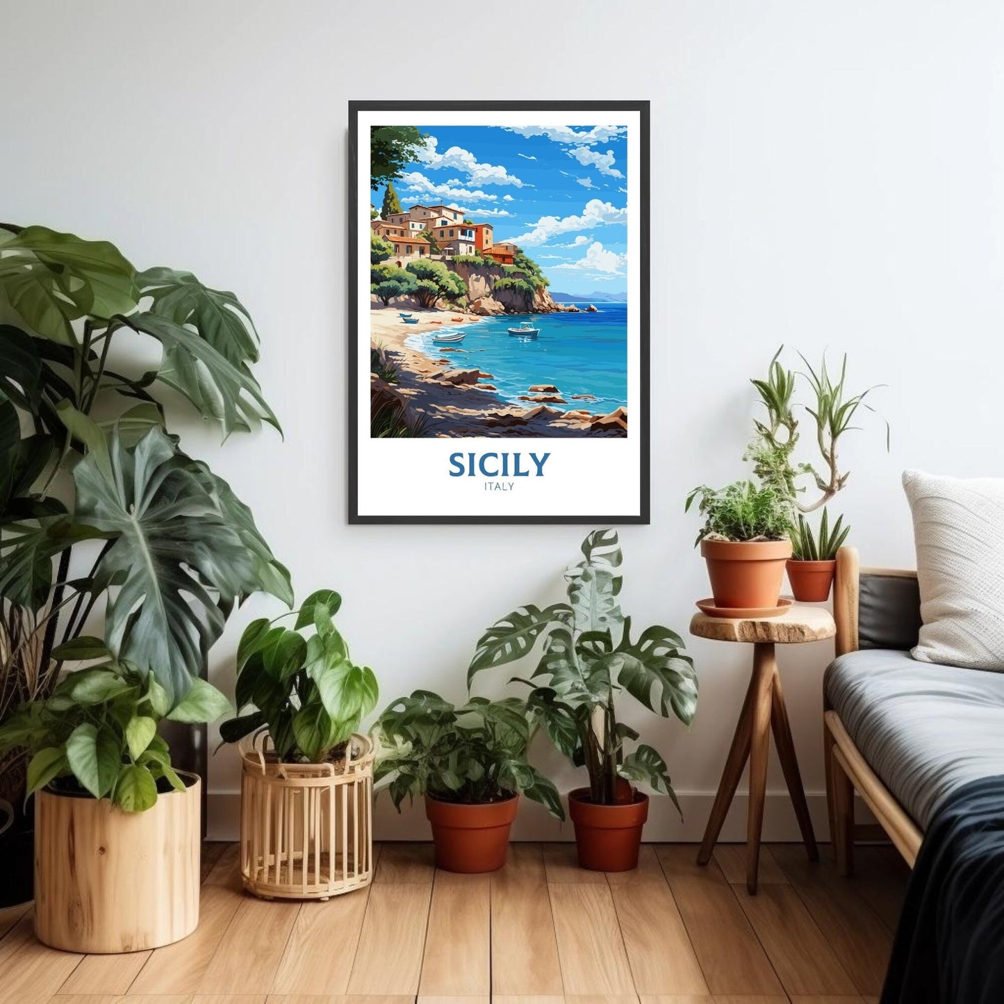 Imprimée sur des matériaux de qualité supérieure, avec des couleurs vives et des détails précis, la décoration murale « Voyage en Sicile » offre une expérience visuelle époustouflante qui célèbre le riche patrimoine et les paysages pittoresques de la Sicile. Que vous commémoriez un voyage ou que vous soyez simplement amateur d'art méditerranéen, cette affiche Italie est un magnifique hommage à l'une des régions les plus enchanteresses d'Italie.