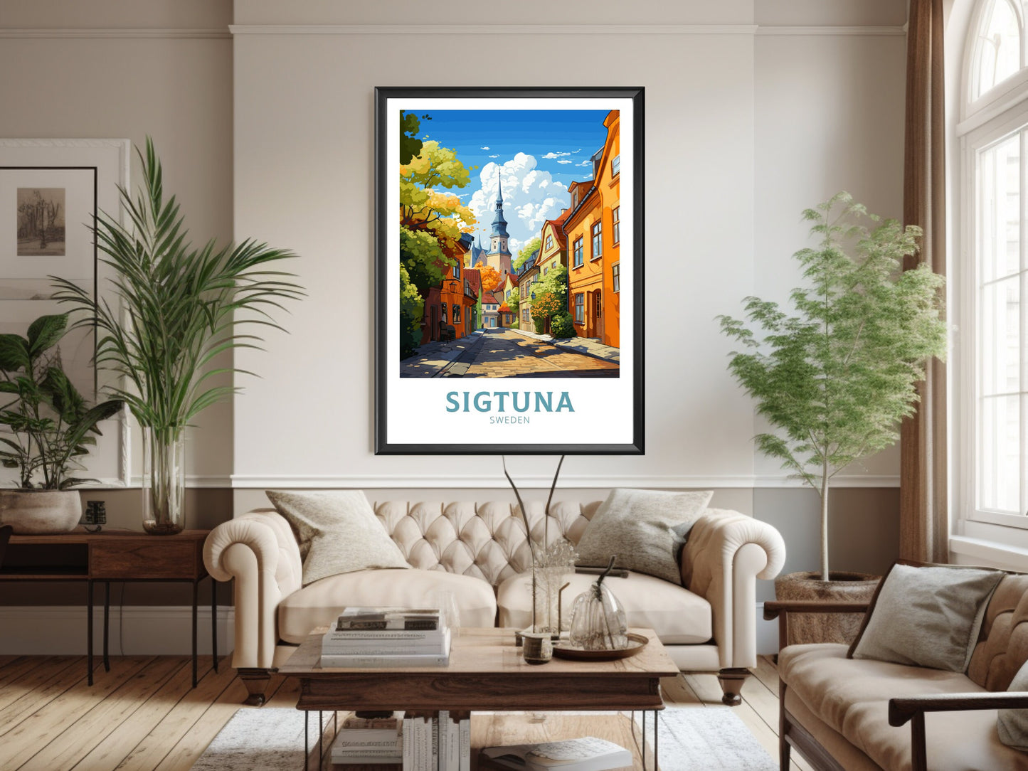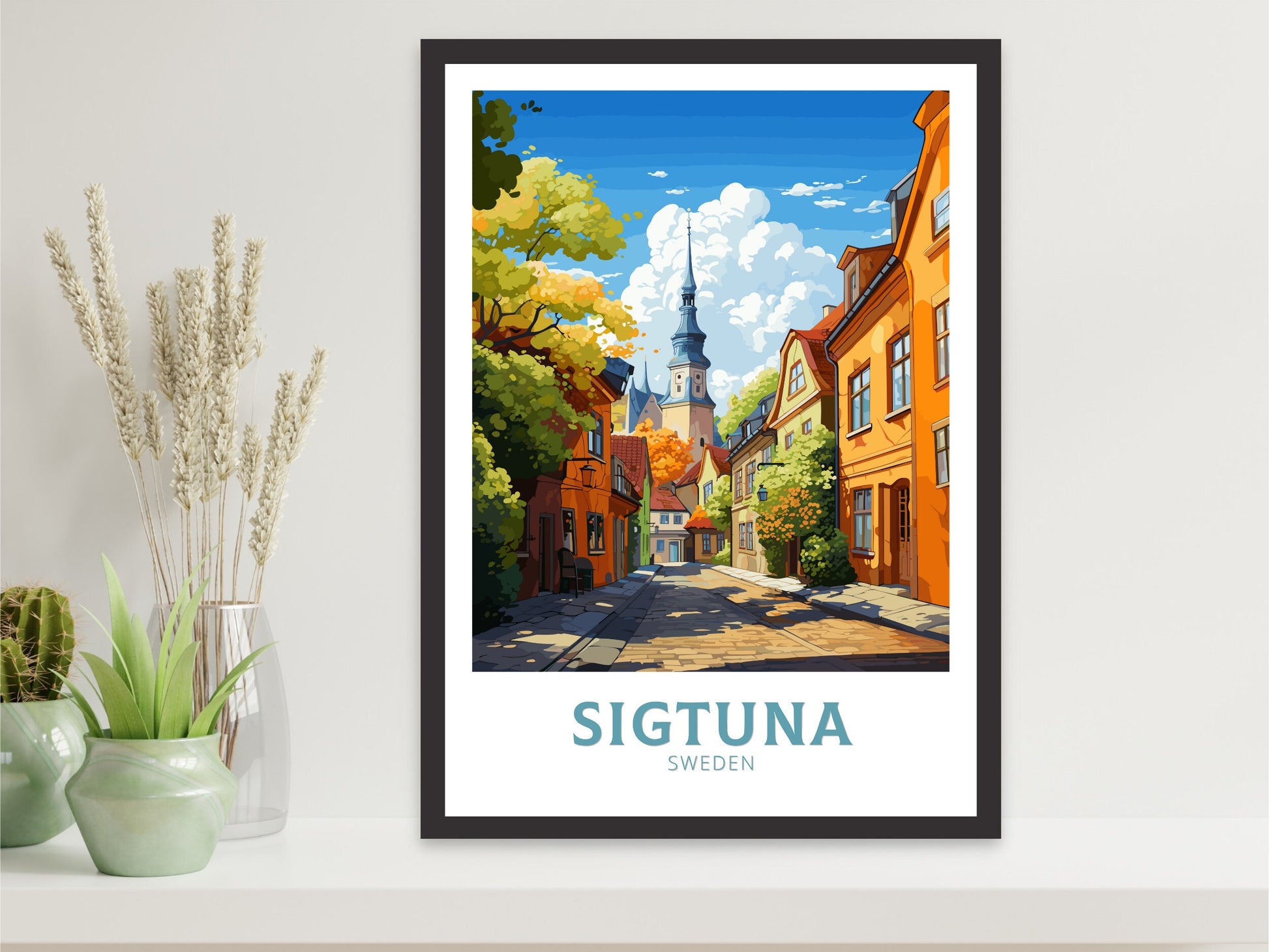 Imprimée sur un papier de qualité supérieure aux couleurs vives et aux détails précis, l' affiche de voyage de Sigtuna est une pièce décorative idéale pour votre salon, votre bureau ou votre collection inspirée des voyages. Souvenir de voyage ou touche d'élégance, cette œuvre suédoise capture avec brio l'esprit unique de Sigtuna.