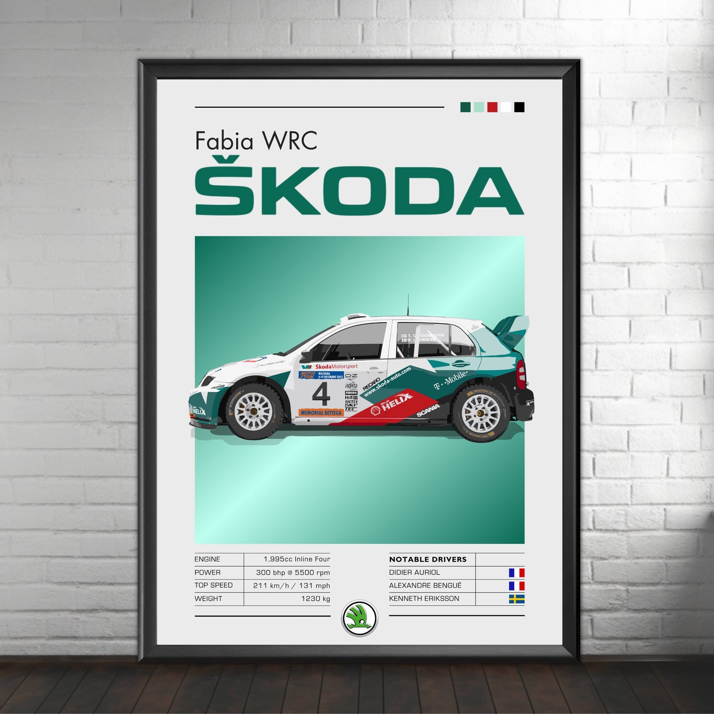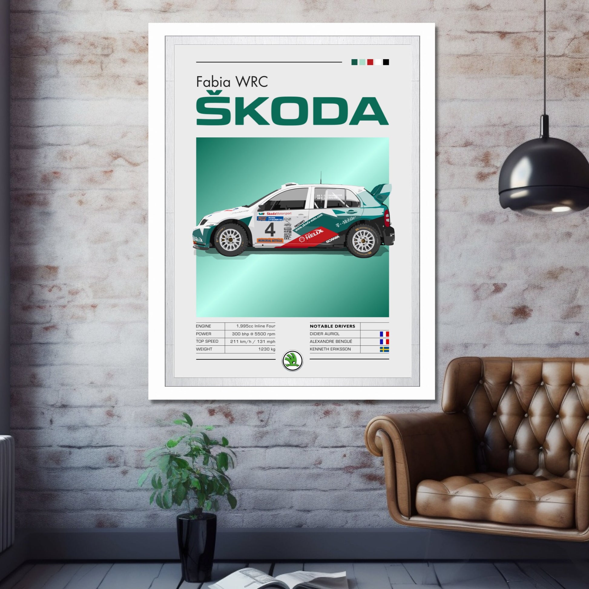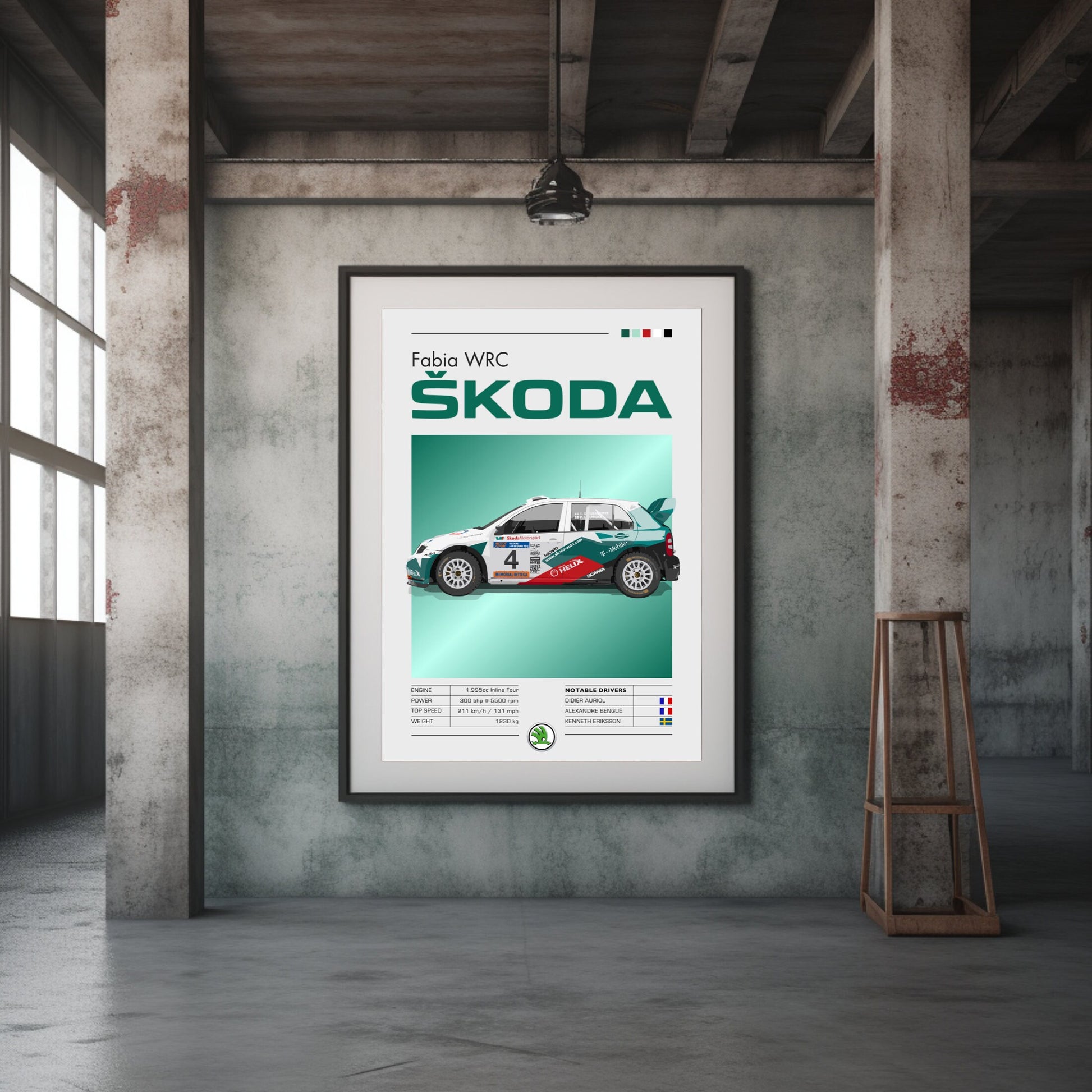 Affiche Škoda Fabia WRC – Décoration murale de voiture de rallye mondiale des années 2000