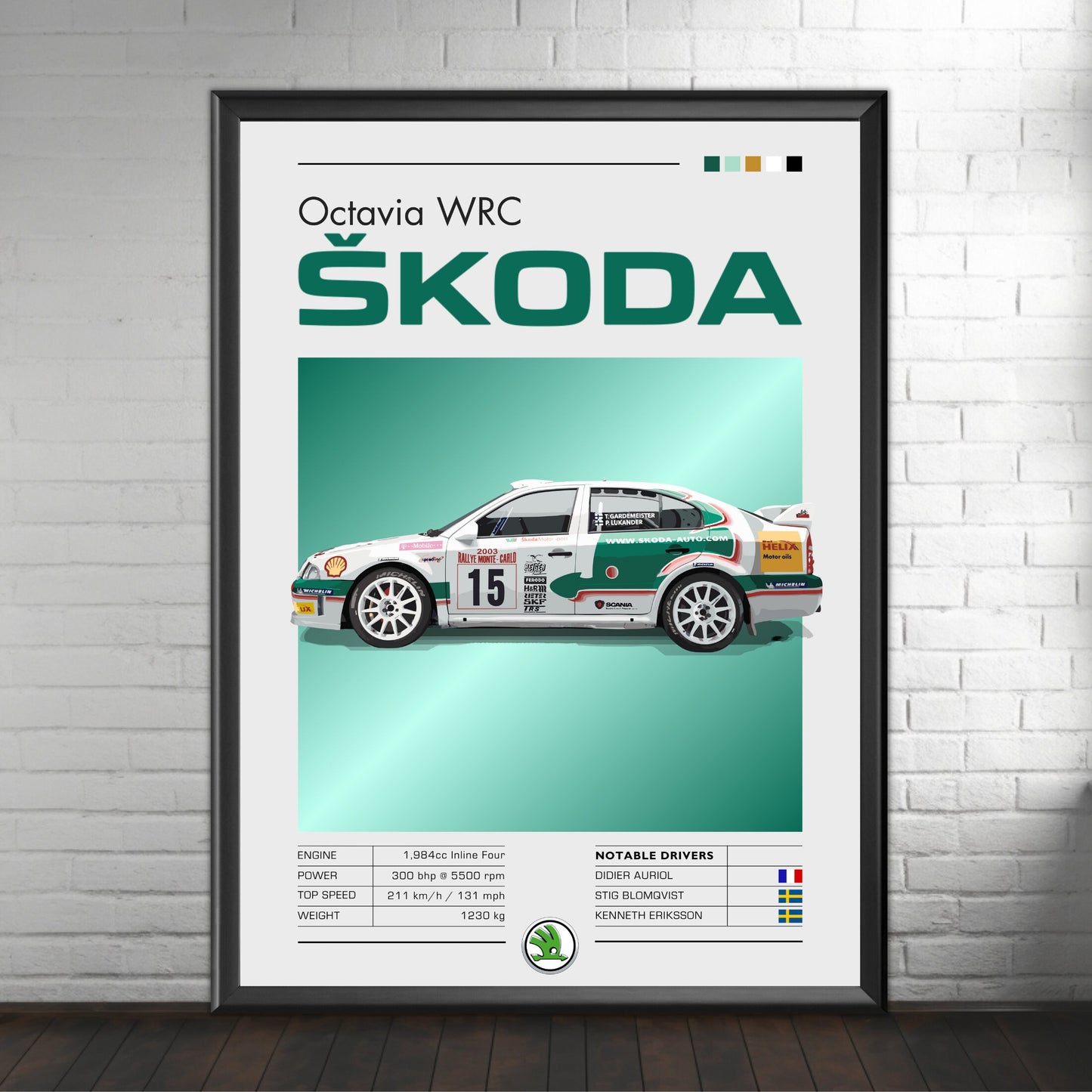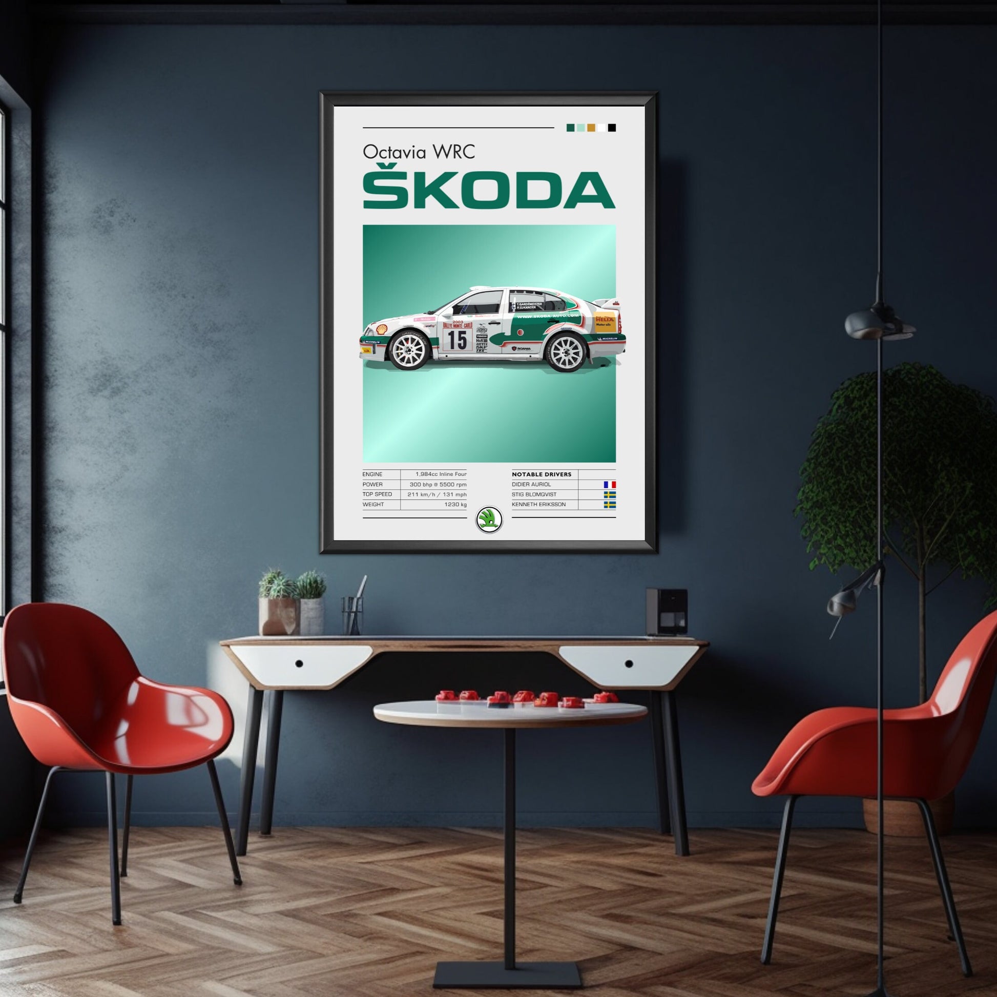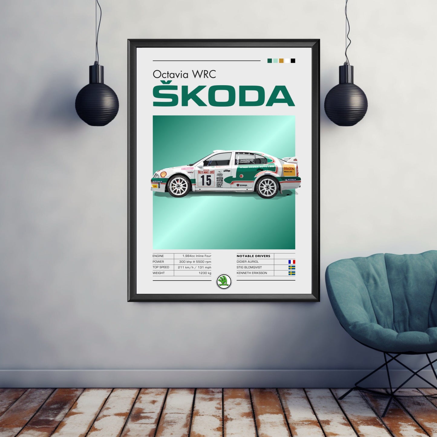 Affiche Škoda Octavia WRC – Décoration murale de voiture de rallye des années 2000