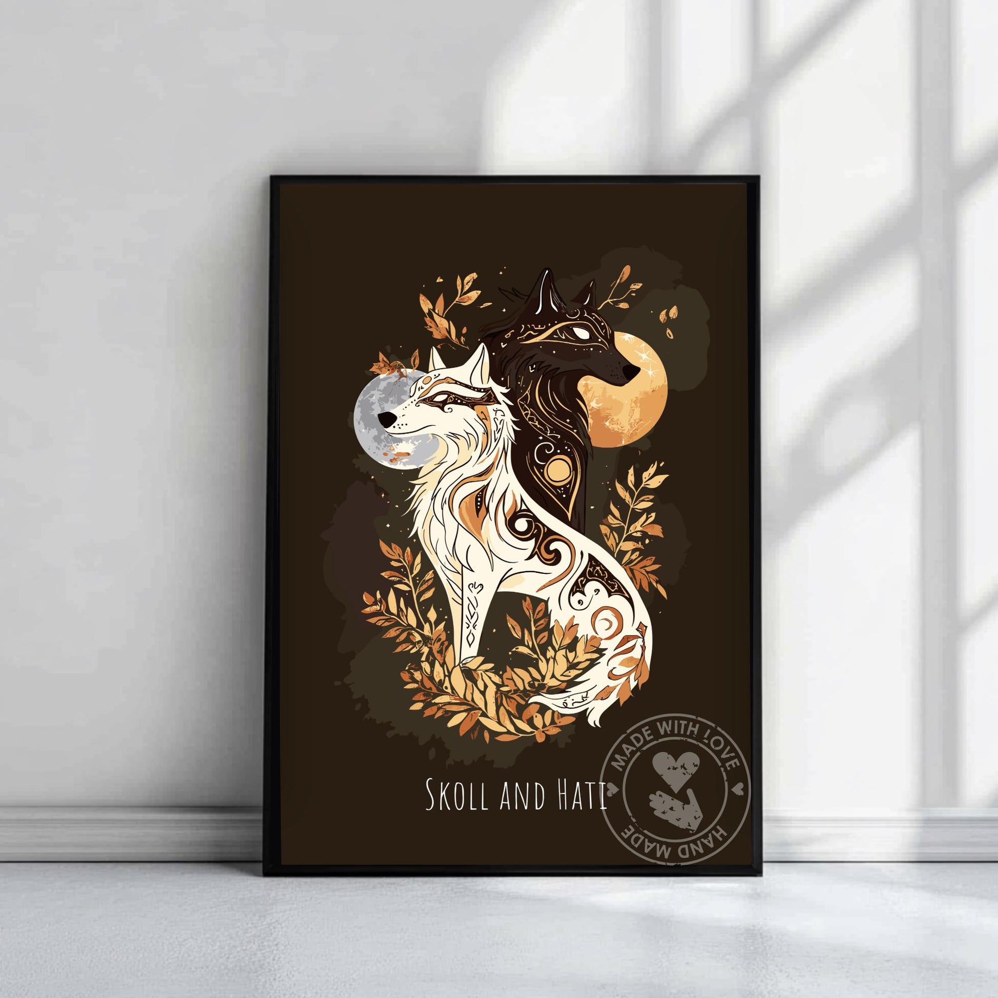 Affiche Skoll et Hati Mythologie nordique Les Loups de l'Éclipse