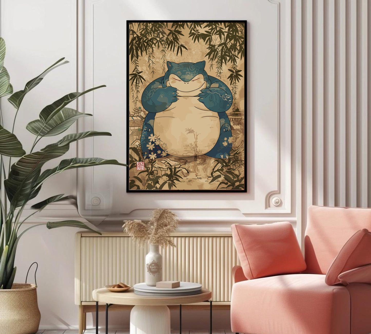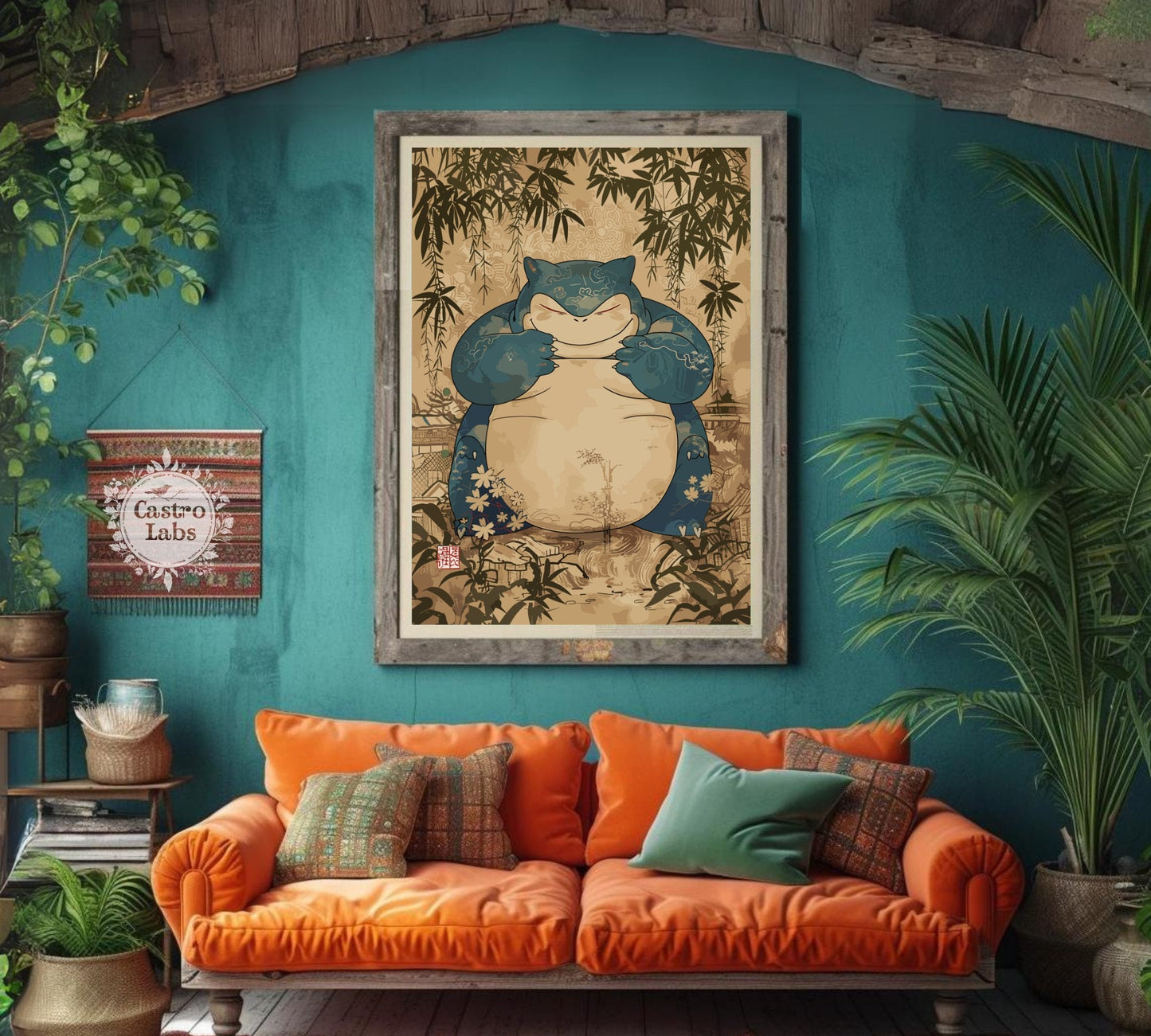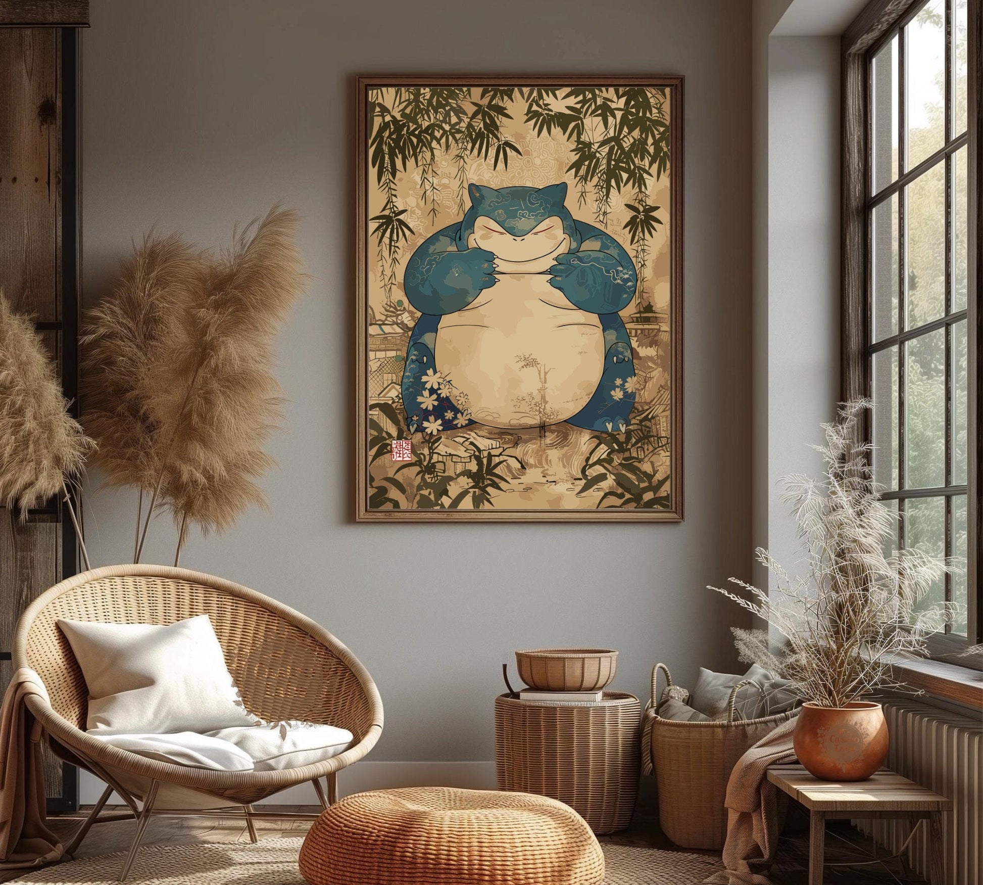 Tapisserie japonaise Ronflex - Affiche d'animation Pokémon et décoration murale relaxante
