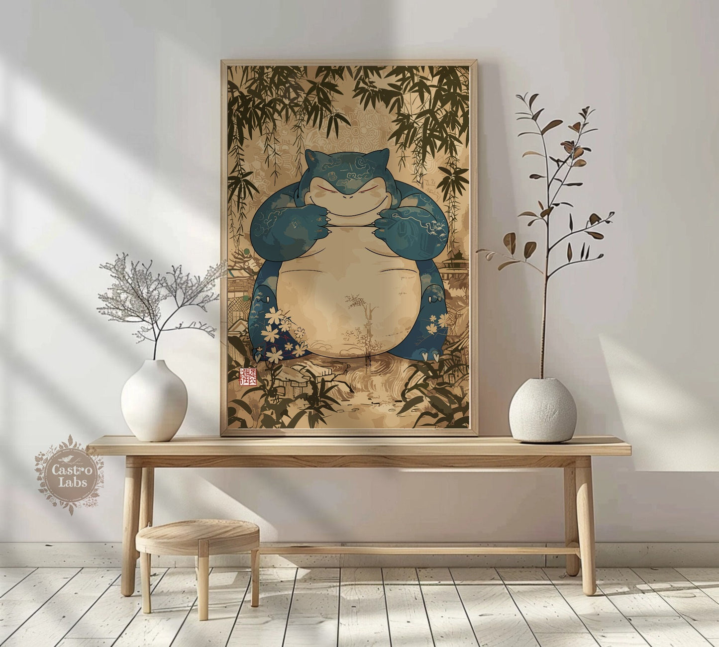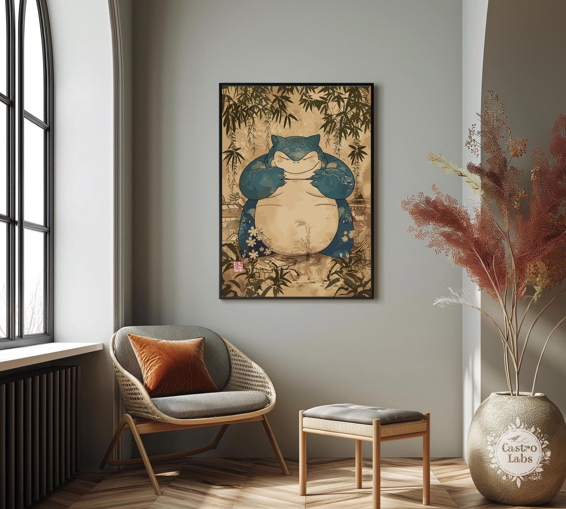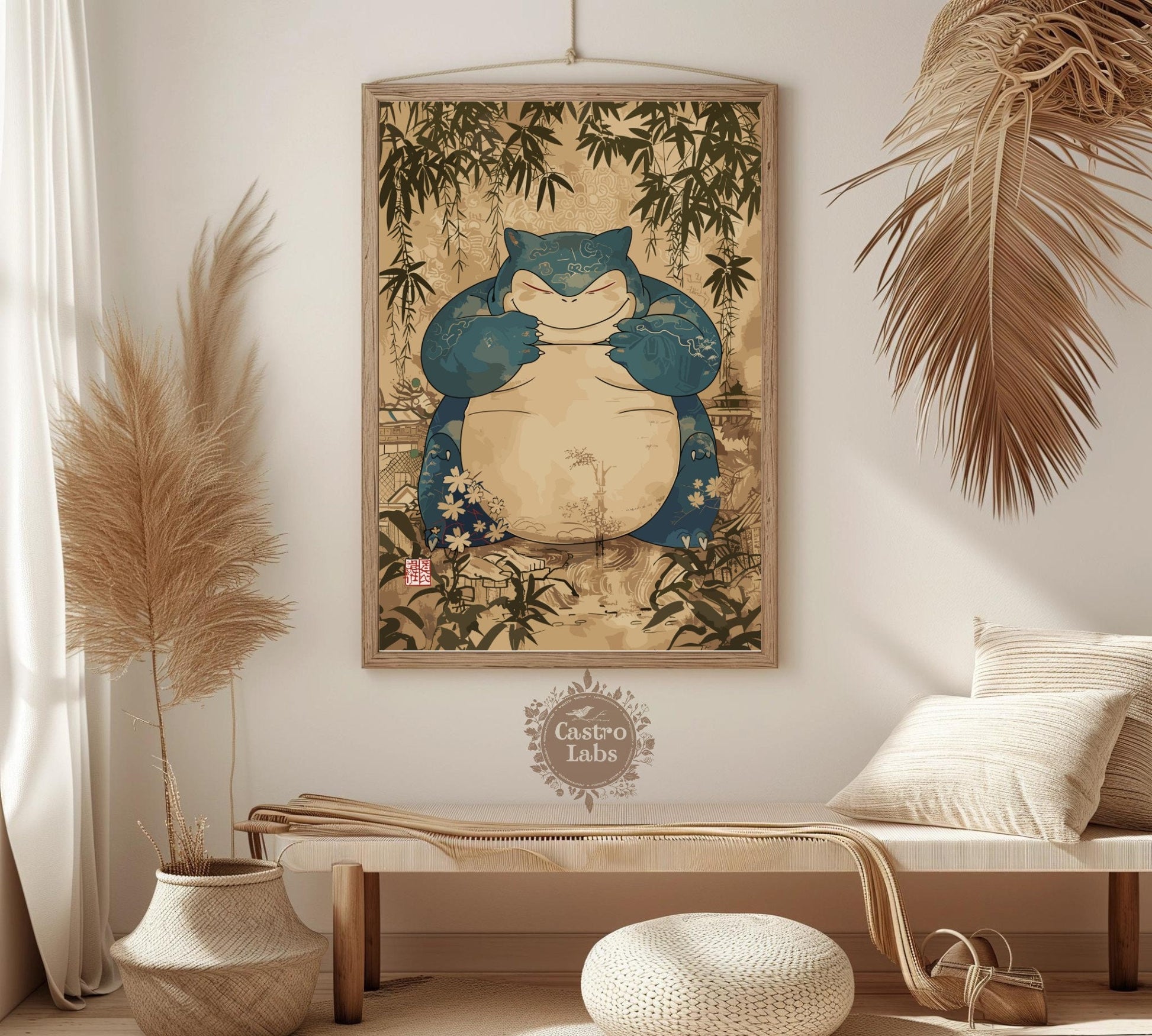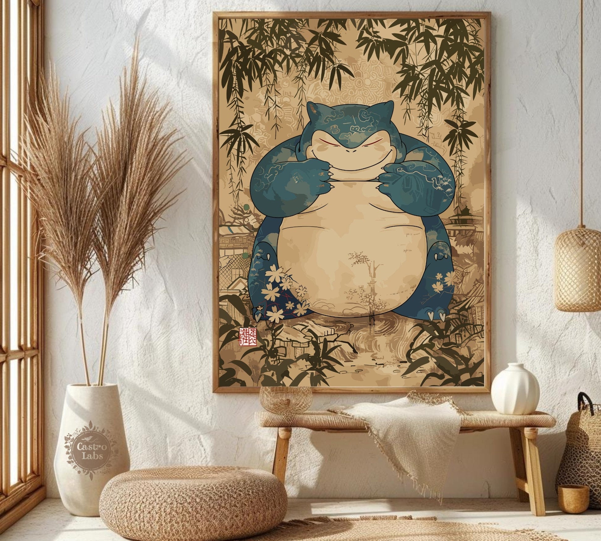 Tapisserie japonaise Ronflex - Affiche d'animation Pokémon et décoration murale relaxante