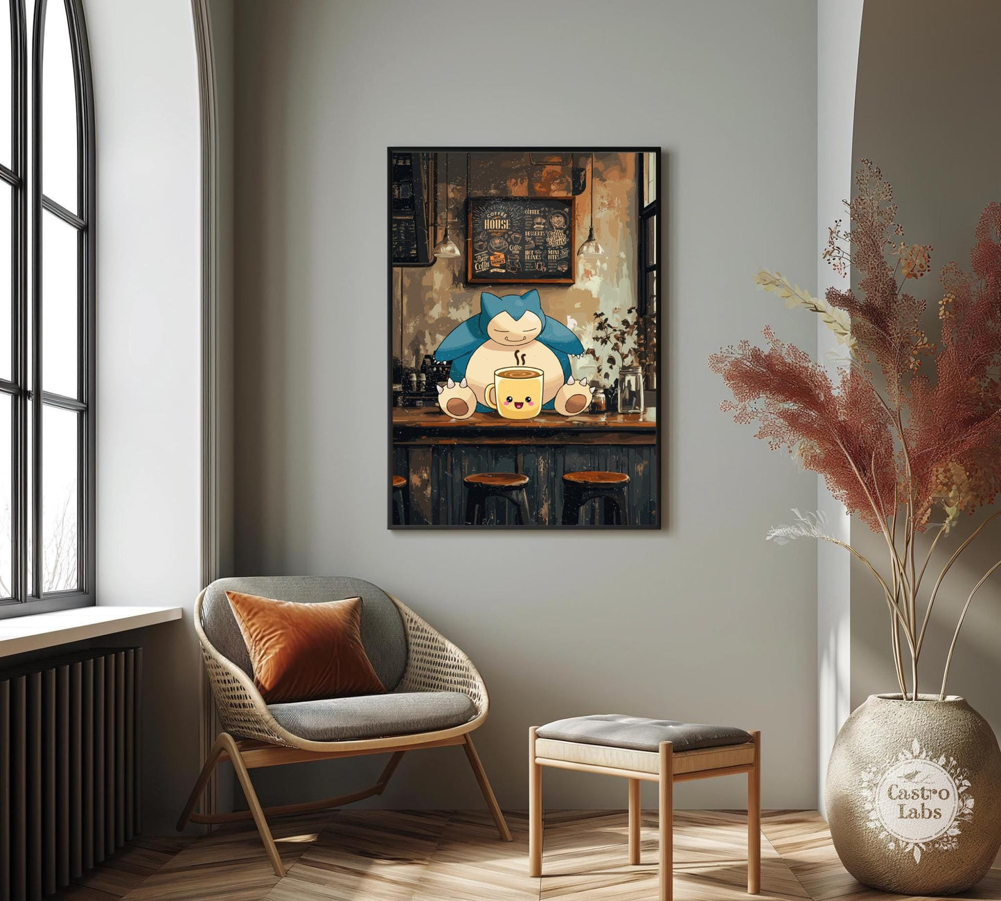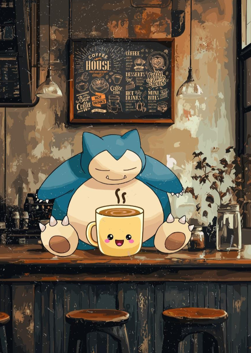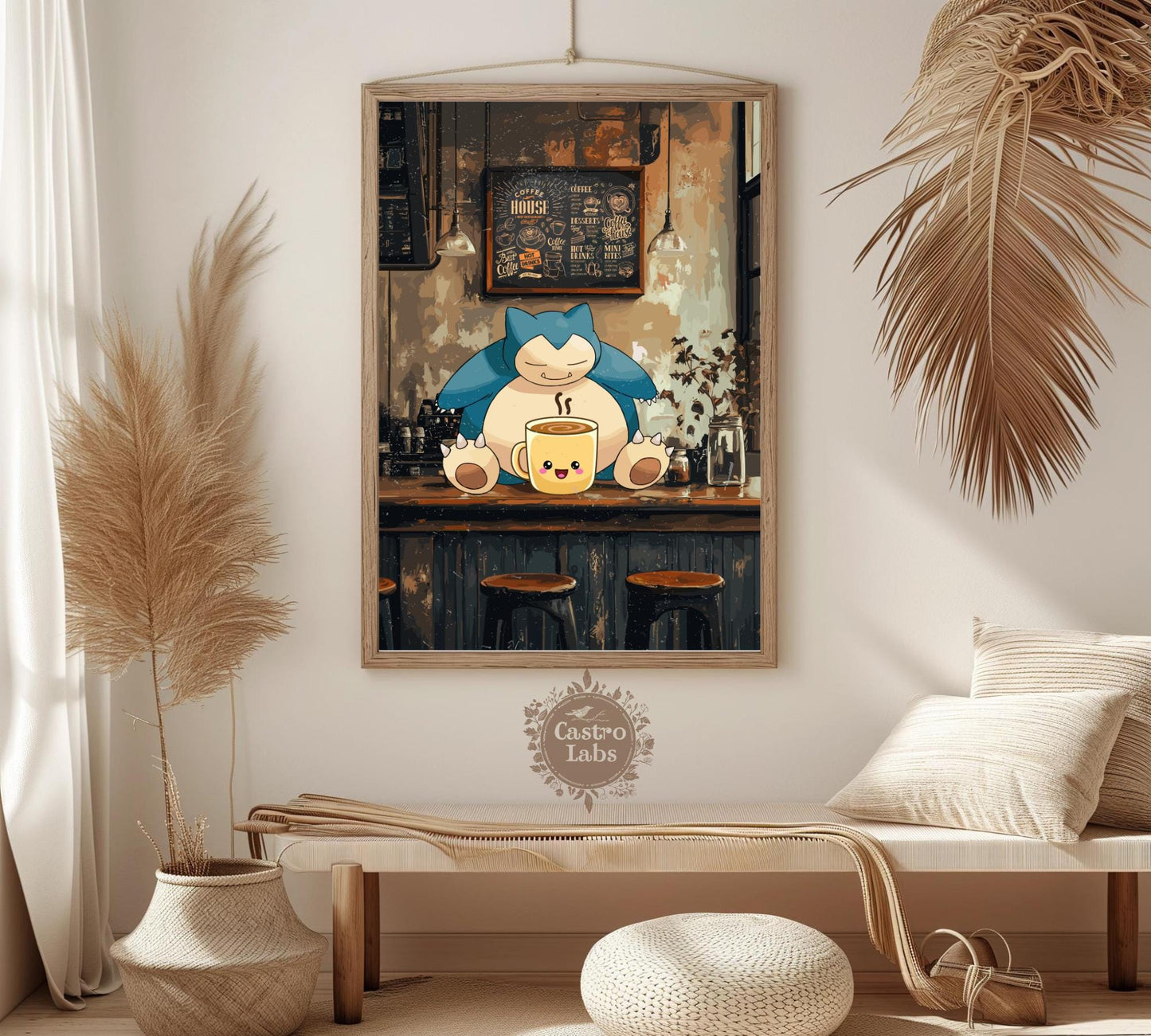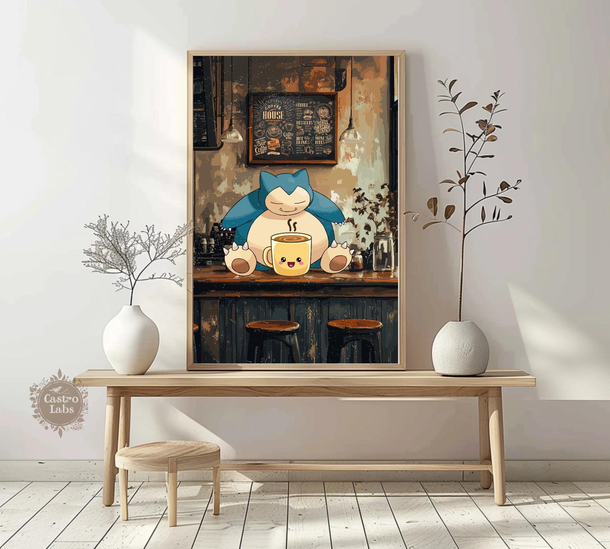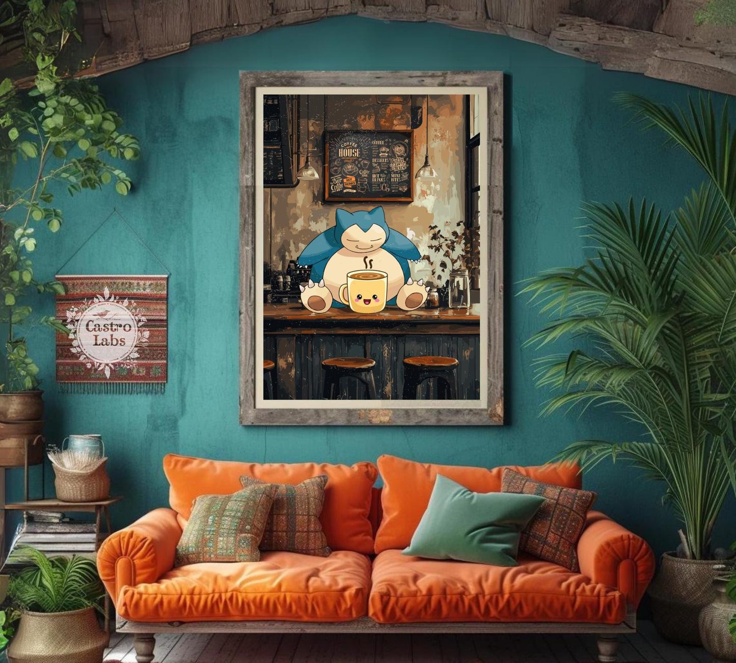 Réalisé sur du papier durable et de haute qualité, ce fan art Pokémon déverse l'essence relaxante de Ronflex dans une ambiance chaleureuse de café, idéal pour les amateurs de sieste ou les fans de Pokémon en quête d'un décor mural relaxant. Un vrai moment de sieste avec une bonne bière.