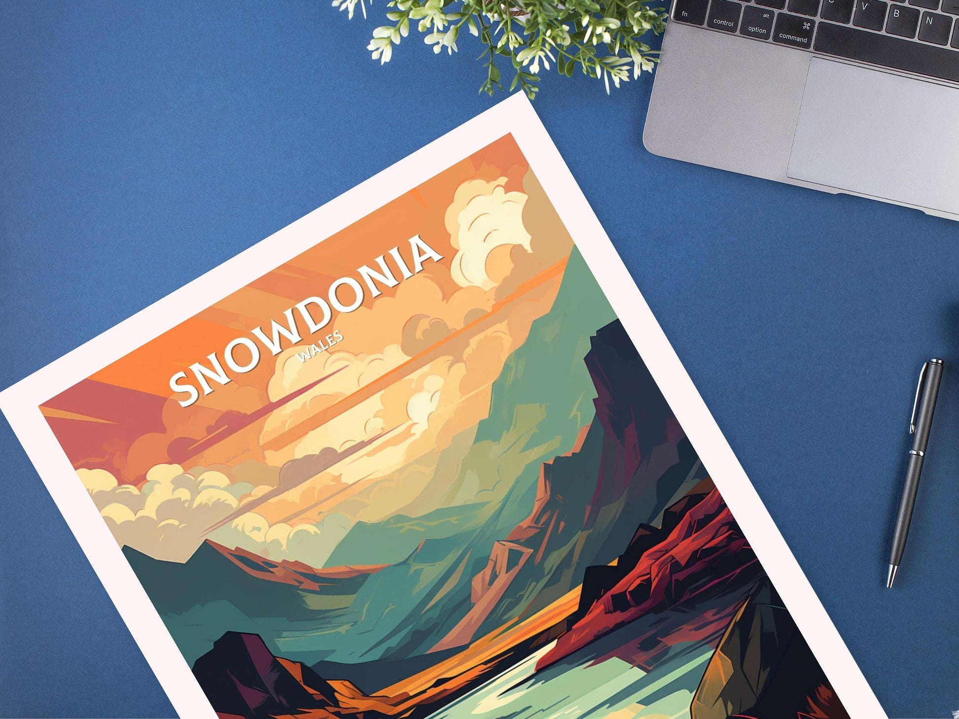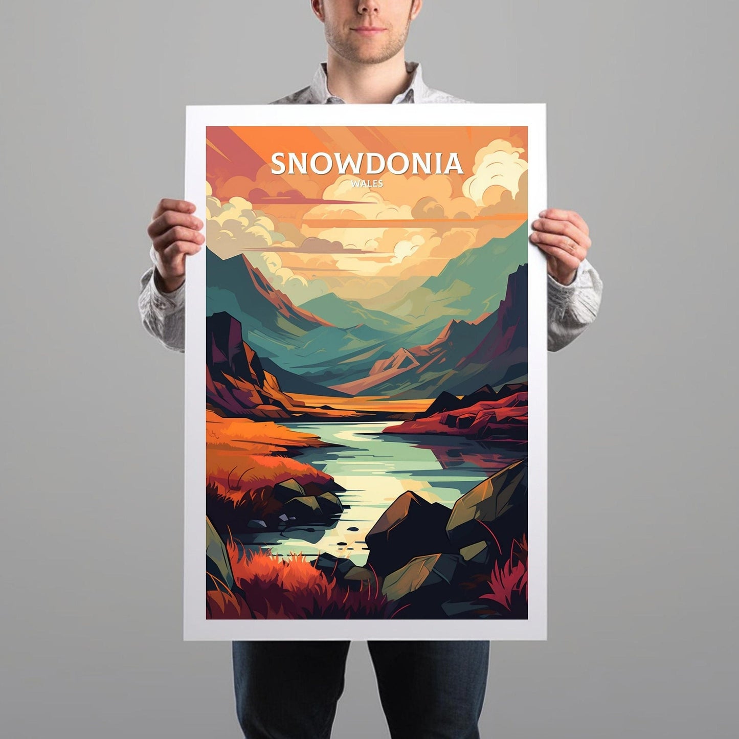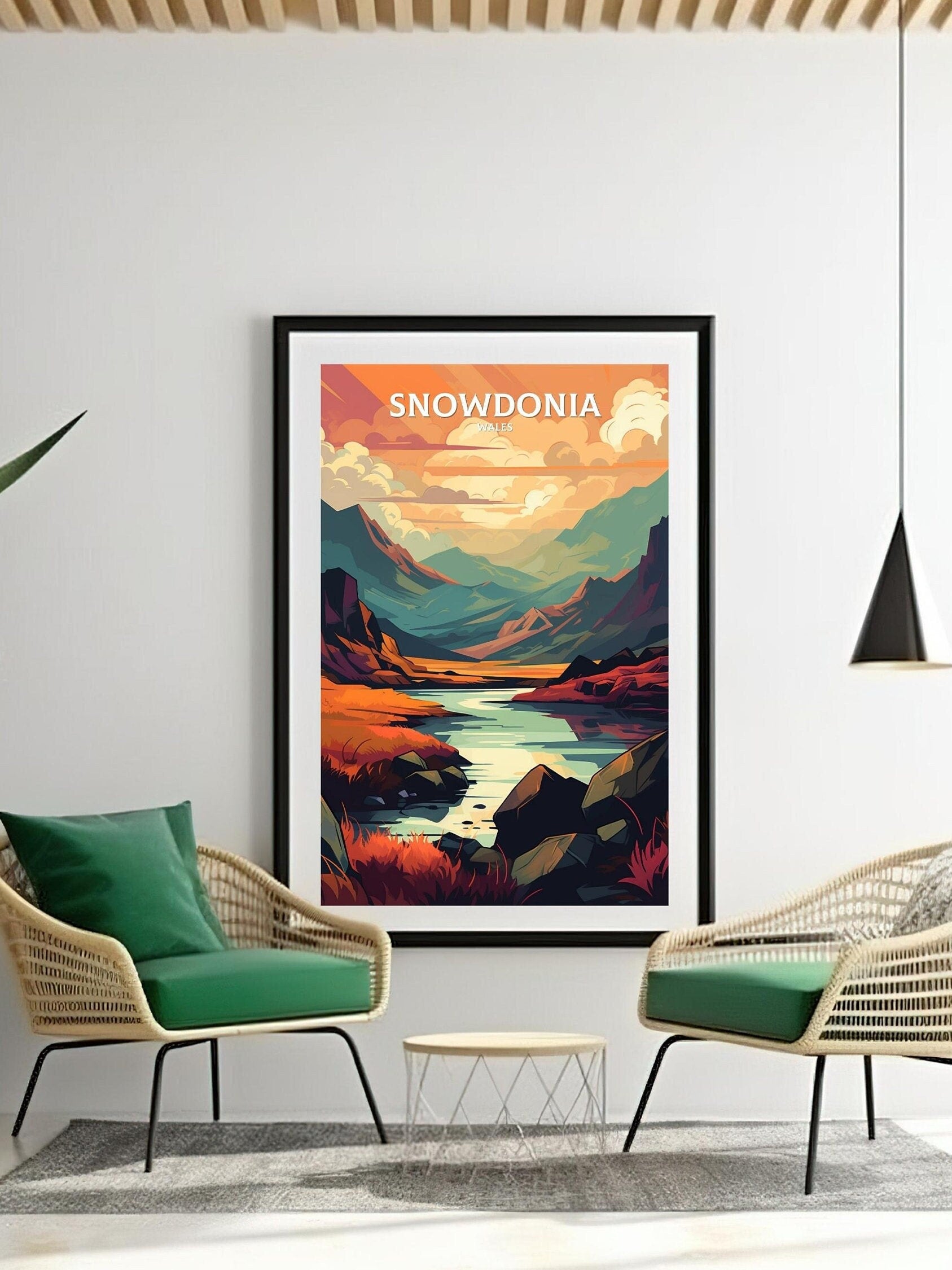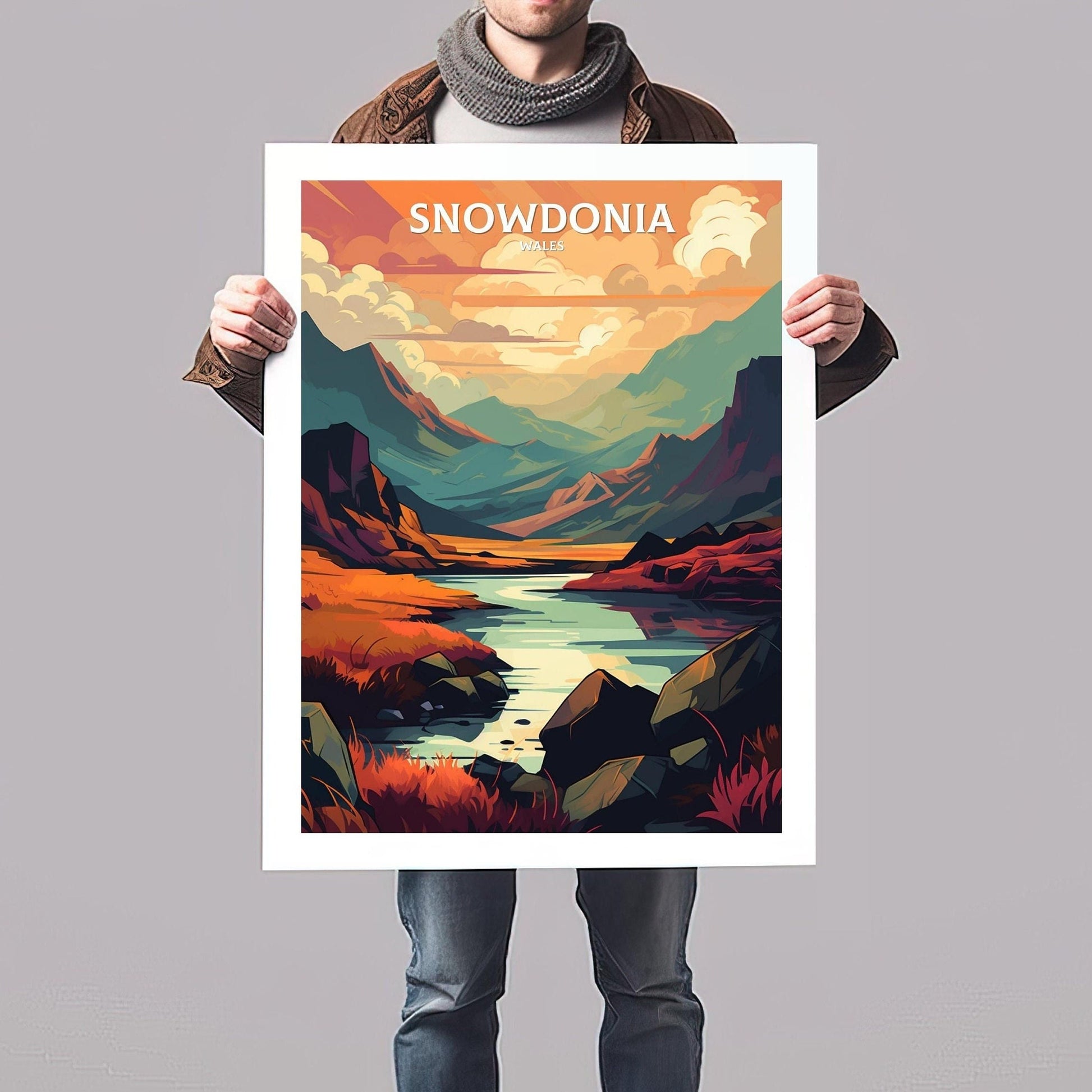 Capturez la beauté majestueuse de la région de Snowdonia au Pays de Galles avec cette magnifique affiche de voyage . Mettant en valeur des montagnes escarpées, des vallées luxuriantes et des lacs paisibles, cette œuvre galloise fait entrer les paysages sauvages et sereins du parc national de Snowdonia chez vous ou au bureau. Idéale pour les amoureux de voyages et les admirateurs de la beauté naturelle britannique, cette affiche apporte une touche intemporelle et inspirante à tout espace.