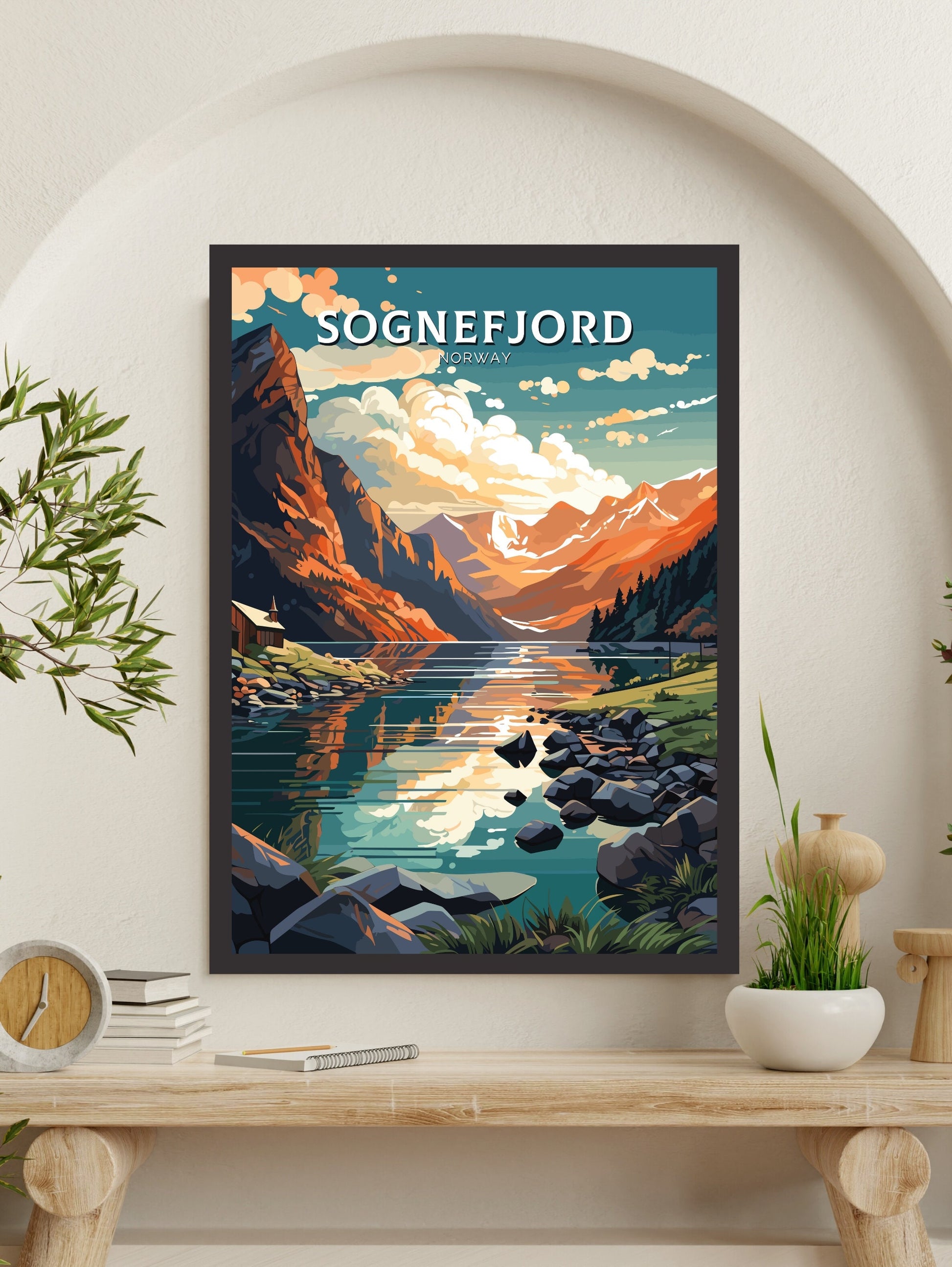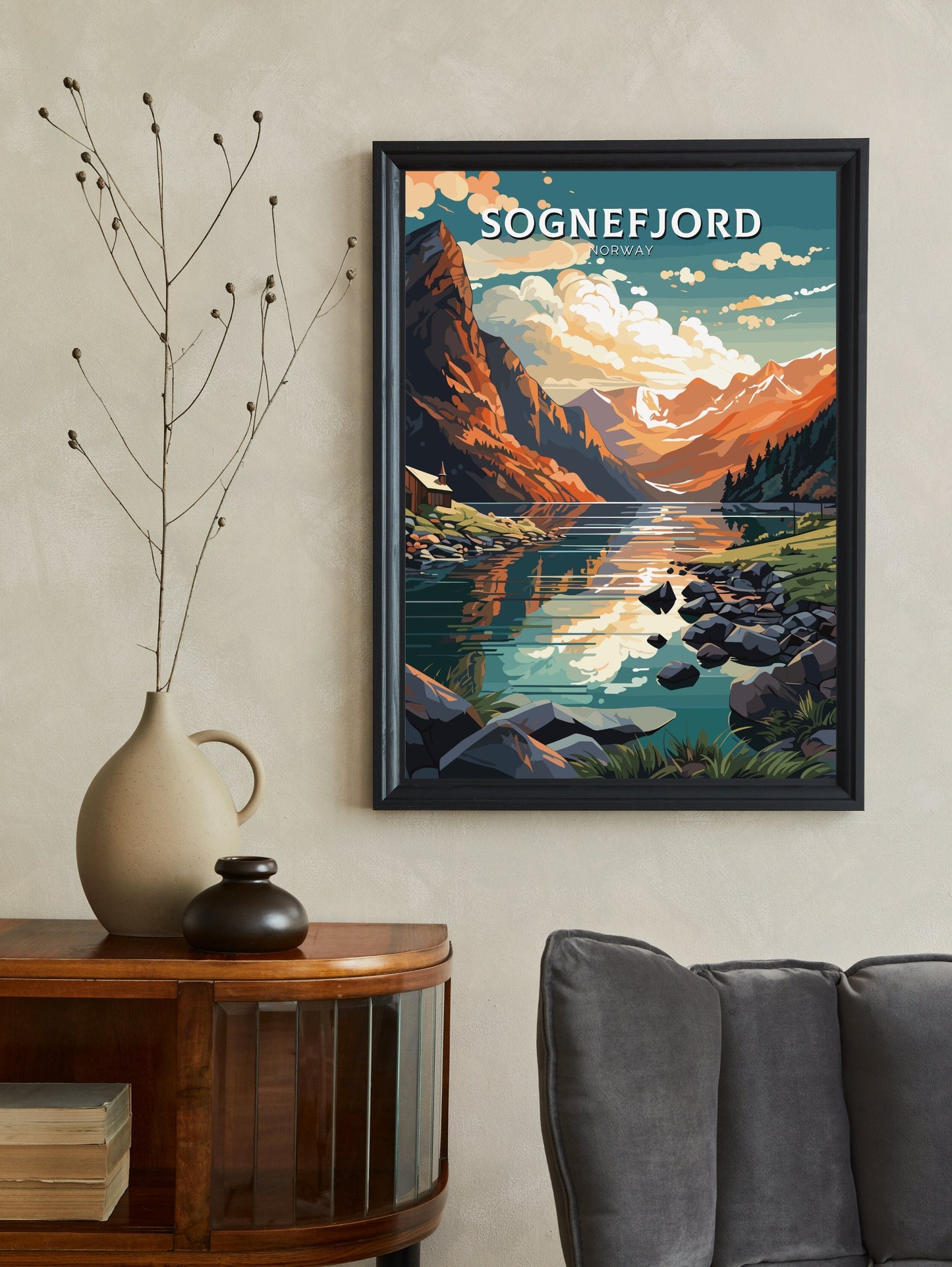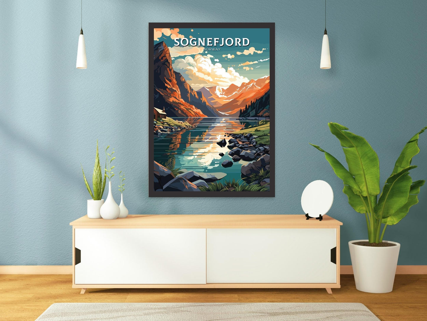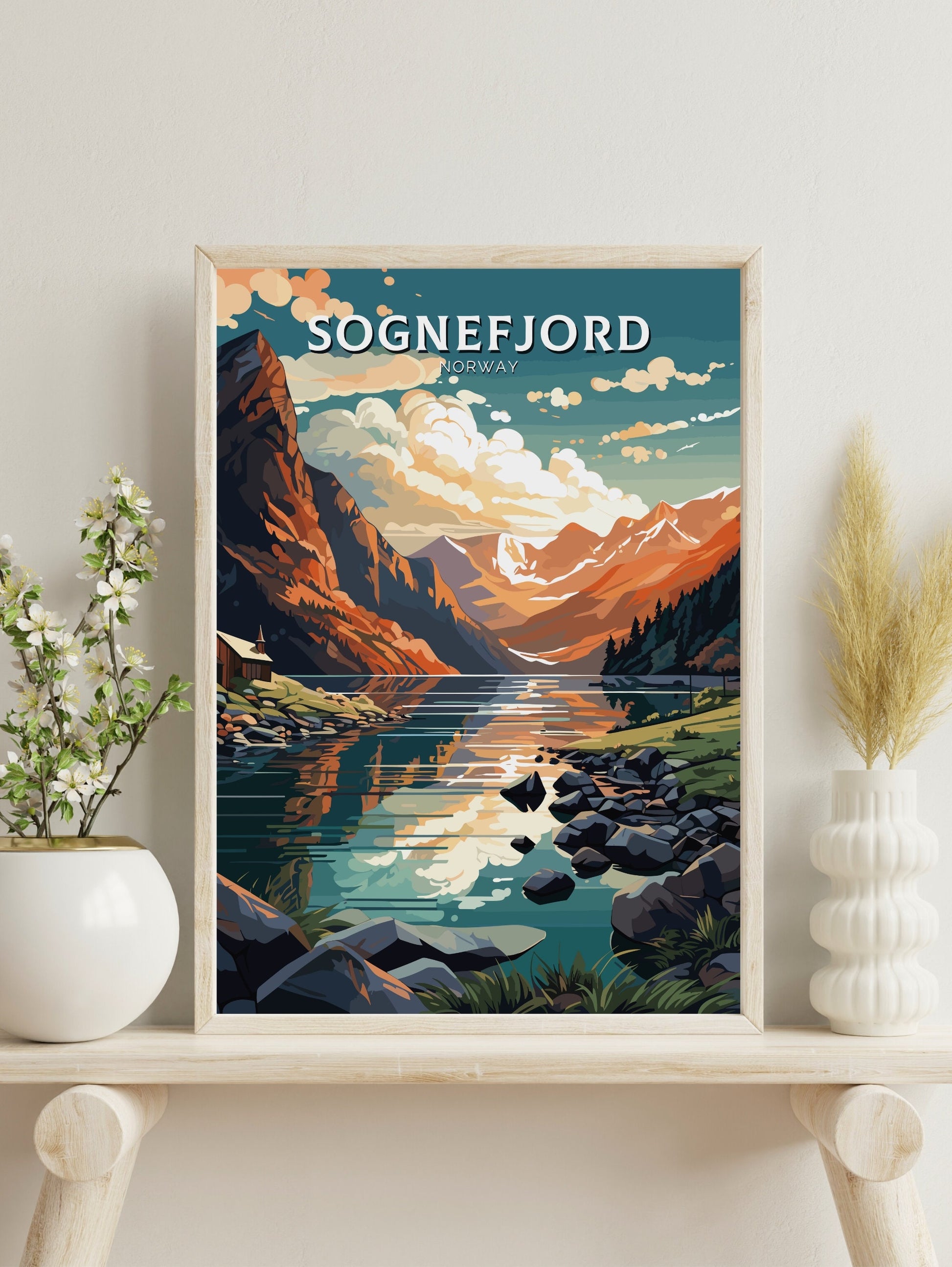 Capturez la beauté majestueuse du fjord le plus long et le plus profond de Norvège avec cette superbe affiche de voyage du Sognefjord . Avec ses falaises spectaculaires, ses eaux paisibles et ses charmants villages nordiques nichés le long du littoral, cette œuvre d'art norvégienne apporte la beauté brute et intacte du Sognefjord à votre maison ou à votre bureau. Idéale pour les amoureux de voyages et de paysages scandinaves, cette affiche apporte une touche sereine et grandiose à tout espace.