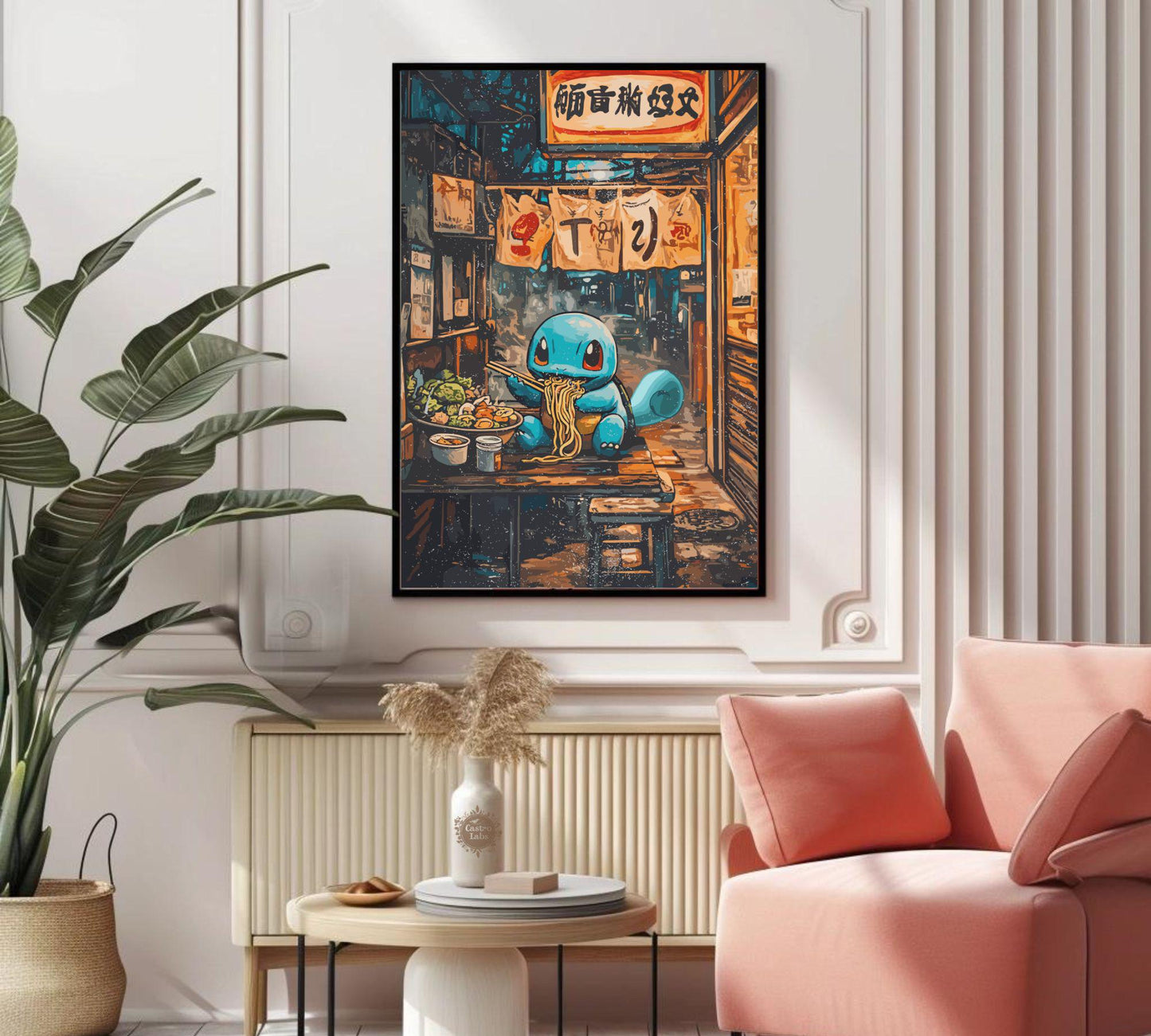 Imprimée sur un papier premium et résistant, avec des couleurs haute résolution, cette affiche Ramen Carapuce garantit des détails nets et une qualité durable. Son design inspiré de l'anime japonais en fait une pièce remarquable pour les collectionneurs, les fans d'art Pokémon original et les amateurs de décorations thématiques créatives. Associez-la à d'autres affiches de la série Ramen pour une décoration murale charmante et ludique.