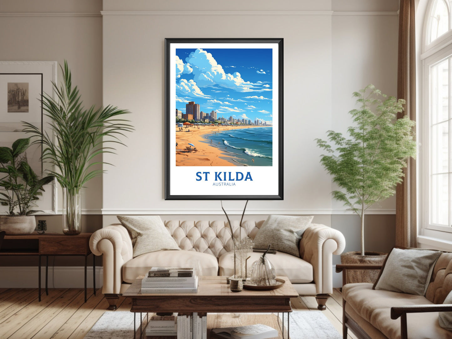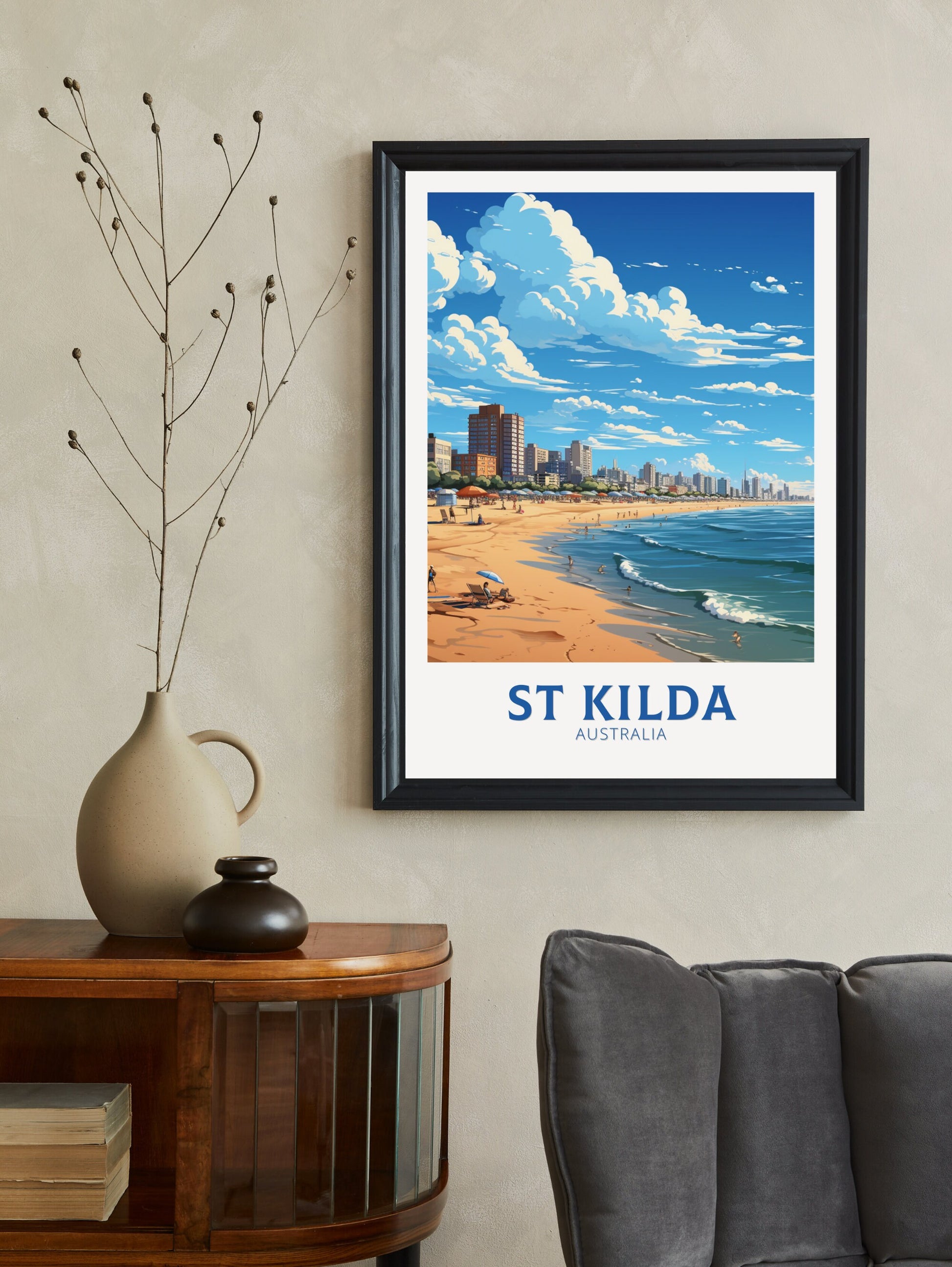 Célébrez l'esprit de St Kilda avec cet imprimé de voyage élégant.