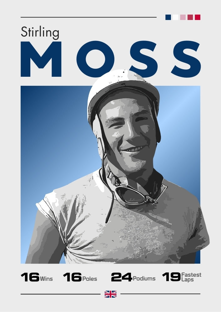 Affiche Stirling Moss F1 – Décoration murale de légende de la course automobile britannique