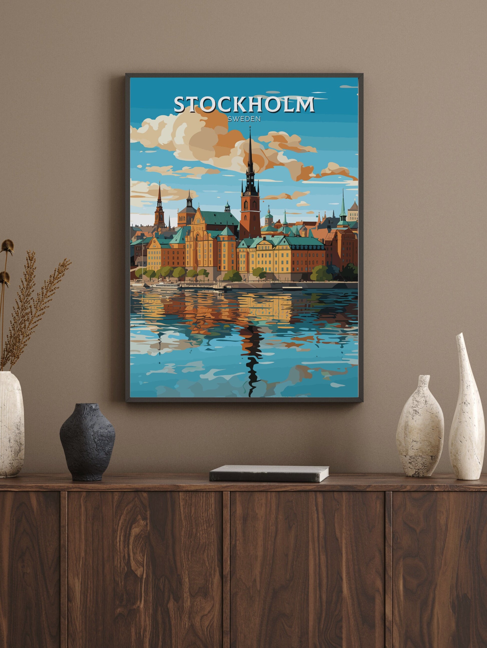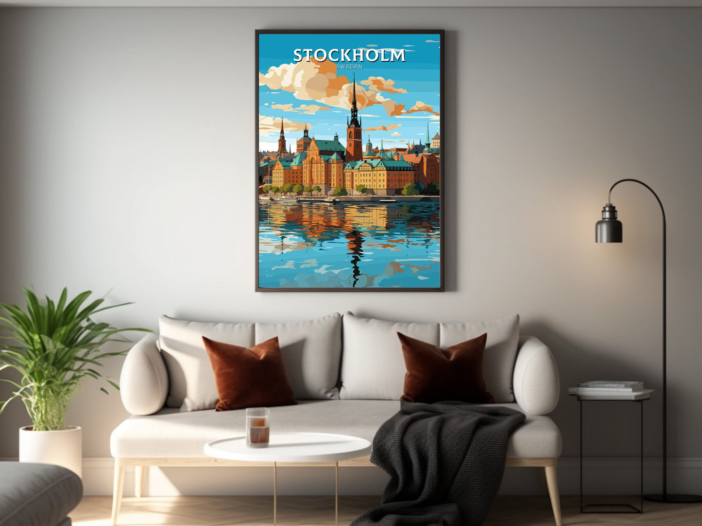 Imprimée sur un papier de haute qualité aux couleurs vives et aux détails précis, l' affiche de voyage Stockholm rend un hommage élégant à l'une des capitales les plus appréciées d'Europe. Que vous souhaitiez commémorer une visite, créer une galerie murale inspirée du voyage ou trouver un cadeau attentionné, cette affiche suédoise capture l'essence de Stockholm avec un charme intemporel.