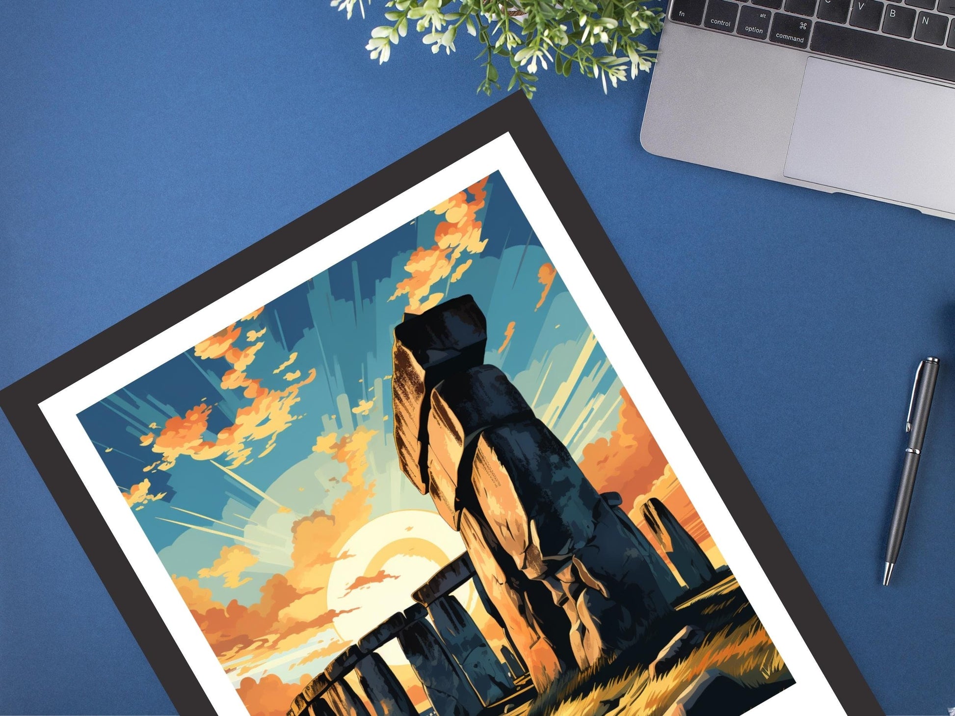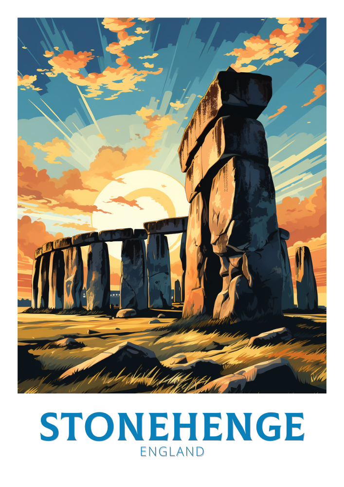 Imprimée sur un papier de haute qualité, avec des détails nets et des tons riches, l' affiche de voyage Stonehenge s'impose avec audace dans une galerie murale, un bureau ou un intérieur inspiré du voyage. Que vous ayez visité cette merveille antique ou rêvé de vous promener parmi ses pierres, cette œuvre apporte une touche du passé légendaire de l'Angleterre à votre quotidien.