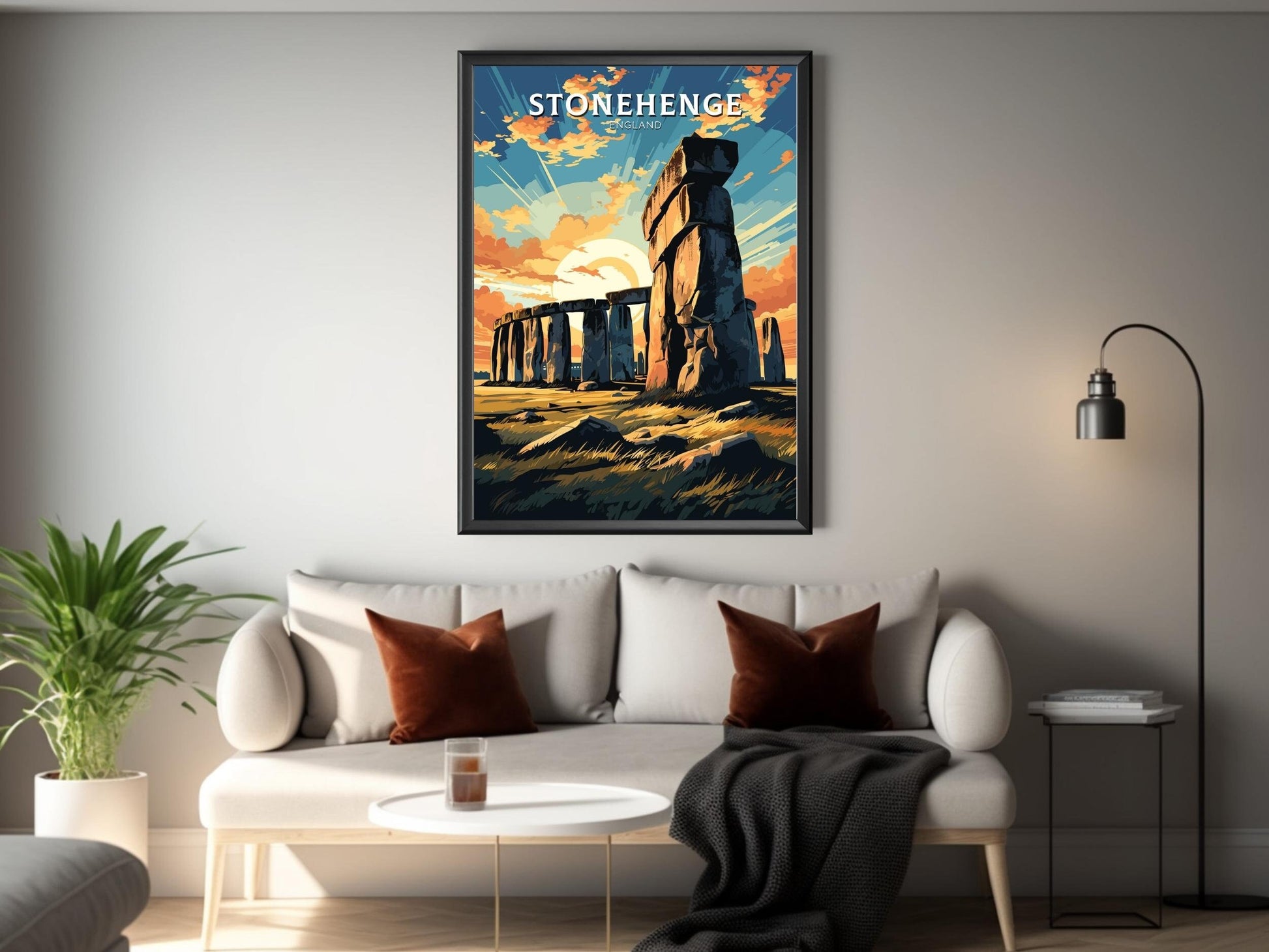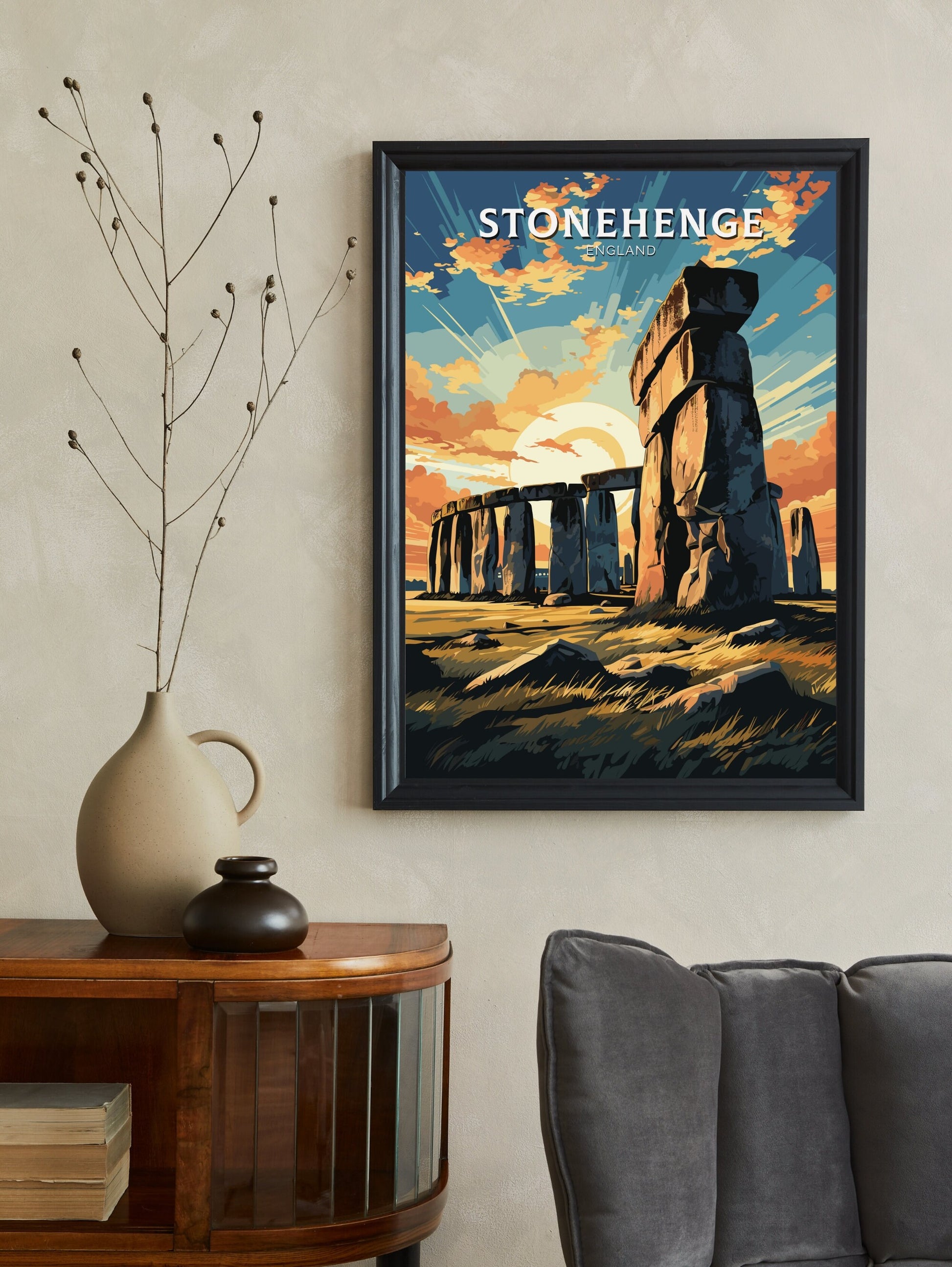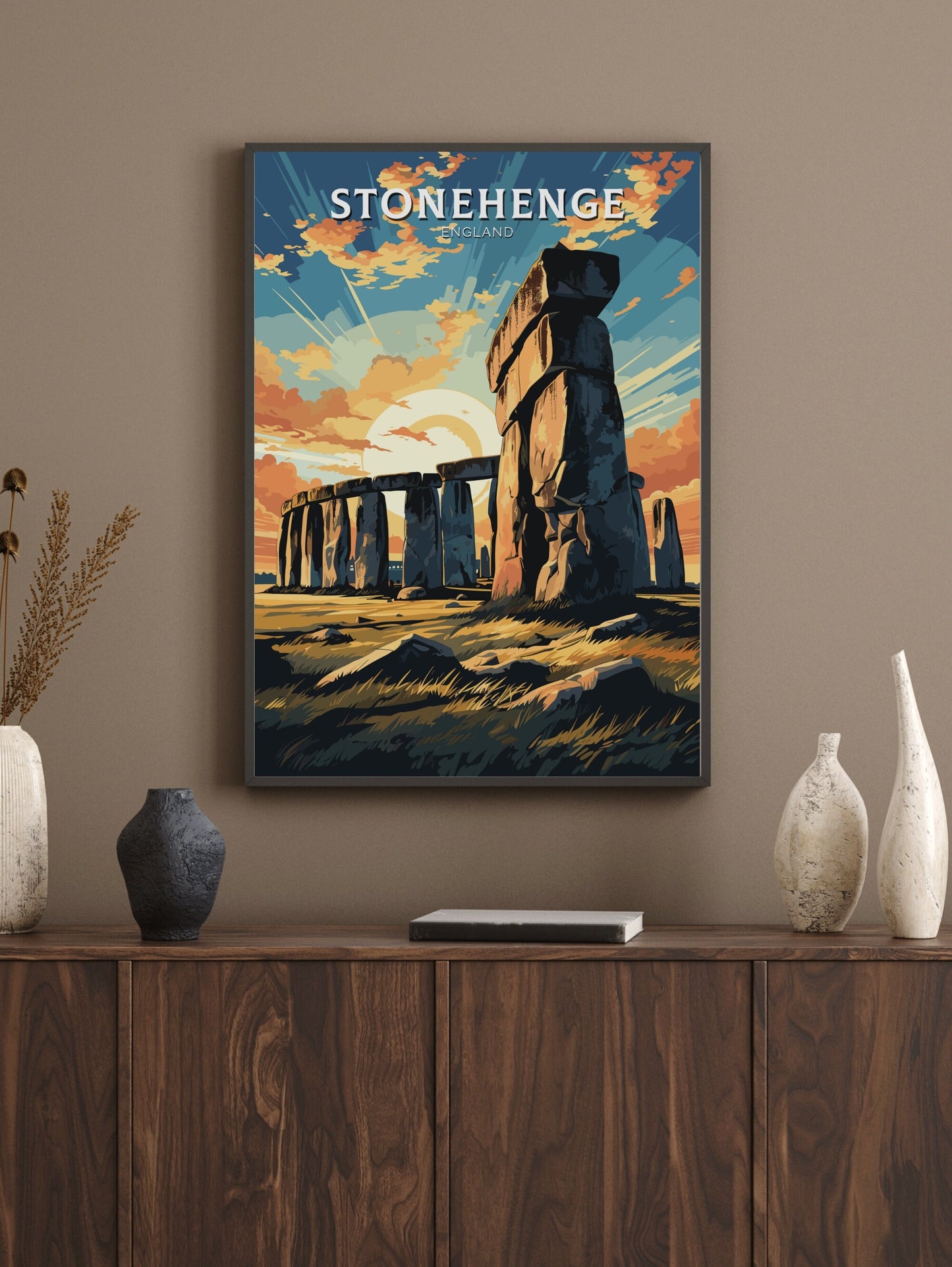 Imprimée sur un papier de qualité supérieure aux couleurs vives et aux détails raffinés, l' affiche de voyage Stonehenge apporte un peu du patrimoine préhistorique anglais chez vous. Que vous souhaitiez commémorer une visite, créer une galerie murale de souvenirs de voyage ou offrir un cadeau à un amateur de merveilles antiques, cette œuvre d'art est une pièce forte et pleine de sens.