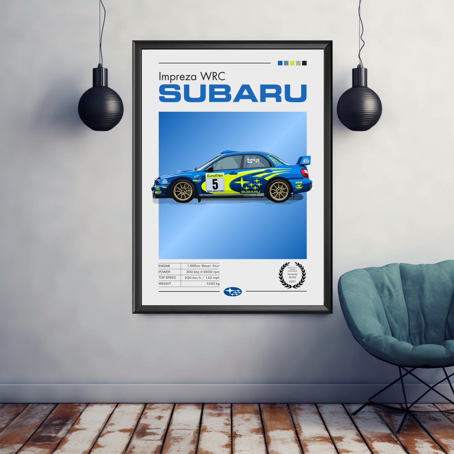 Célébrez l'époque emblématique des rallyes des années 1990 avec cette affiche Subaru Impreza WRC , mettant en vedette l'une des voitures de rallye les plus légendaires de l'histoire du sport automobile. Idéale pour les passionnés d'automobile, les fans de rallye et les collectionneurs, cette décoration murale met en scène la Subaru Impreza WRC , réputée pour son moteur turbocompressé, la précision de sa transmission intégrale et son héritage de championnats. Faites entrer l'excitation, la vitesse et l'héritage du Championnat du monde des rallyes des années 1990 chez vous, dans votre garage, votre bureau ou votre caverne d'Ali Baba grâce à cette affiche automobile saisissante.