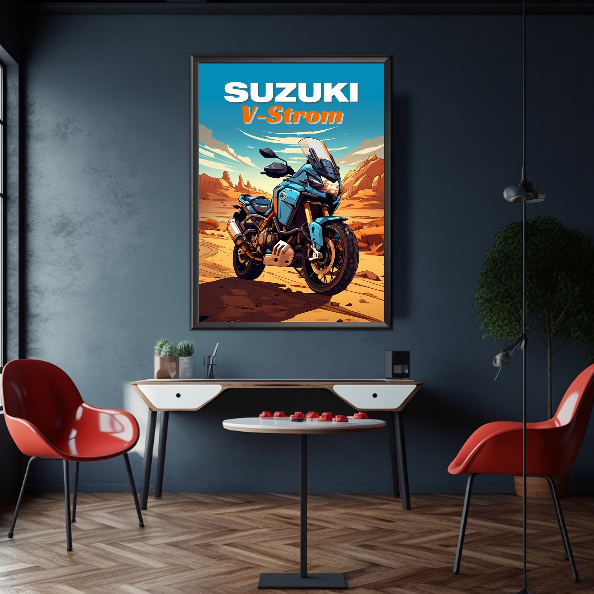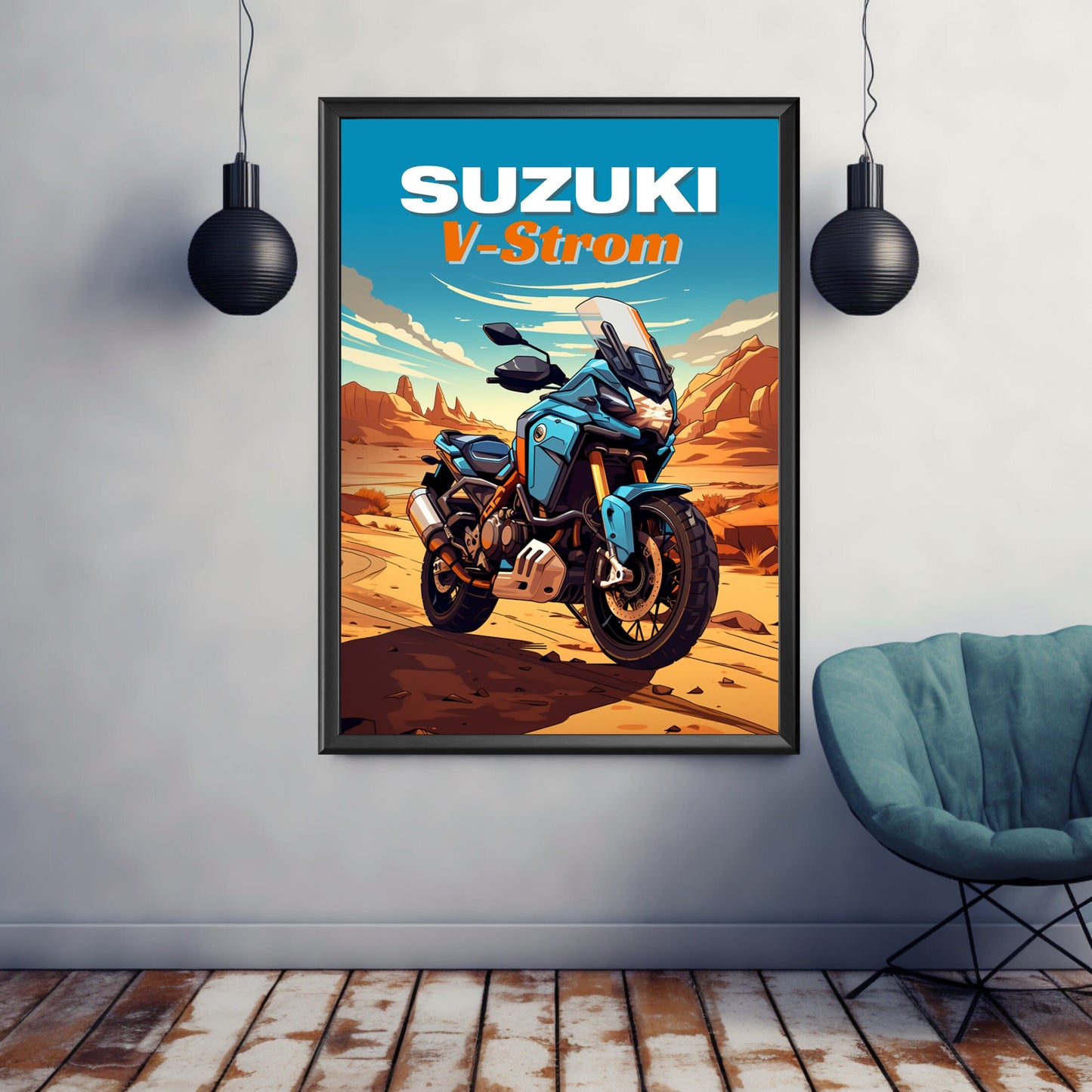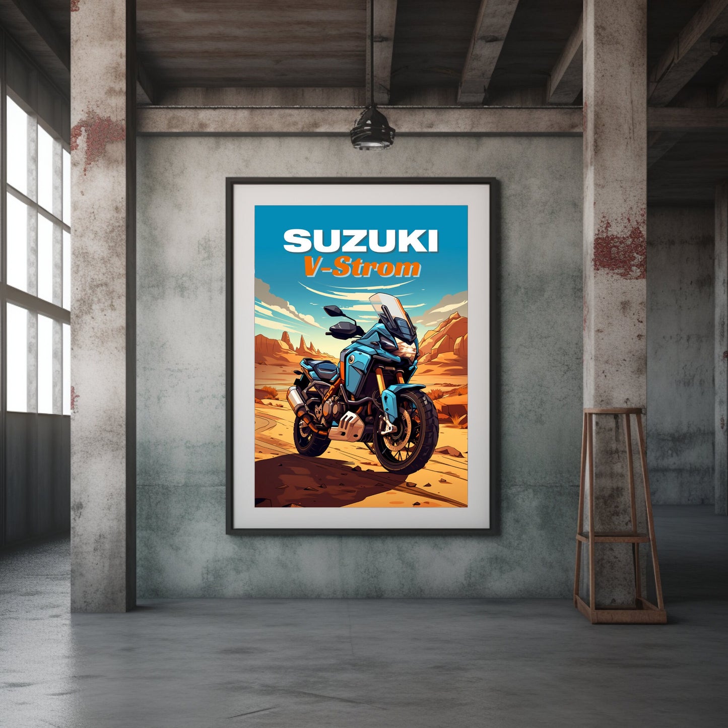 Affiche Suzuki V-Strom – Décoration murale pour moto de tourisme aventure