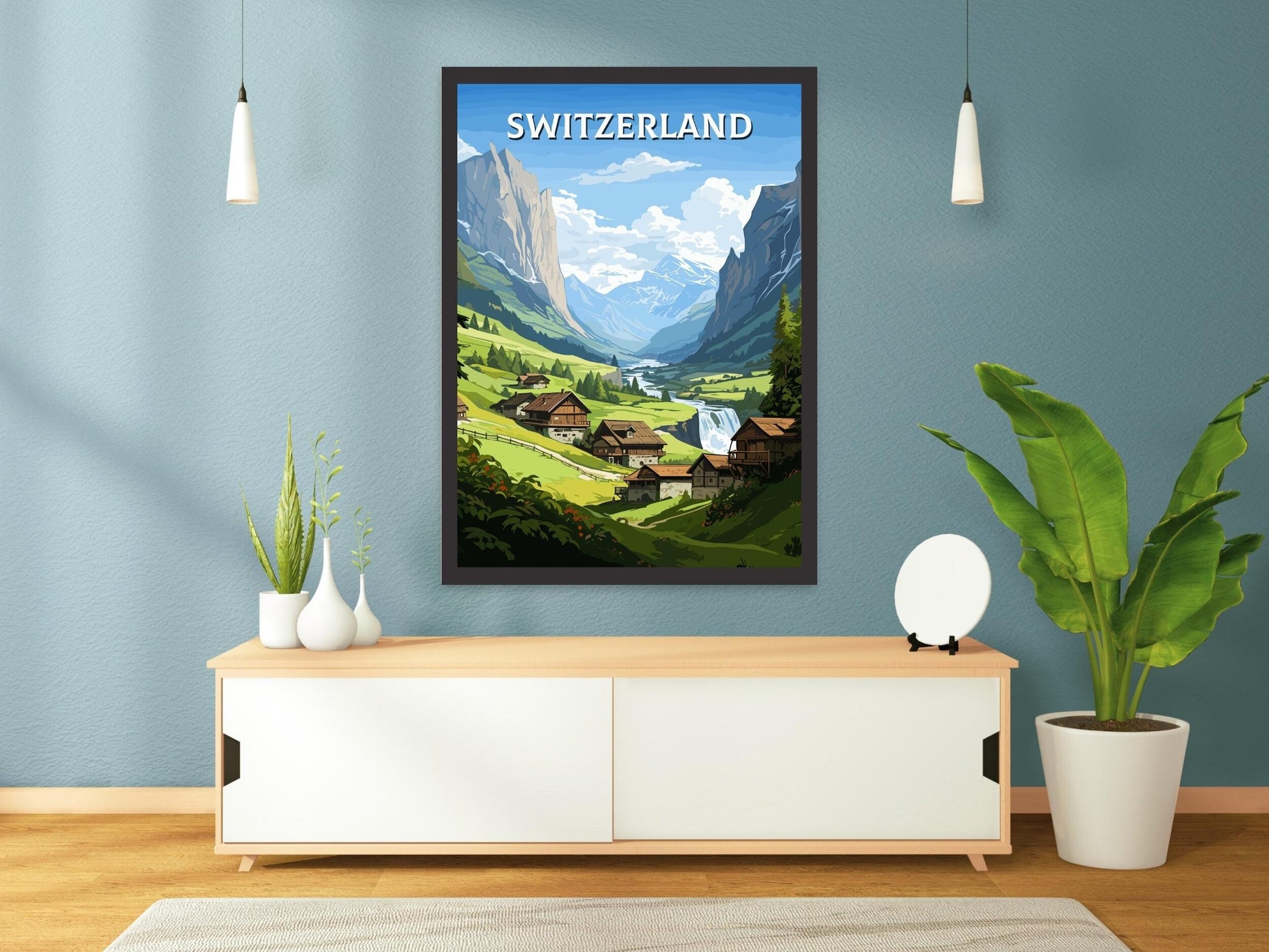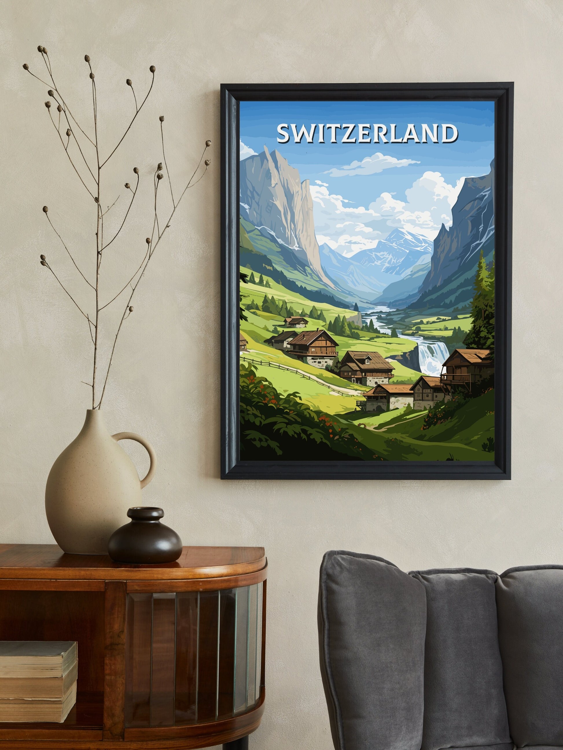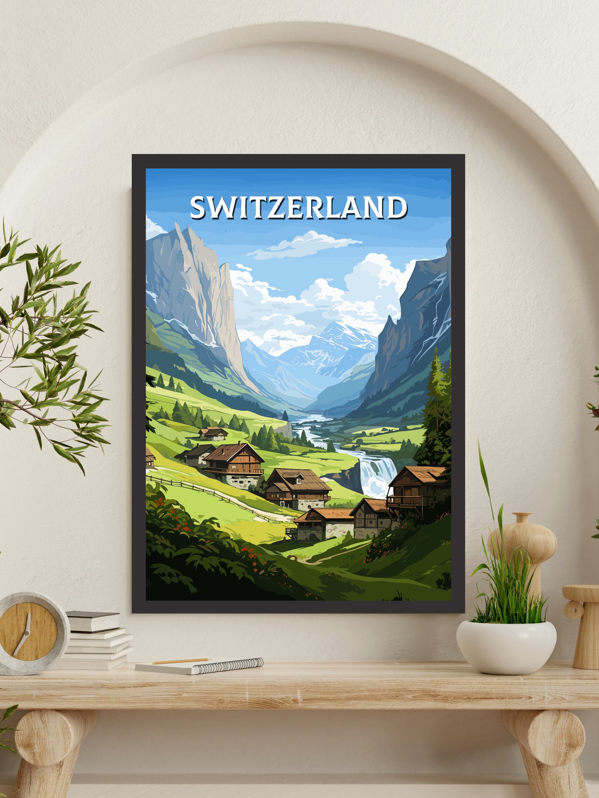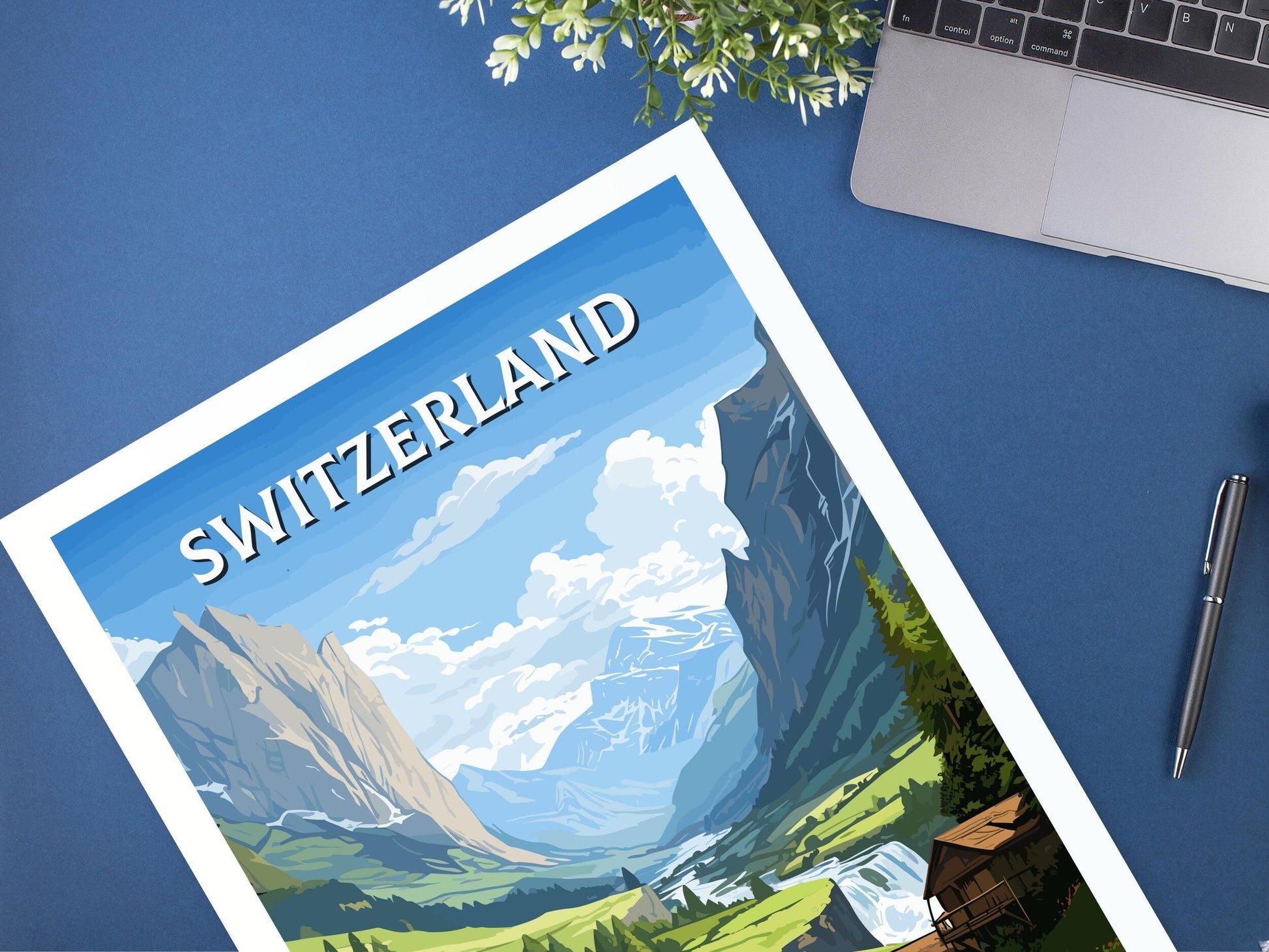 Imprimée sur du papier de qualité supérieure, avec des couleurs vives et des illustrations détaillées, cette affiche de voyage en Suisse apportera une touche d'élégance à votre maison, votre bureau ou votre mur de galeries sur le thème du voyage. Souvenir de vos aventures alpines ou élément de décoration élégant, cette affiche des Alpes suisses célèbre la beauté intemporelle de l'une des destinations les plus impressionnantes d'Europe.