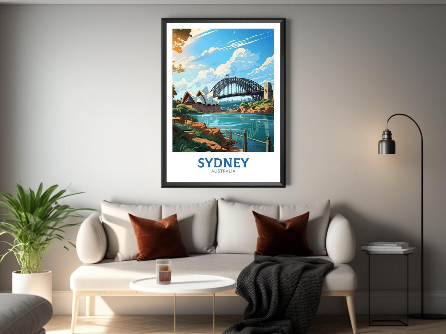 Apportez le charme de la ville la plus emblématique d'Australie à vos murs avec cette œuvre d'art de voyage vibrante de Sydney . Mettant en vedette des monuments tels que l'Opéra de Sydney, le Harbour Bridge et le front de mer scintillant, cette œuvre capture l'énergie, l'élégance et la beauté de Sydney dans un style artistique moderne.