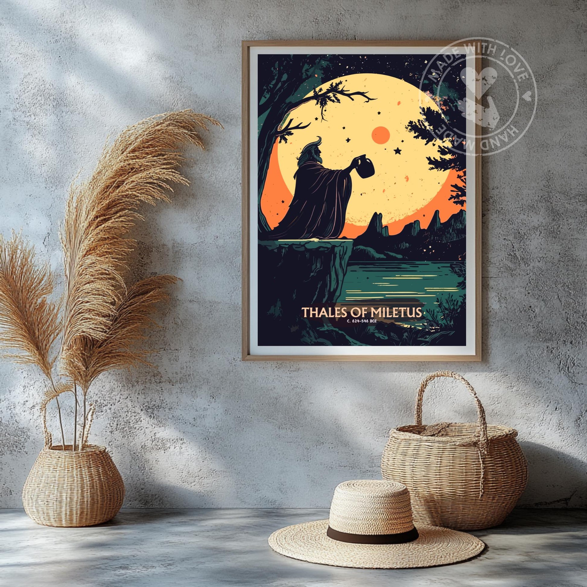 Idéale pour votre coin bureau, votre espace calme ou votre coin de curiosité, cette affiche Thales vibre de tons naturels et d'une douce atmosphère. Plus qu'un simple objet décoratif, c'est une graine de réflexion. Accrochez cette œuvre murale pour insuffler une nouvelle vision à votre espace. Commandez dès maintenant et découvrez la sagesse de Thales !