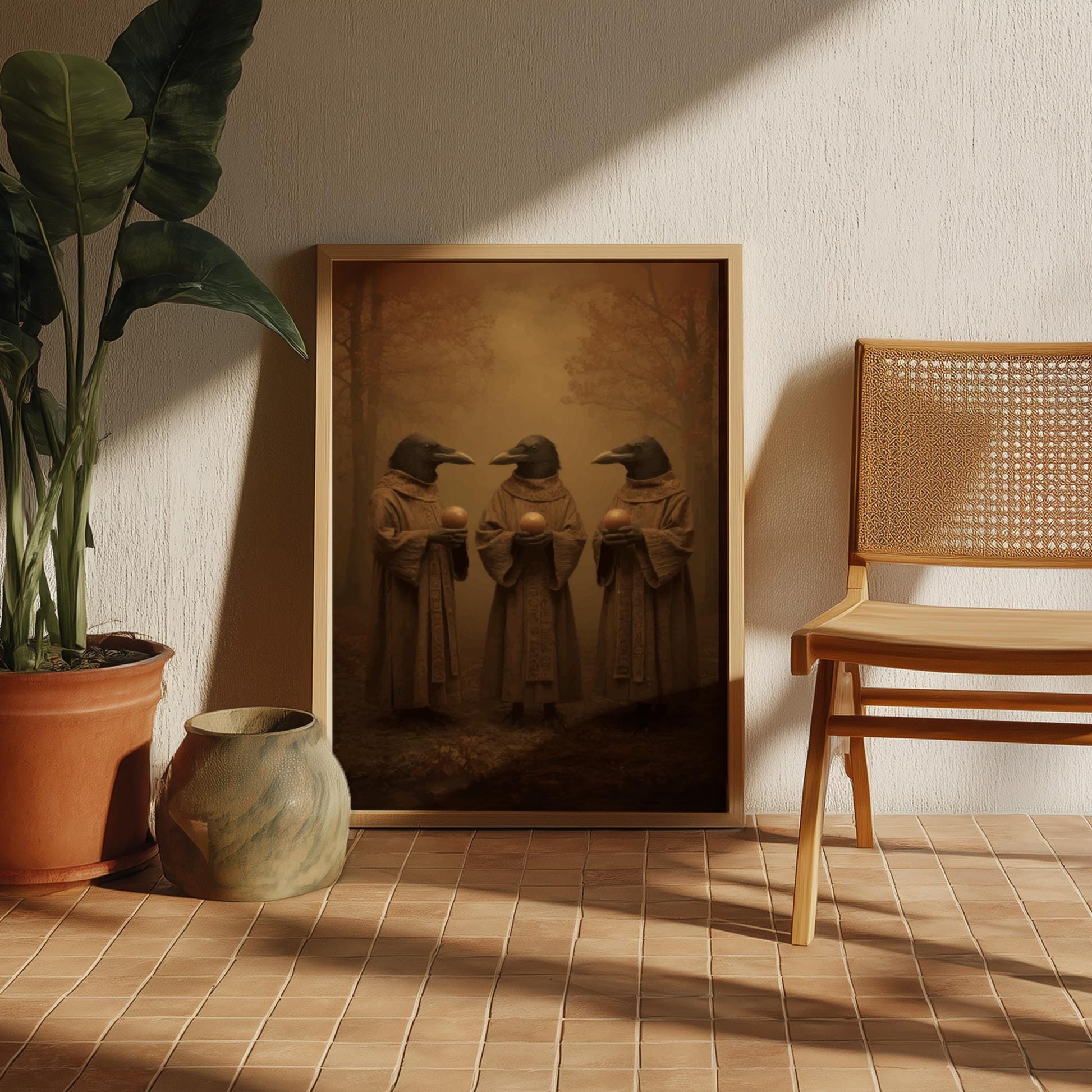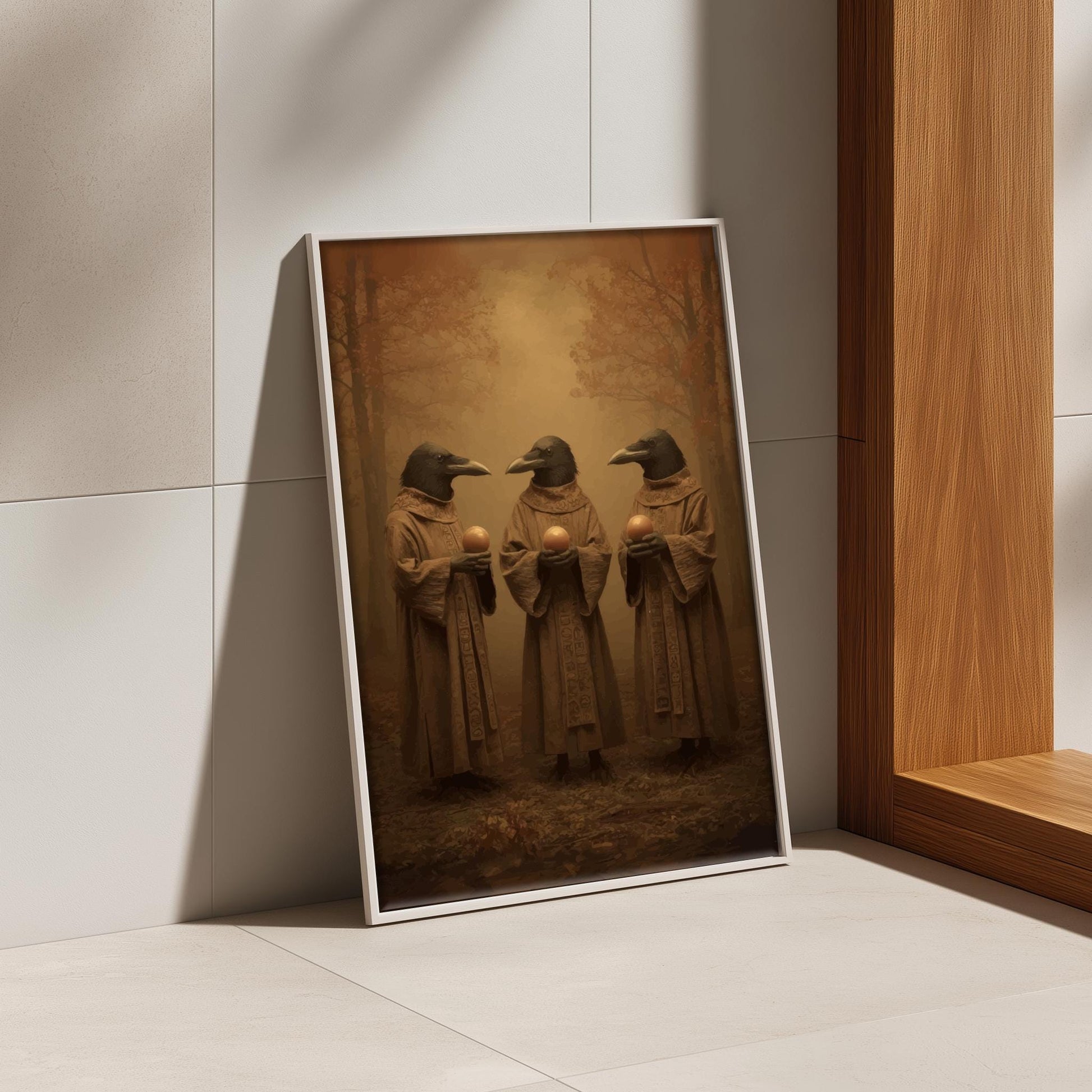 Entrez dans un monde de mystère et de symbolisme avec l'affiche « Les Prophètes Corbeaux Mystiques » . Cette saisissante affiche gothique occulte de forêt met en scène des corbeaux anthropomorphes incarnant la sagesse, la prophétie et le mysticisme. Parfaite pour les amateurs de surréalisme sombre, d'art mural occulte et de décoration animalière gothique, cette œuvre capture la beauté envoûtante de la forêt à travers le regard de ses énigmatiques prophètes.