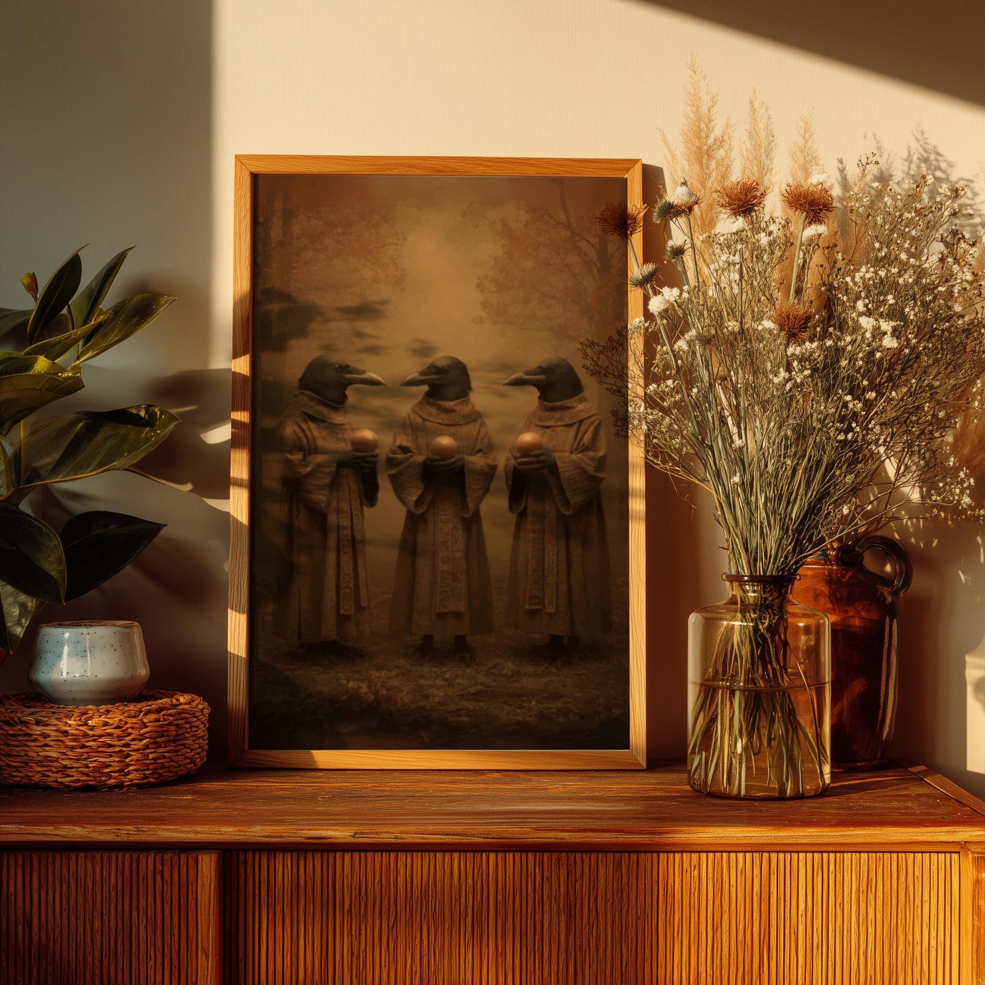 Idéal pour les collectionneurs d' art mural surréaliste et sombre , les amateurs de symbolisme mystique du corbeau et les passionnés de décoration occulte , « The Crow Seers » est plus qu'une simple affiche : c'est une vision de prophétie et d'ombre. Pièce maîtresse audacieuse pour les intérieurs gothiques, cette œuvre apporte une touche de mystère, d'élégance et de surnaturel à toute collection.