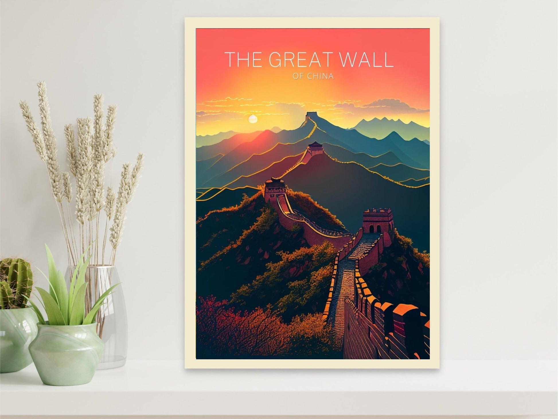 Cette œuvre mêle des verts terreux et des bruns chaleureux à l'essence majestueuse de la Grande Muraille, évoquant le charme d'un voyage vintage avec une touche de modernité. Imprimée sur un papier de qualité supérieure, elle offre un éclat durable et une finition lisse, ce qui en fait un cadeau idéal pour les aventuriers ou les collectionneurs d'art. Cette affiche de la Grande Muraille apporte une touche de magie historique à n'importe quel mur.