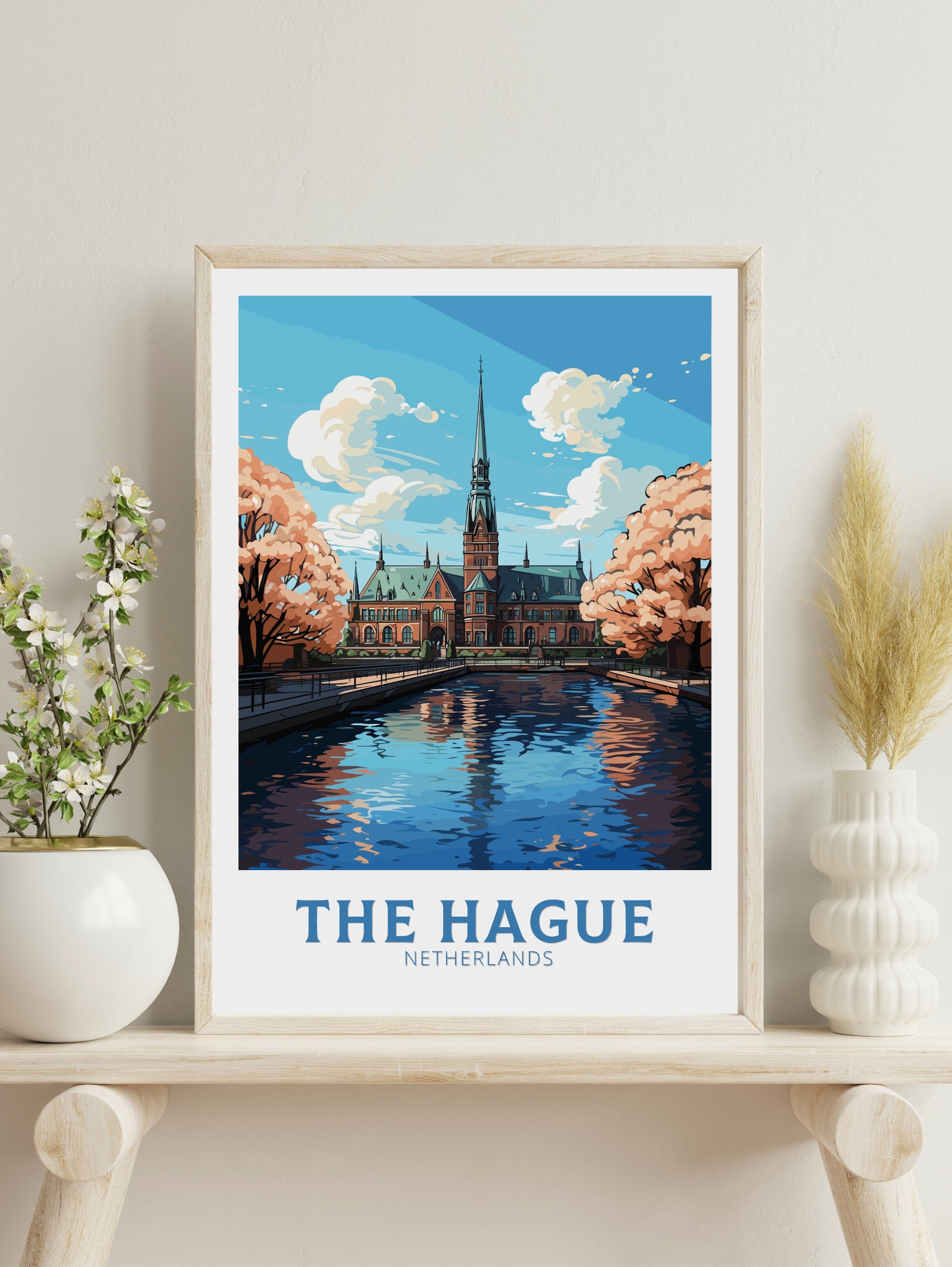 Imprimée sur un papier de qualité supérieure, aux détails nets et aux couleurs éclatantes, l' affiche de voyage de La Haye est une pièce élégante et intemporelle pour votre mur de galerie ou votre décoration intérieure. Souvenir de vos voyages ou magnifique ajout à votre collection d'art, cette affiche incarne l'esprit de La Haye directement sur vos murs.