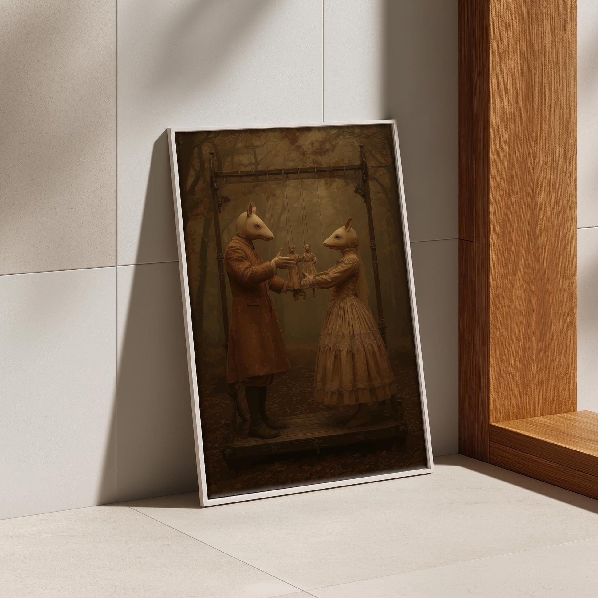 Imprimée sur des matériaux de qualité supérieure aux tons profonds et saisissants, l'affiche « Les Marionnettistes Belettes » apporte une touche d'audace et de mystère à n'importe quelle pièce. Son mélange de figures anthropomorphes de belettes , de maîtrise des marionnettes et d'ambiance gothique boisée en fait une œuvre d' art murale surréaliste et sombre envoûtante. Qu'elle soit exposée dans un bureau, un studio de création ou une maison d'inspiration gothique, elle est à la fois artistique et narrative.