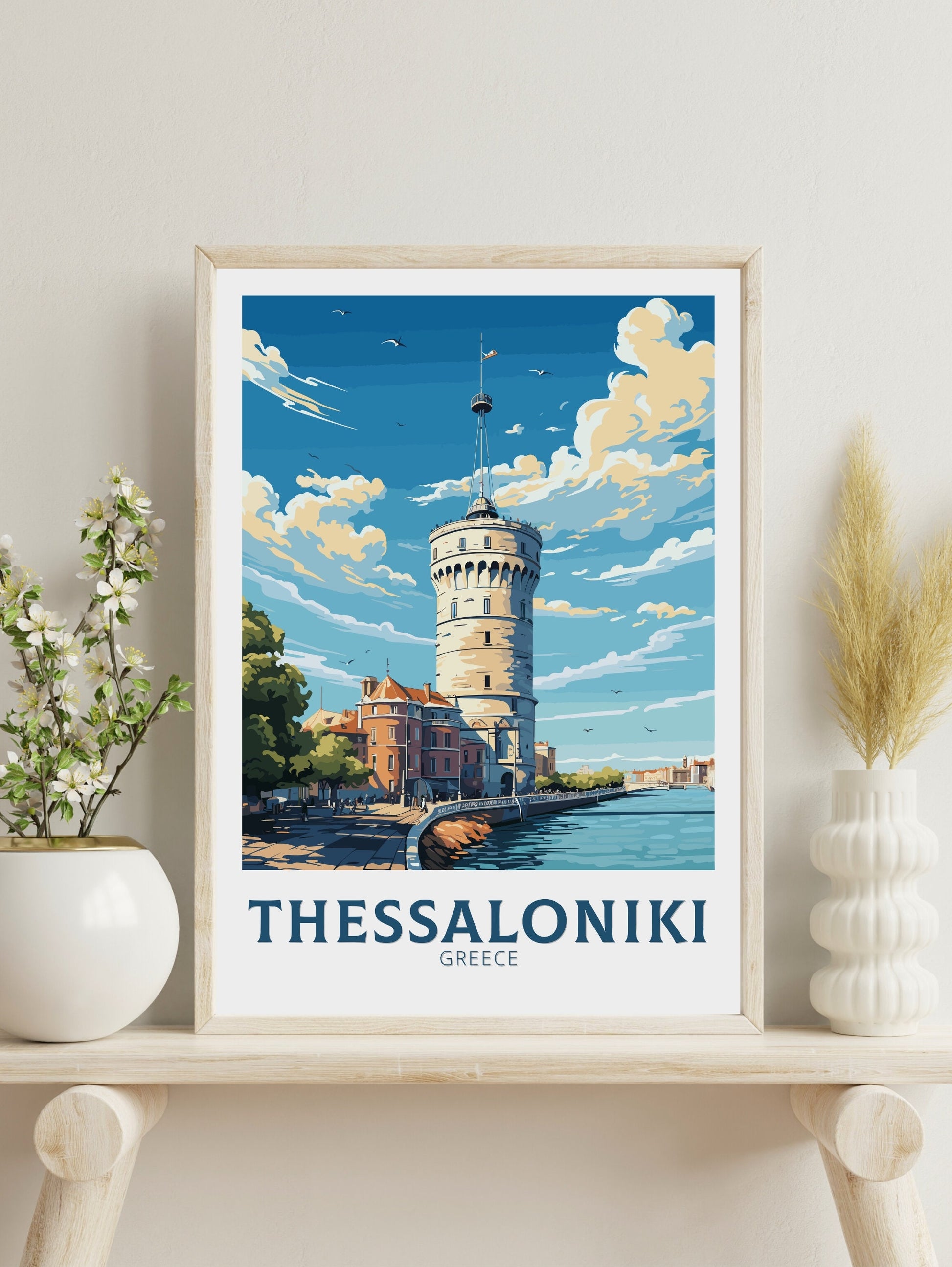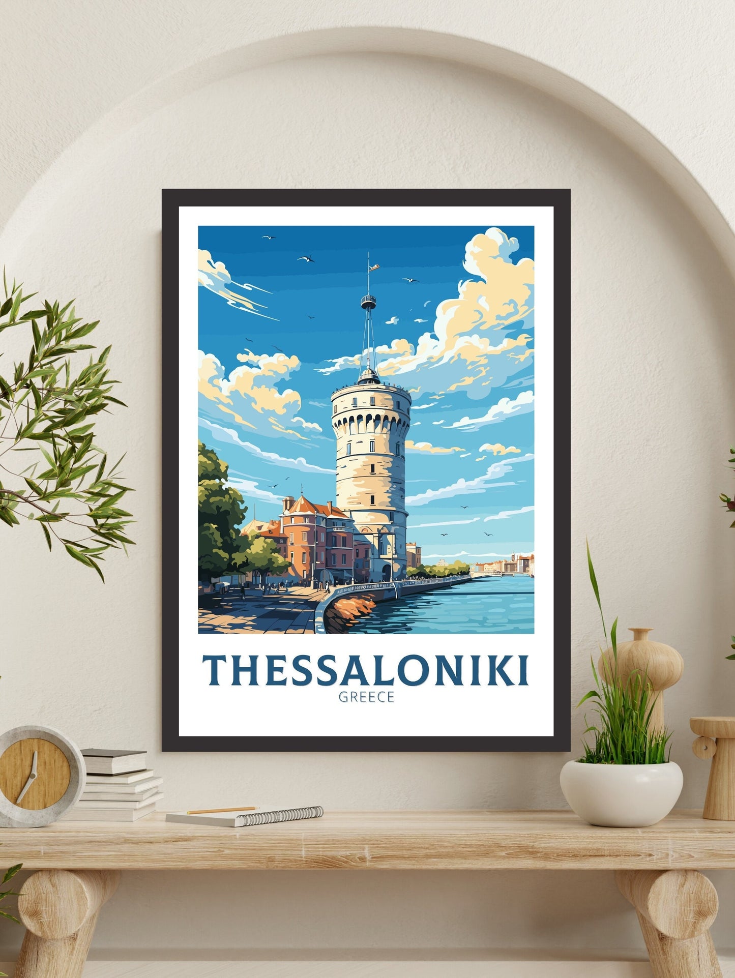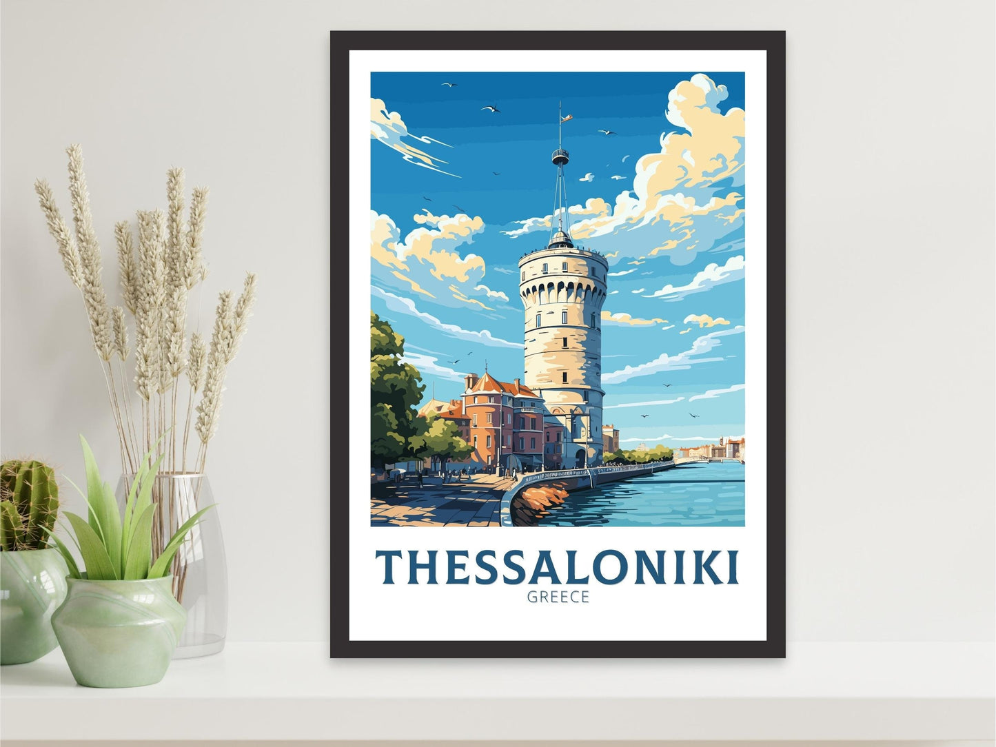 Imprimée sur un papier de haute qualité aux couleurs vives et aux détails précis, l' affiche de voyage de Thessalonique embellira votre maison, votre bureau ou votre galerie murale. Que vous commémoriez vos voyages ou rêviez d'explorer ce joyau du nord de la Grèce, cette œuvre d'art apportera beauté intemporelle et richesse culturelle à votre espace.