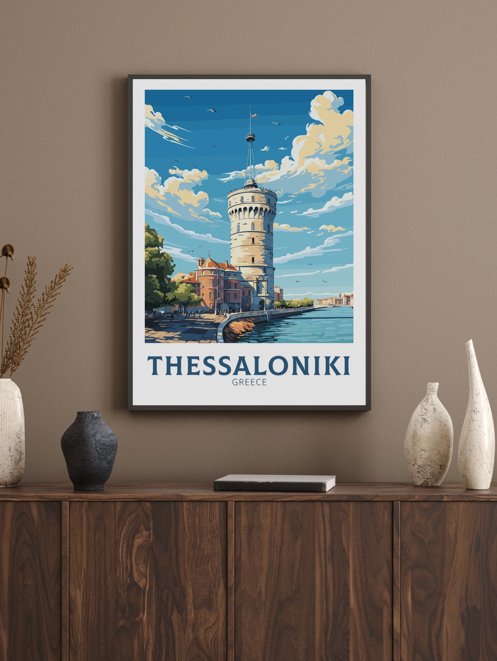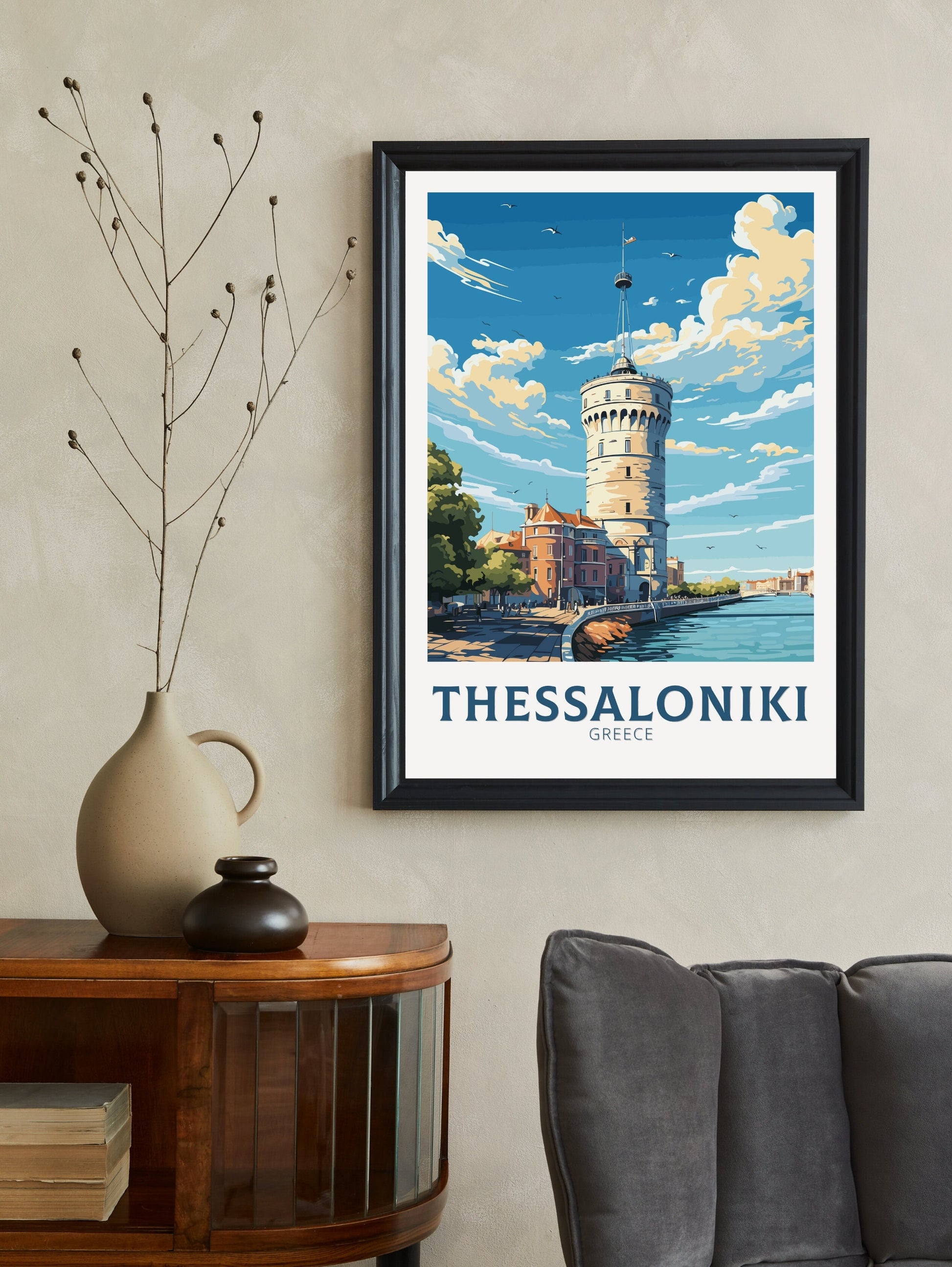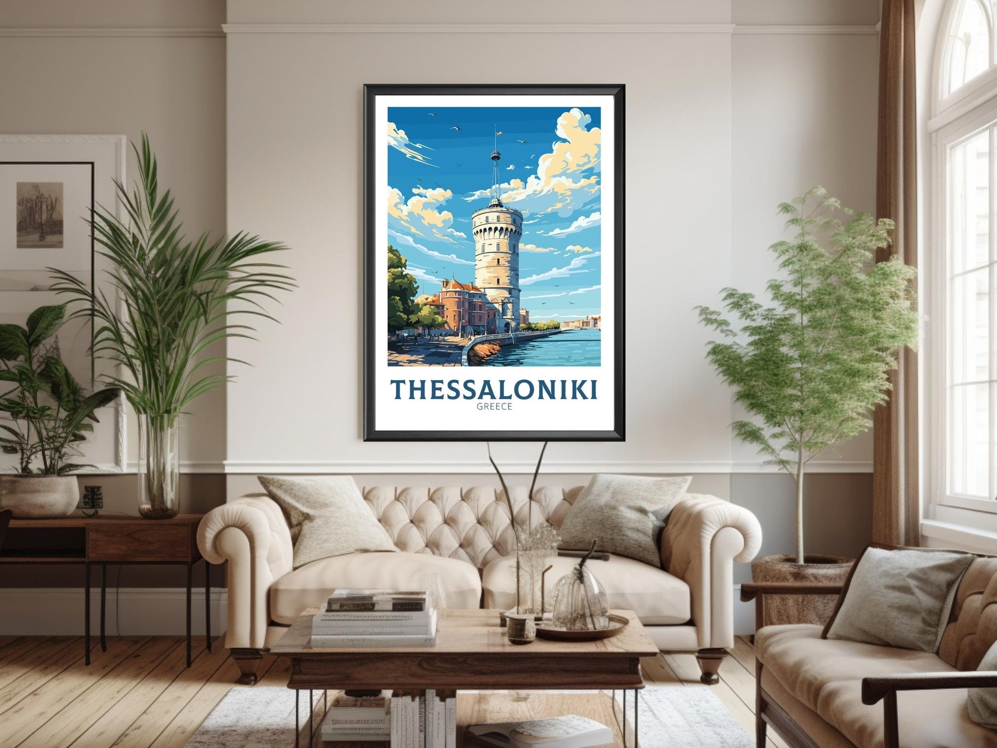 Imprimée sur un papier de haute qualité aux couleurs vives et aux détails précis, l' affiche de voyage de Thessalonique embellira votre maison, votre bureau ou votre galerie murale. Que vous commémoriez vos voyages ou rêviez d'explorer ce joyau du nord de la Grèce, cette œuvre d'art apportera beauté intemporelle et richesse culturelle à votre espace.