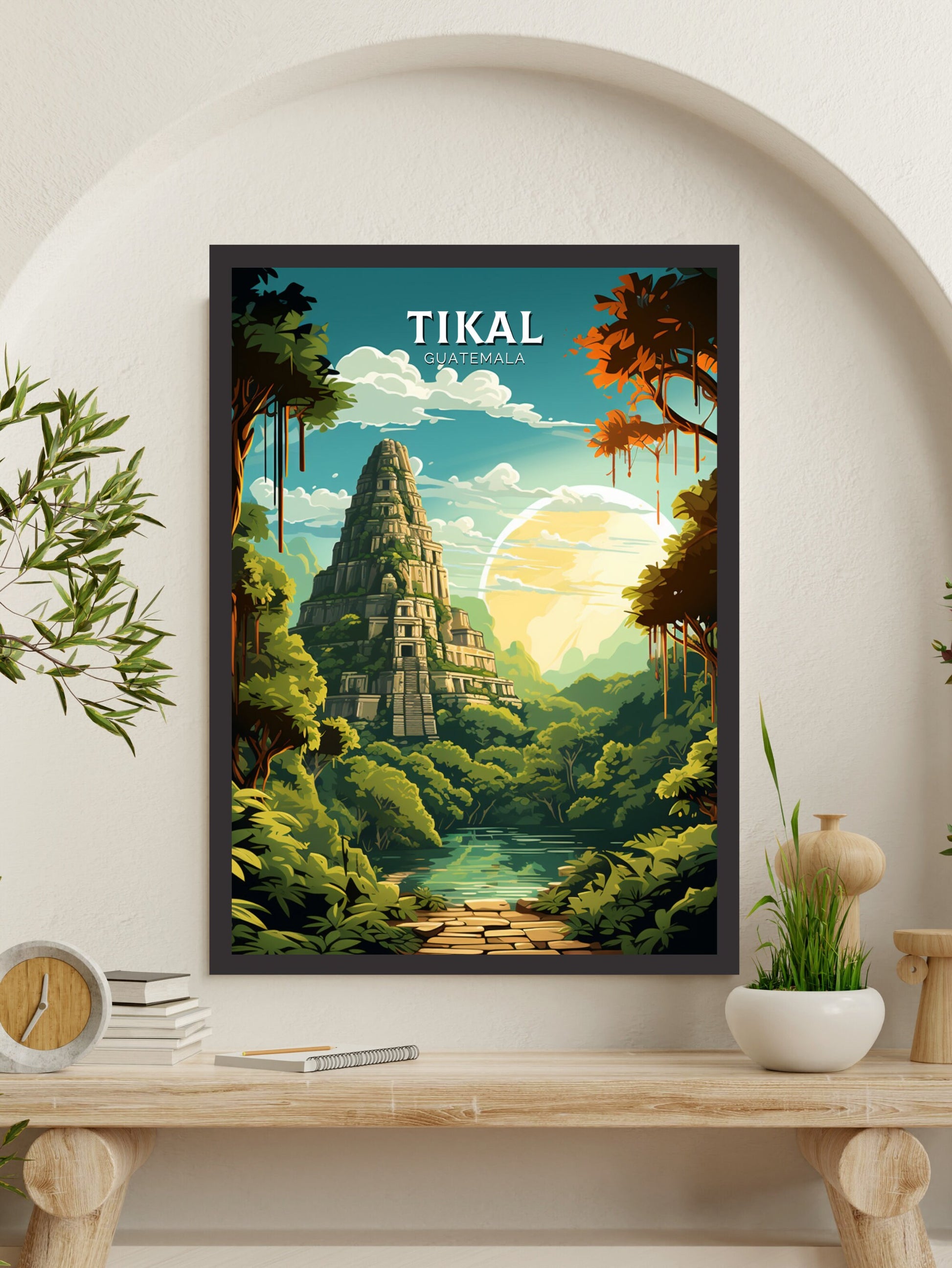 Affiche de voyage de Tikal - Art rétro du Guatemala