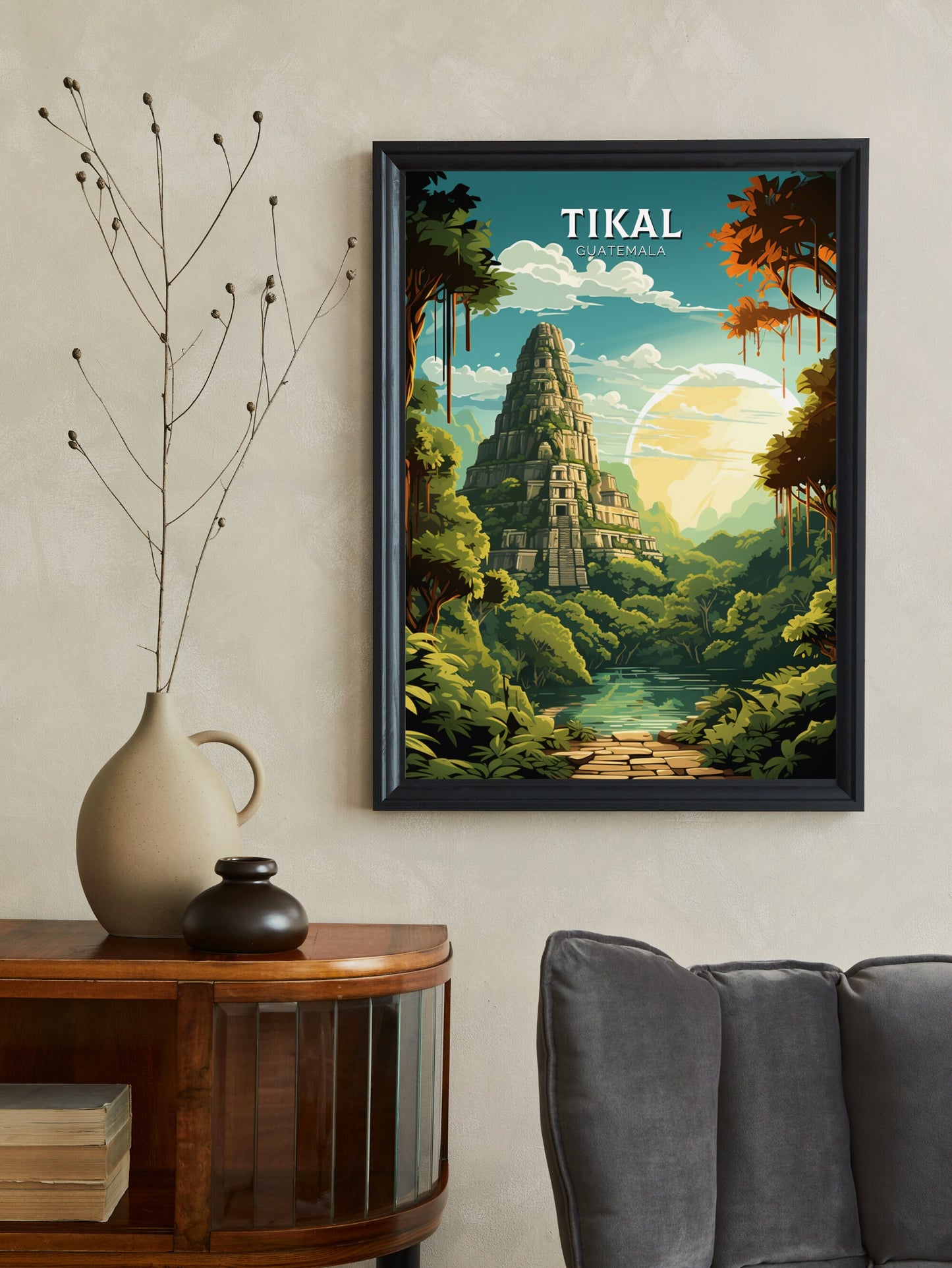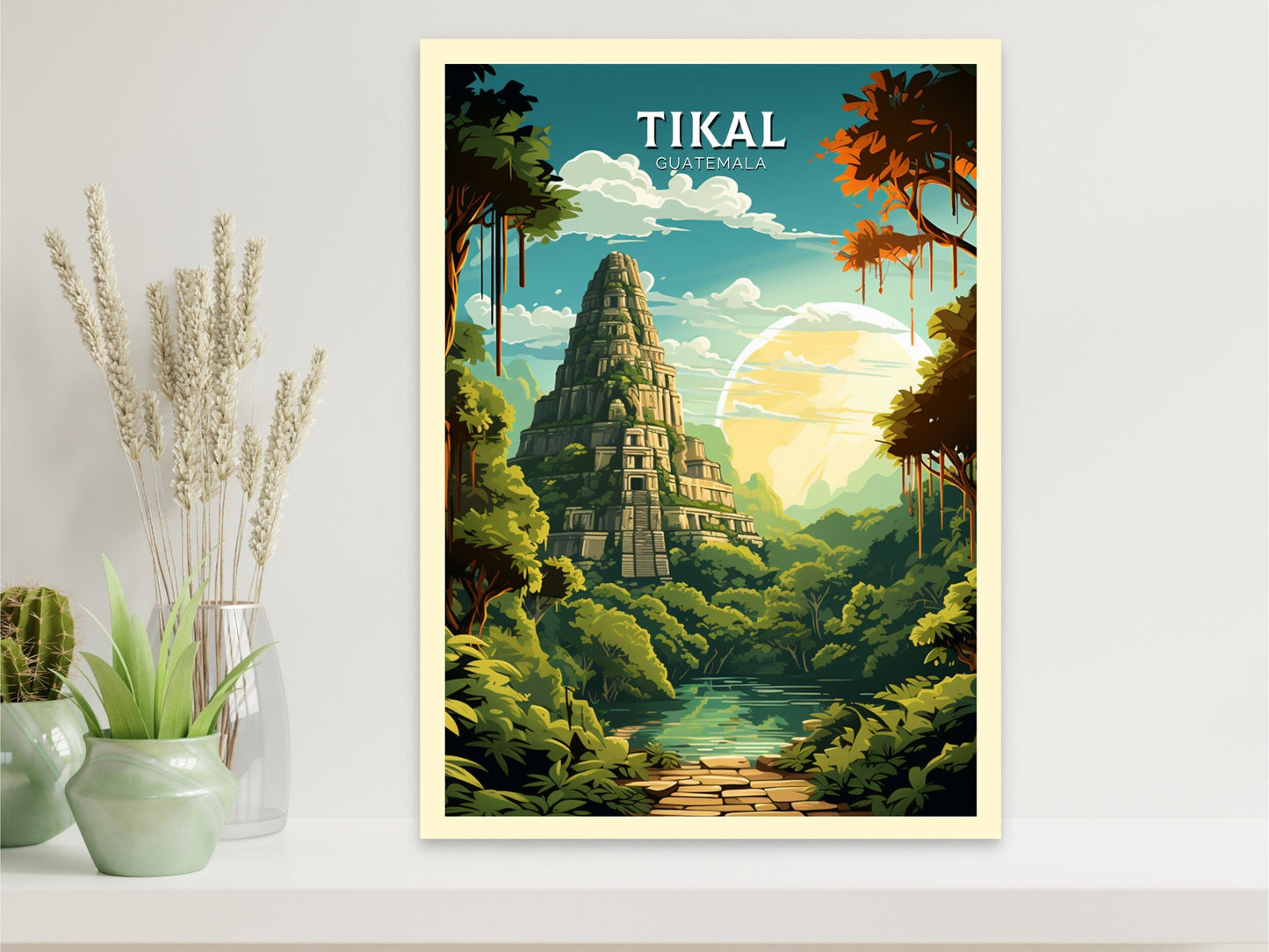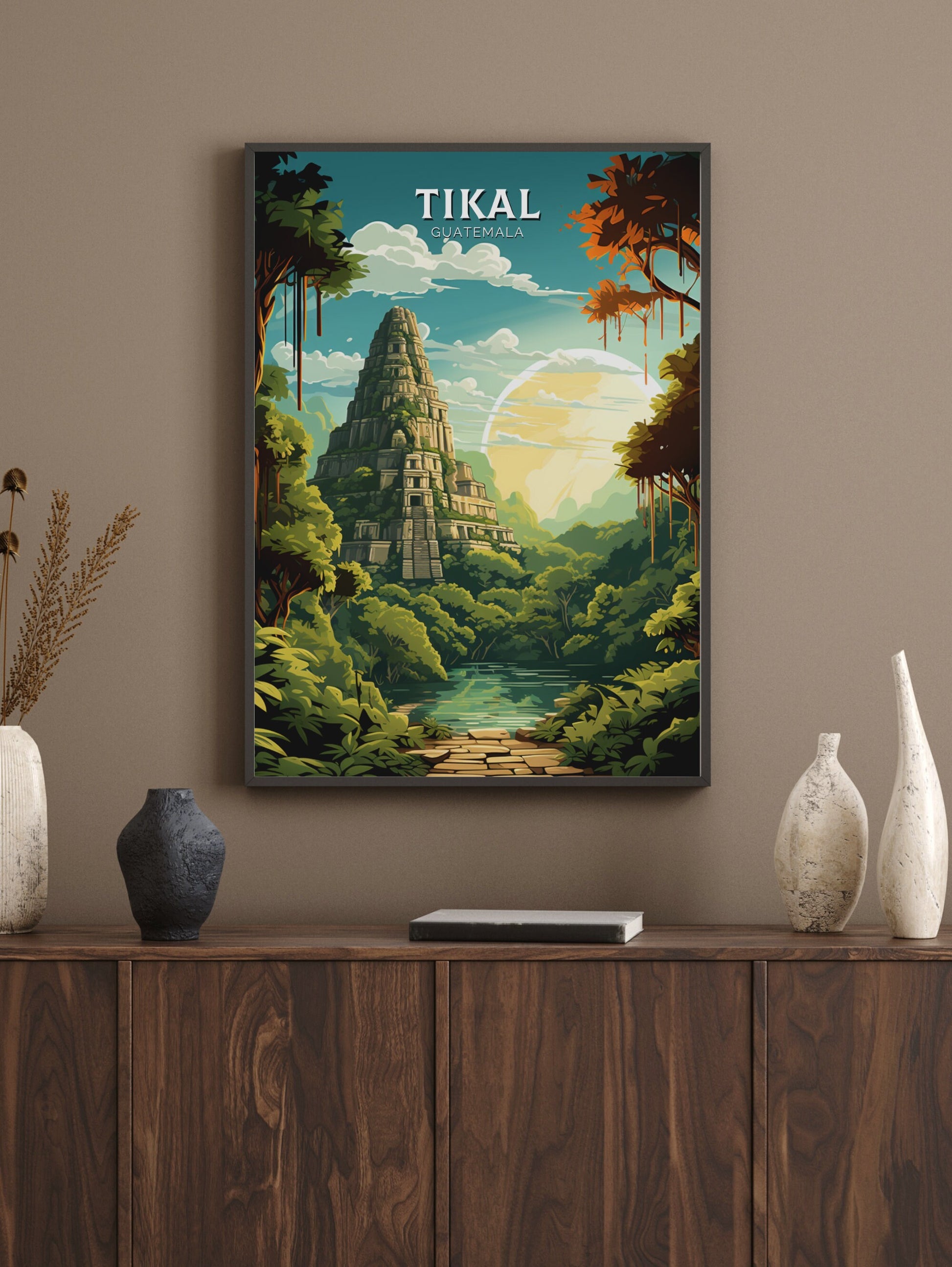 Notre affiche de voyage Tikal – Art rétro du Guatemala plonge votre intérieur dans le mystère ancestral de Tikal, au Guatemala, grâce à son design nostalgique. Parfaite pour les passionnés de voyages et les amateurs d'art rétro, elle capture les imposantes pyramides mayas et la jungle luxuriante dans un style intemporel. Que vous ayez exploré ses ruines ou rêvé de son passé, cette affiche rétro de Tikal sera un ajout magnifique à votre décoration.