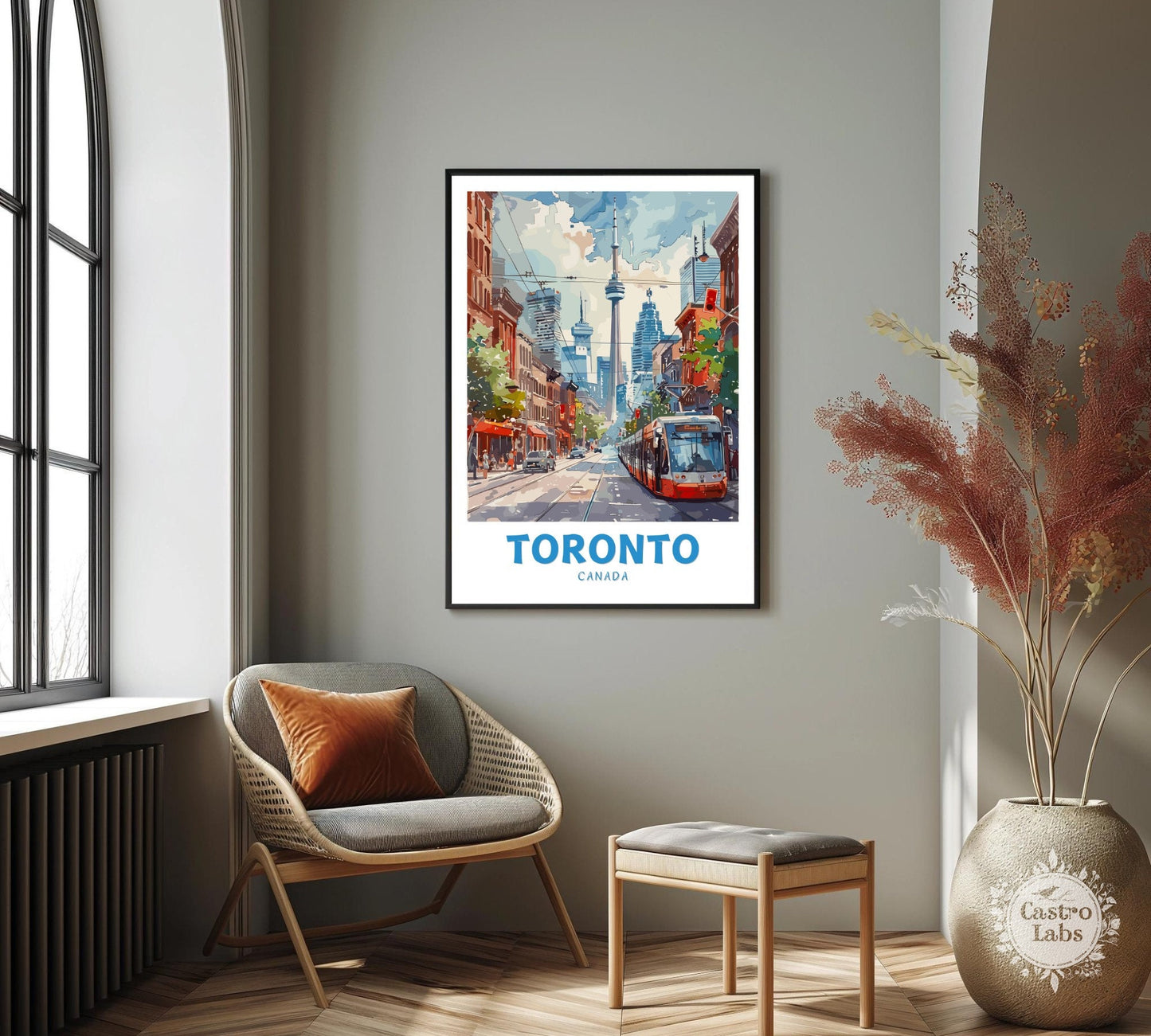 Insufflez l'énergie vibrante de Toronto à votre espace avec notre affiche de voyage du centre-ville de Toronto – Canada . Mettant en vedette des paysages urbains emblématiques, la Tour CN et des rues animées, cette affiche capture le cœur de la plus grande ville du Canada.