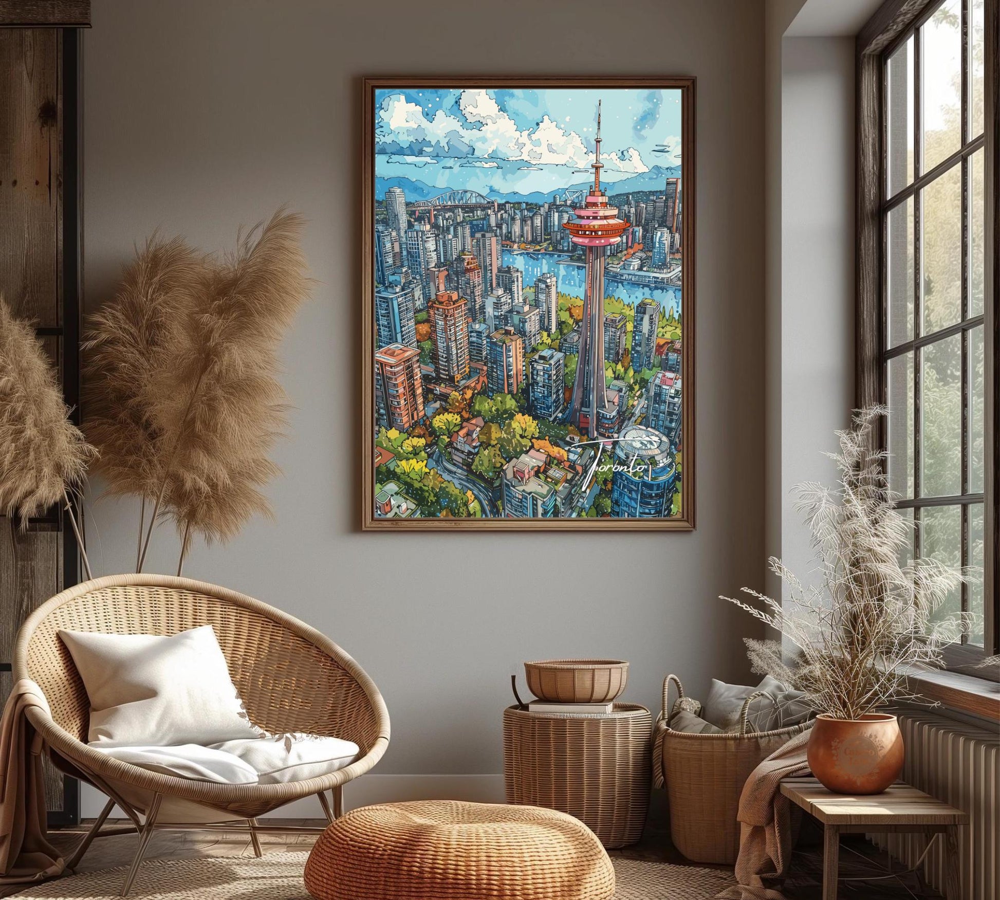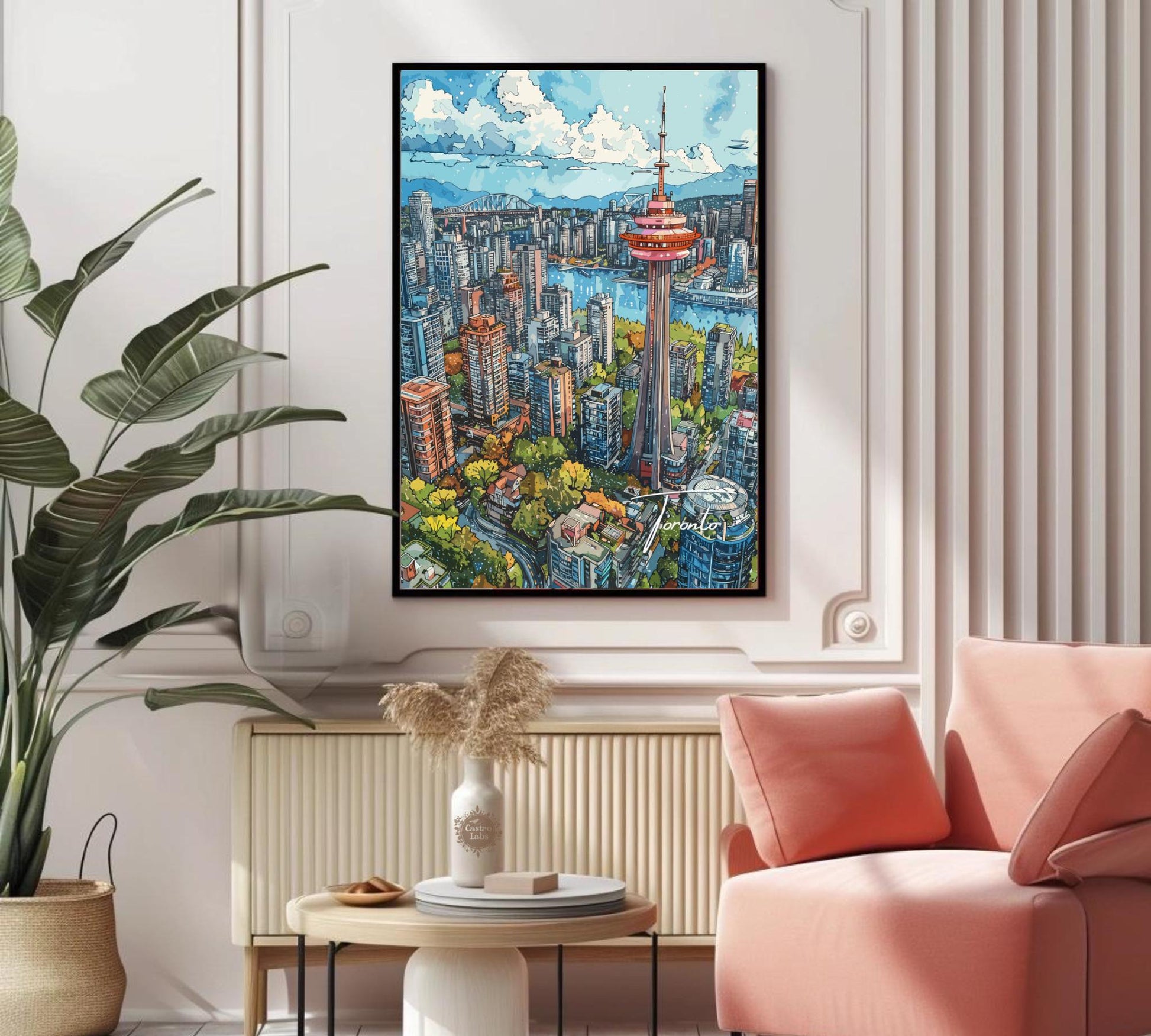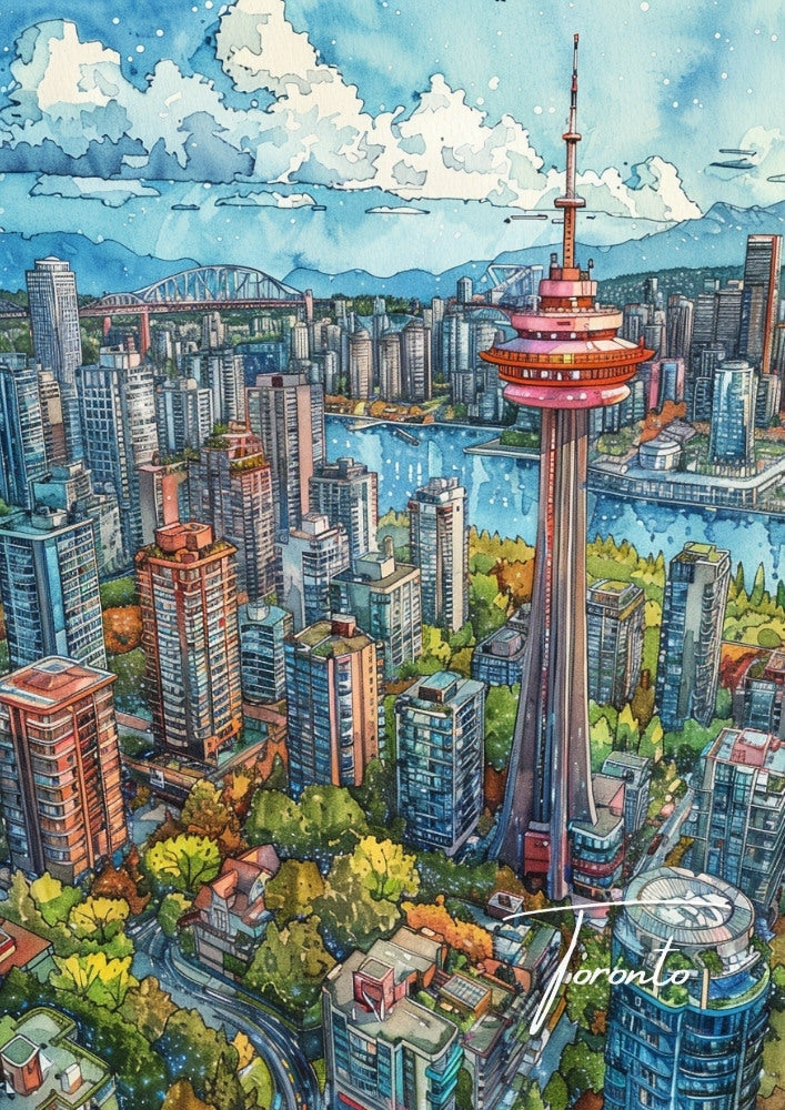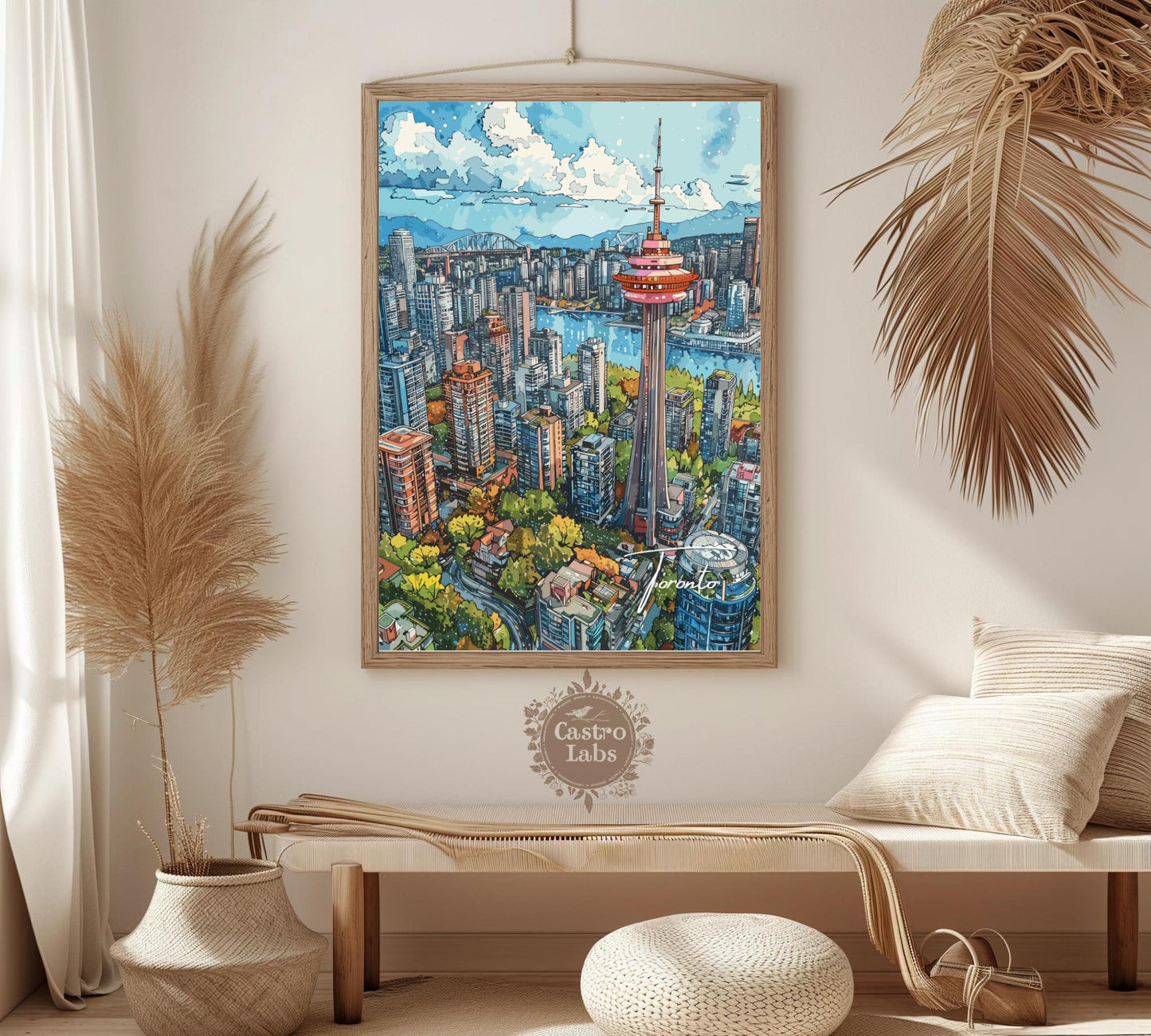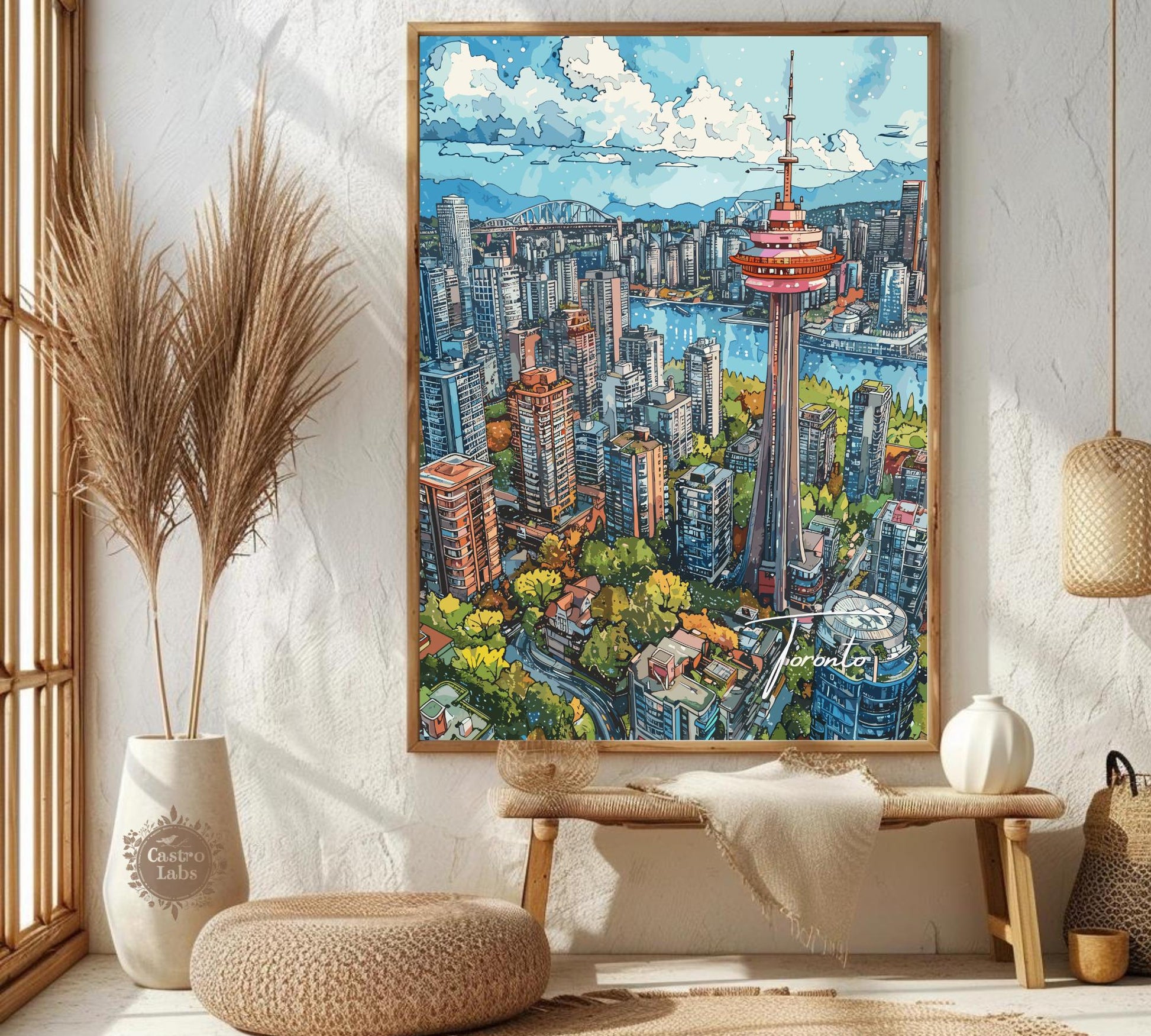 Célébrez le charme de Toronto avec notre affiche de voyage aquarelle de Toronto – Canada . Cette magnifique aquarelle met en valeur l'horizon emblématique, notamment la Tour CN, apportant une touche vibrante de la plus grande ville du Canada à vos murs.