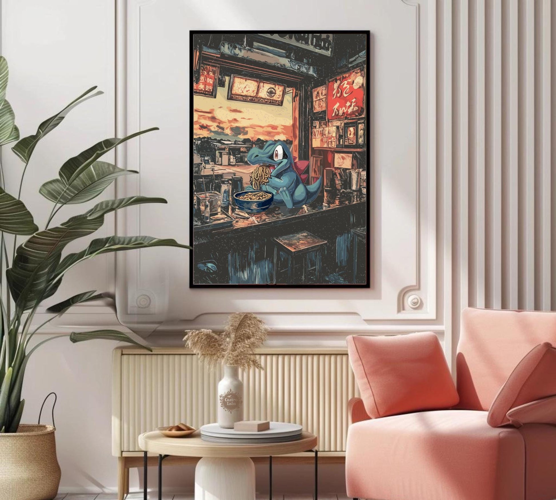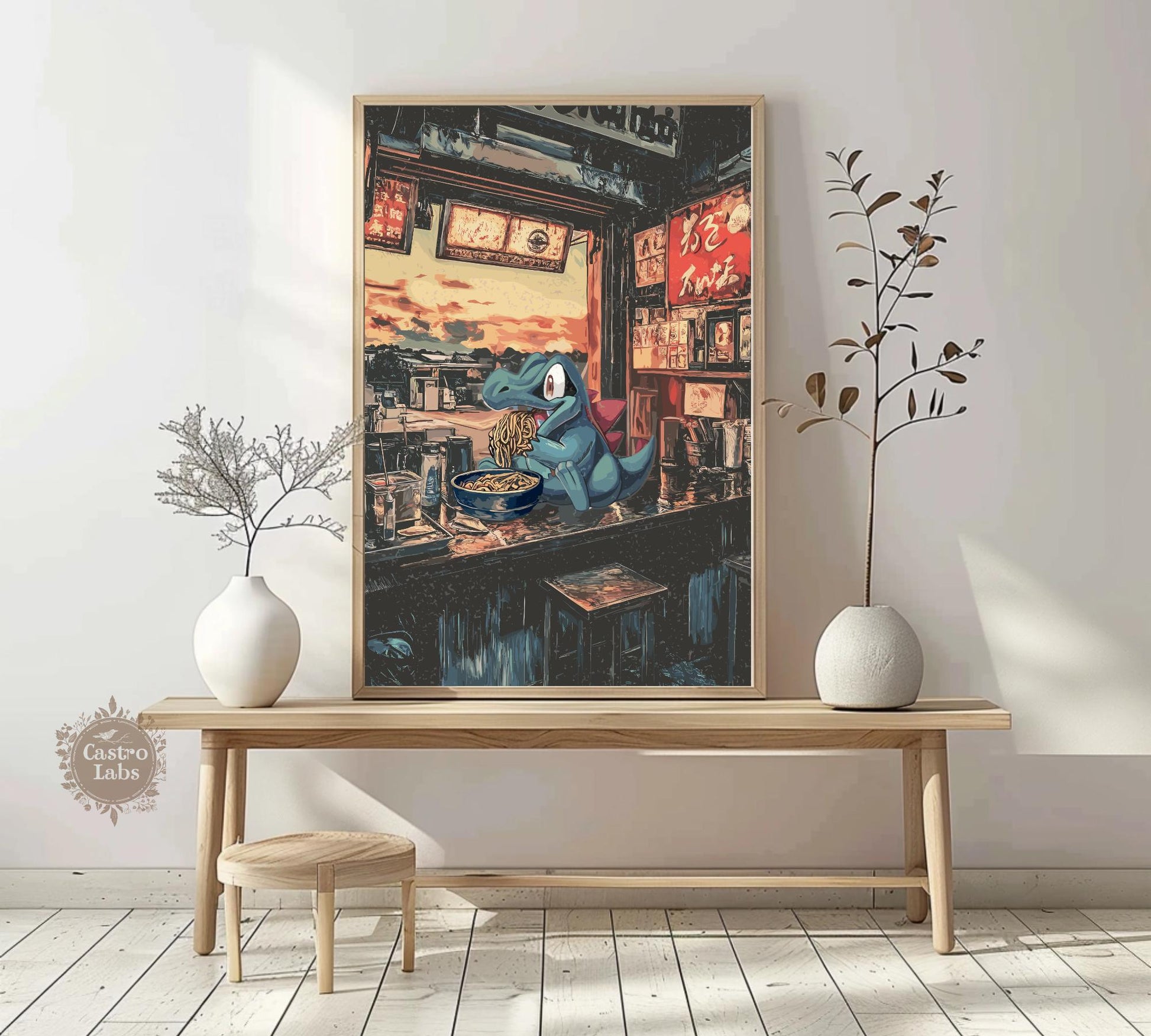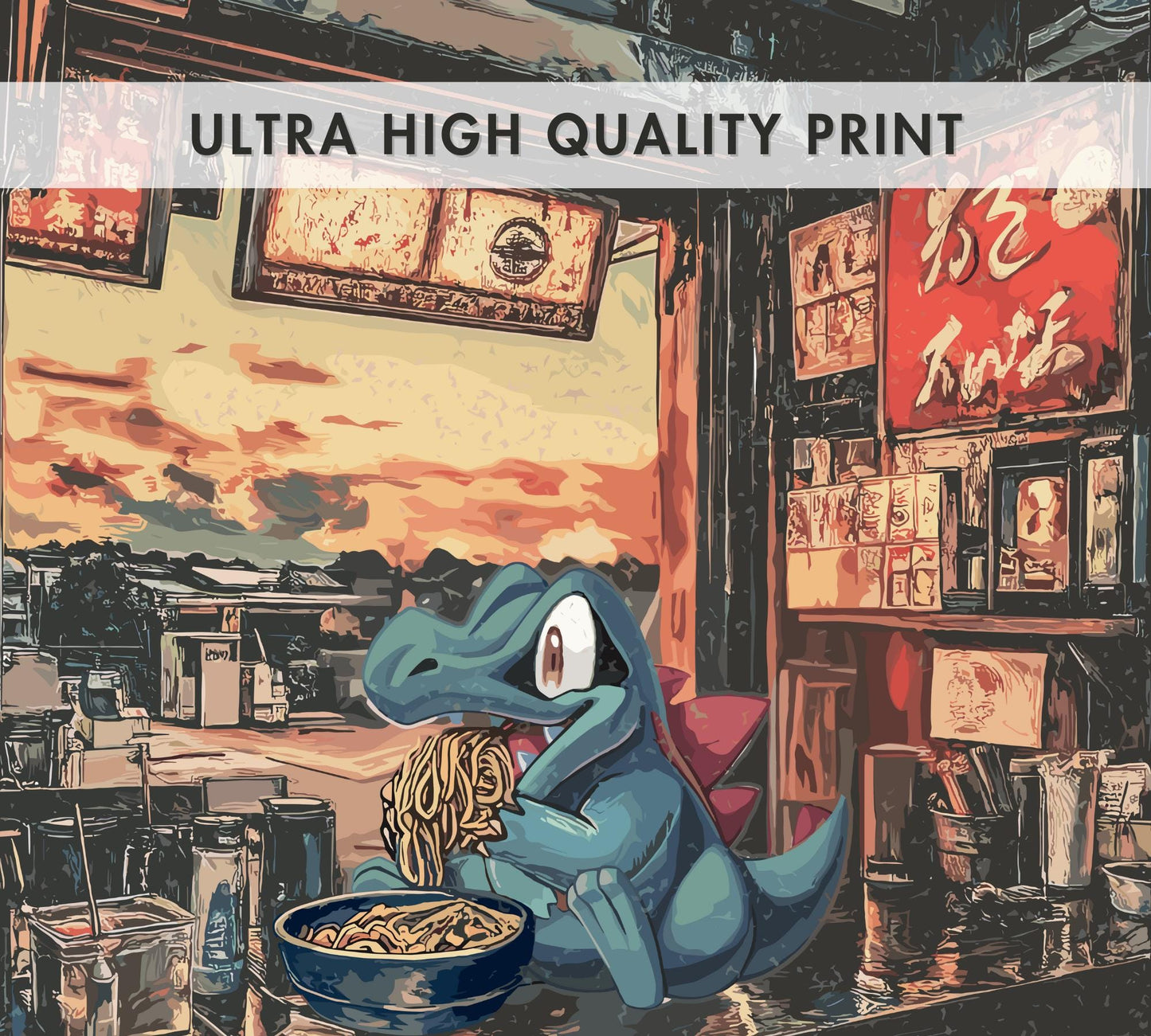 Affiche Totodile Ramen - Art mural Pokémon japonais | Décor d'anime et de nouilles