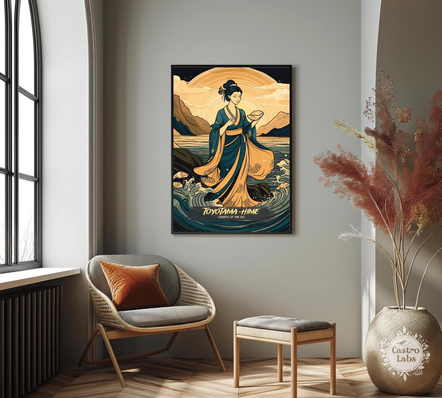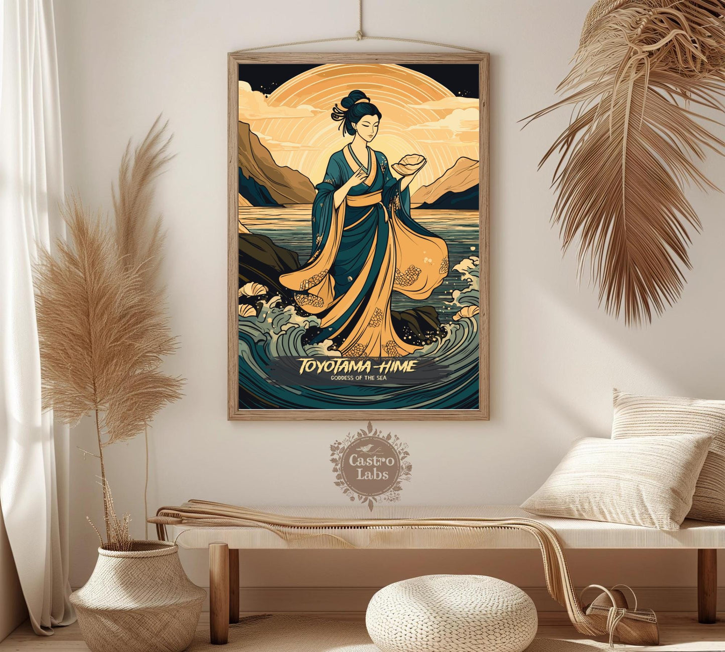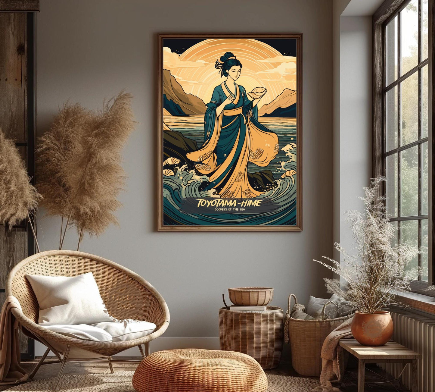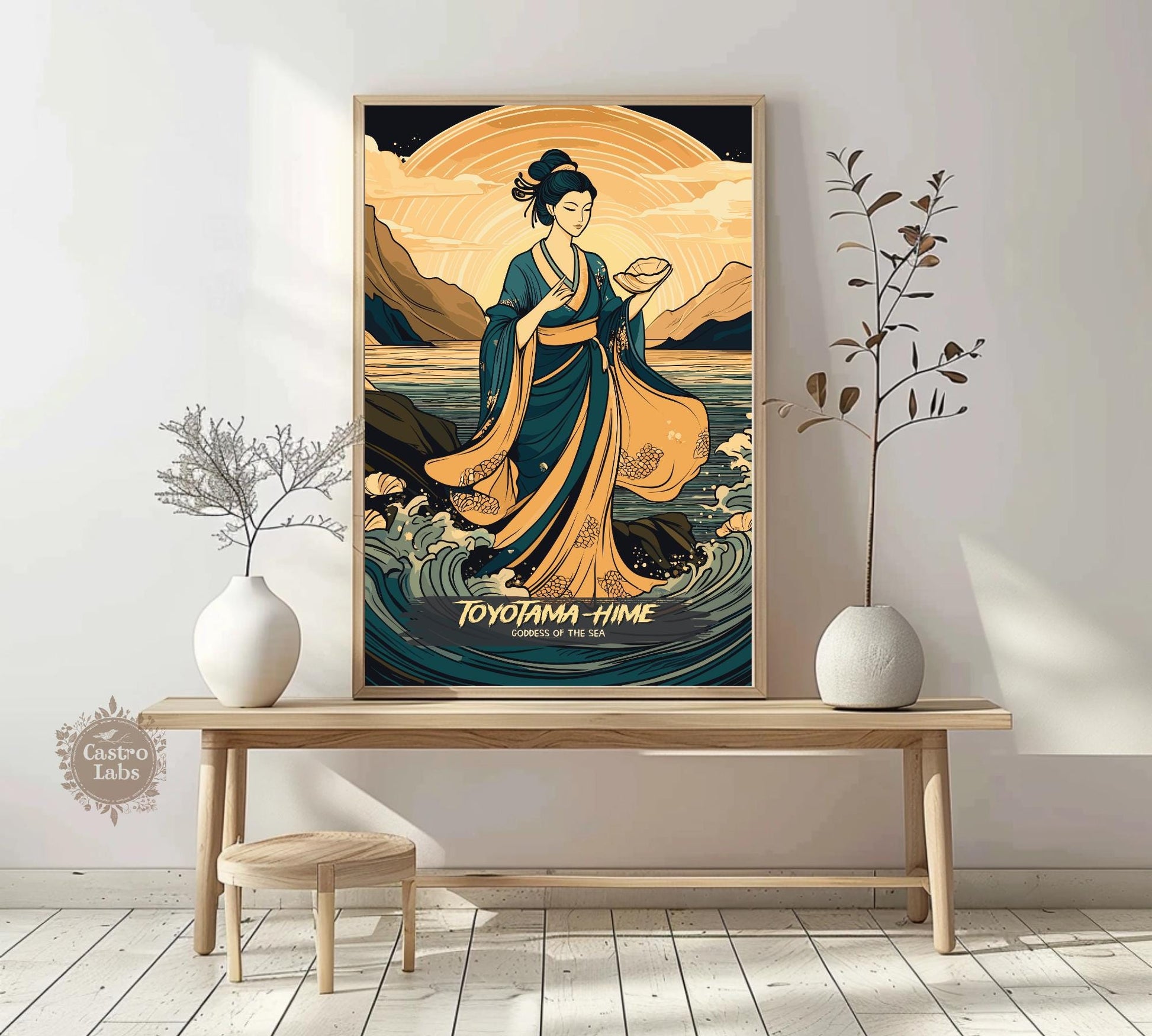Transformez votre intérieur grâce à l'énergie fluide de Toyotama-Hime grâce à cette œuvre envoûtante. Idéale pour les salons, les maisons de plage ou les espaces d'inspiration mythologique, elle s'harmonise parfaitement avec d'autres œuvres d'art japonaises. Plus qu'un simple objet de décoration, cette œuvre mythologique japonaise est un hommage à la beauté et à la puissance légendaires de Toyotama-Hime.